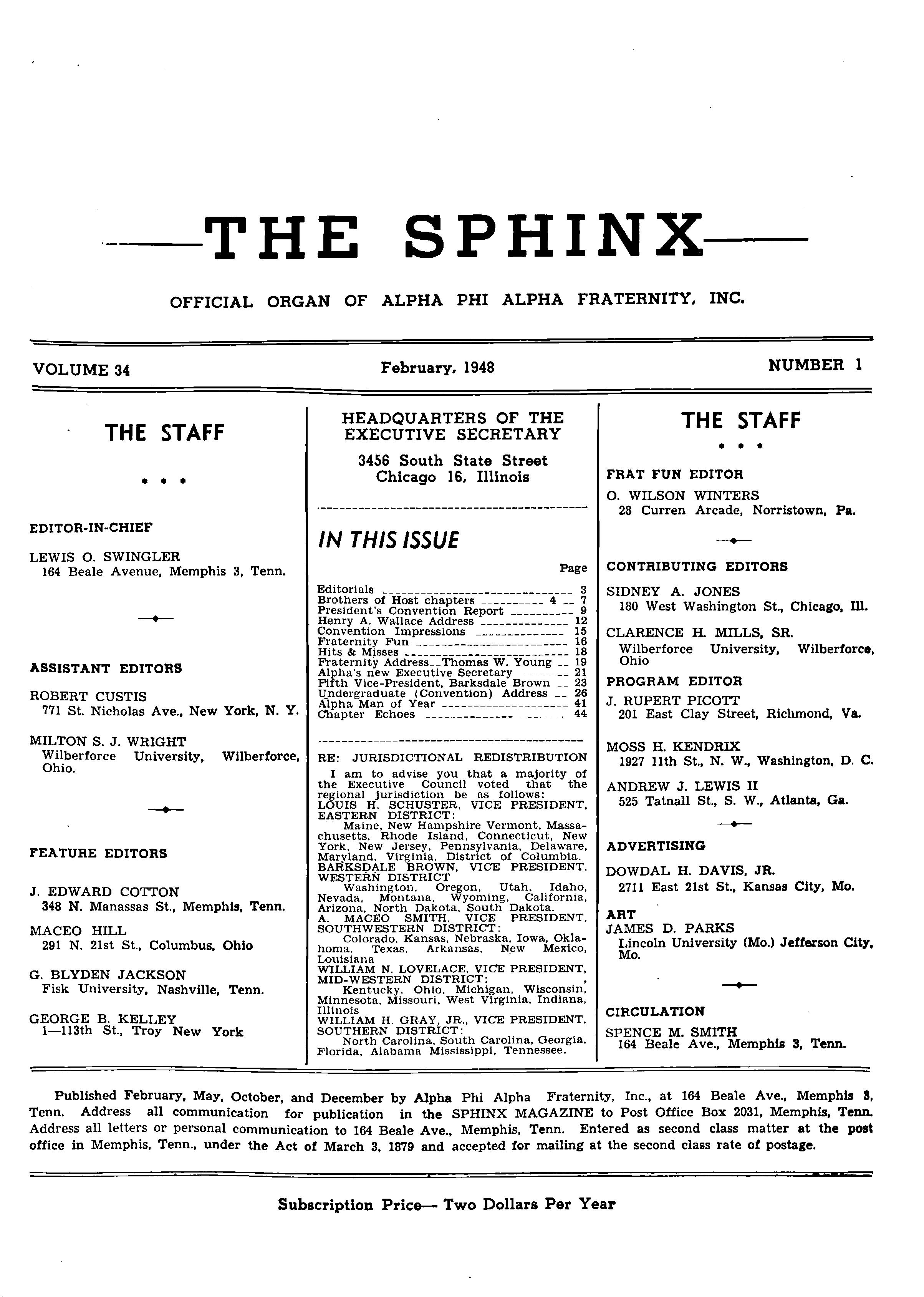 The SPHINX | Fall February 1948 | Volume 34 | Number 1 194803401