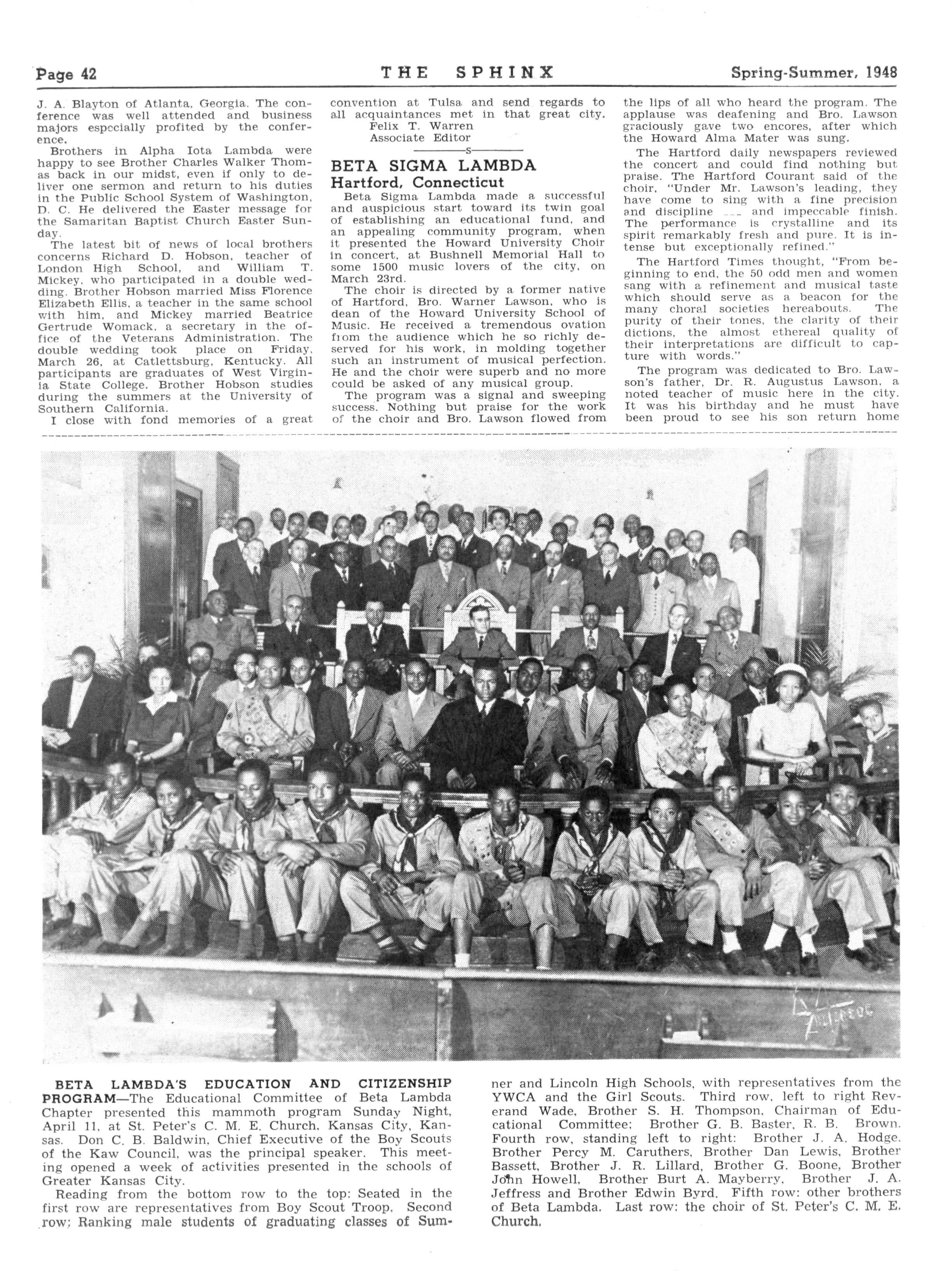 kn 150 BETA ZETA LAMBDA—Jefferson City Missouri; President, G Robert Cotton, Lincoln University, Jefferson City, Missouri; Secretary, H H Hartshorn, Lincoln University, Jefferson City, Missouri