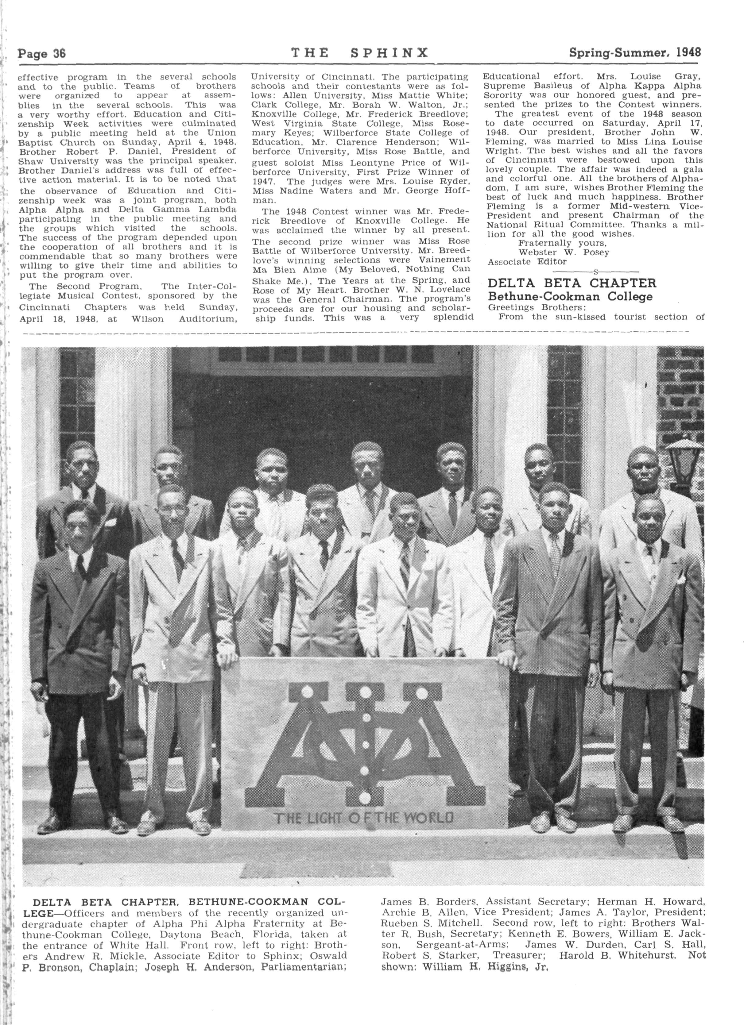 kn 90 DELTA BETA-Bethune-Cookman College, Daytona Beach Fla.; President James A Taylor; Secretary Walter R «••=£-' Bethune-Cookman College Daytona Belch Fla '