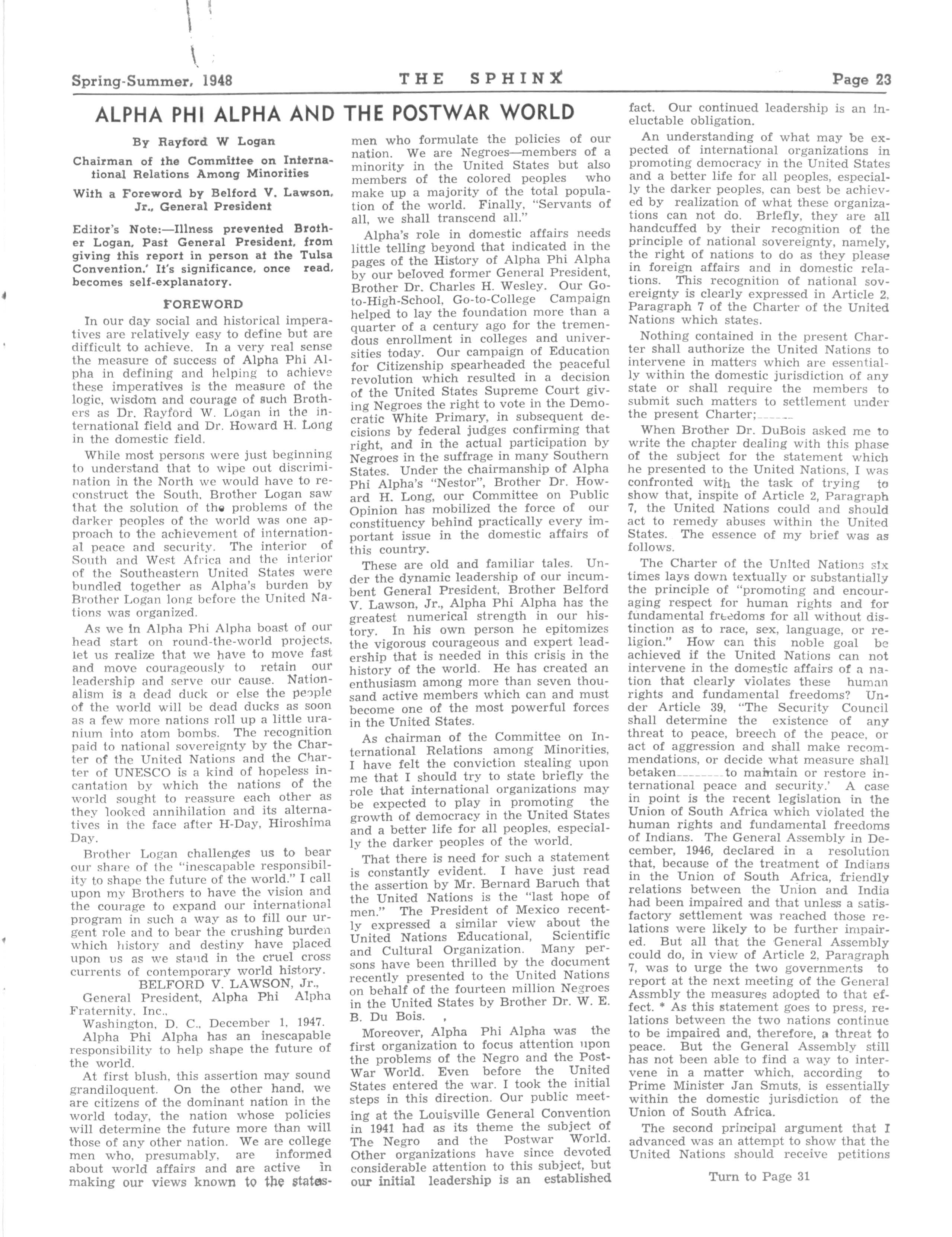 RAYFORD W LOGAN International Relations 1519 Jackson St., N E., Washington, D C