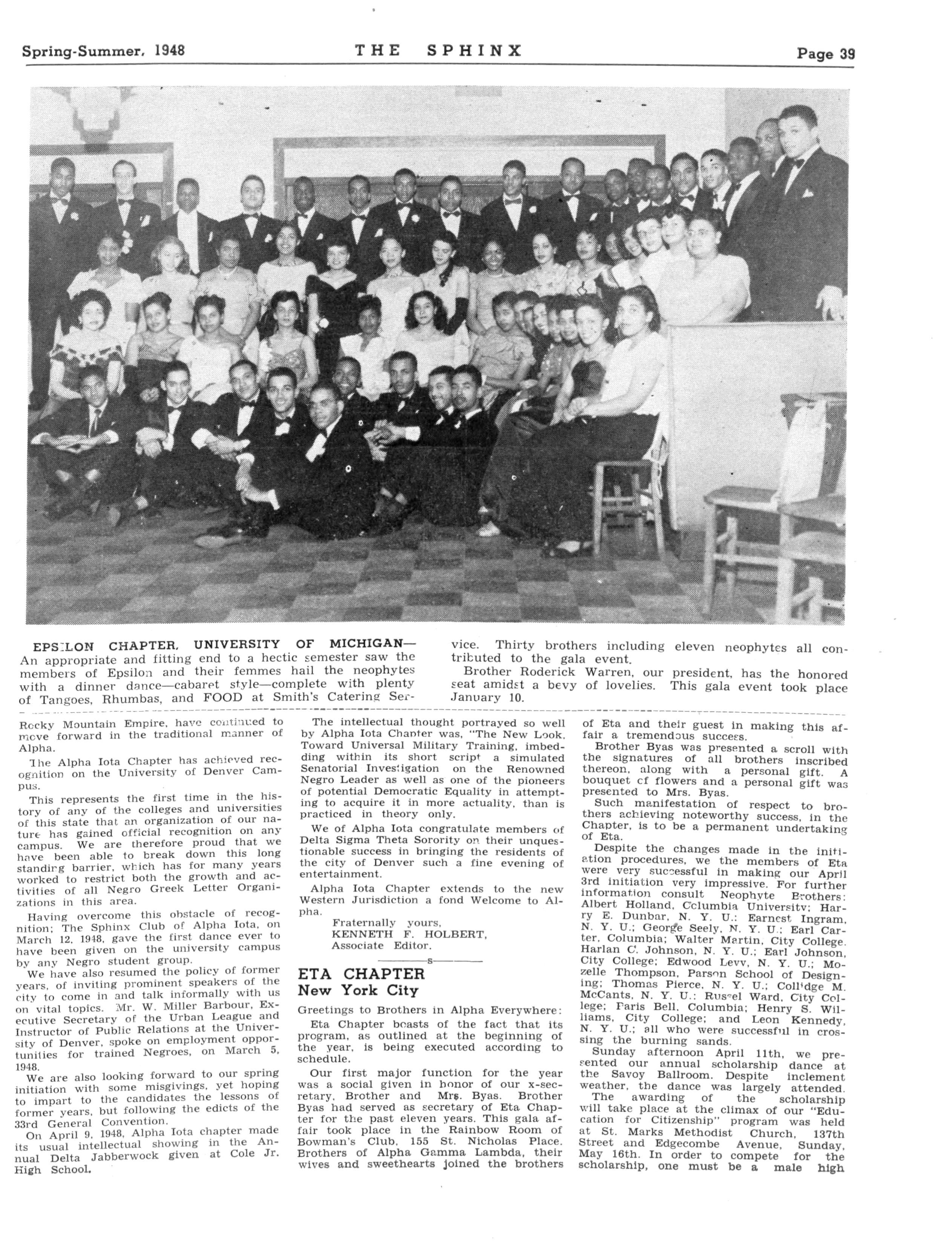 7 ETA—Columbia university, St Lawrence, Brooklyn City College, New York, N Y.; President Juan A Sandifer, 225 W 110th, New York, N Y.; Secretary, Albert Hampton, 1731 Van Buren St., Bronx, New York