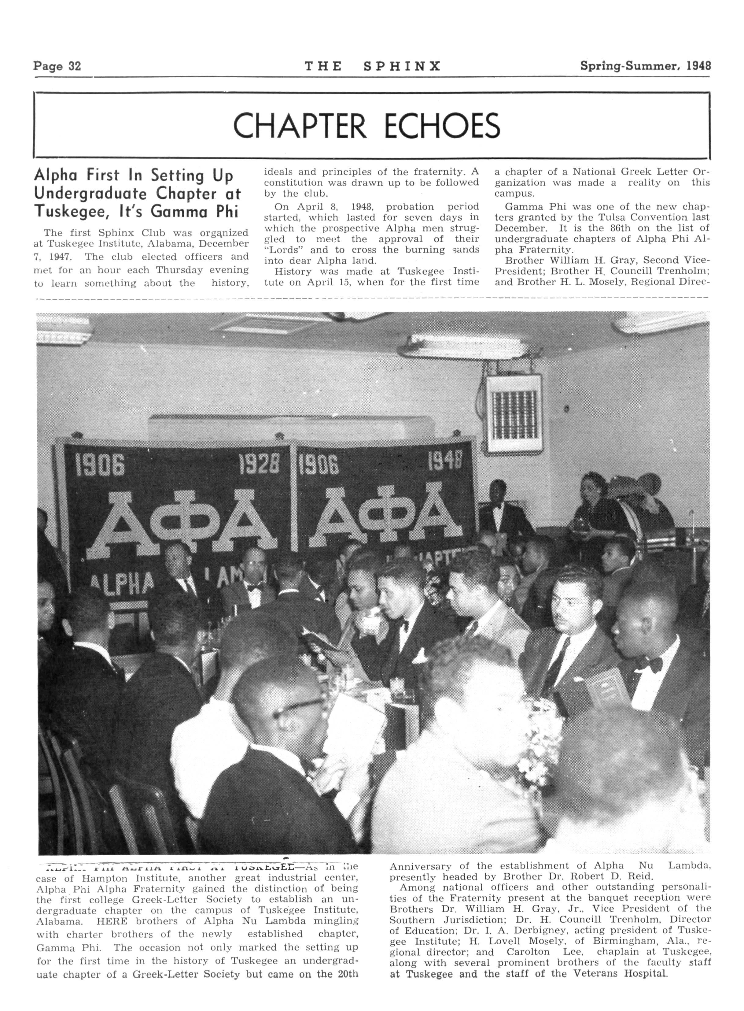 GAMMA PHI—Tuskegee Alabama; President, Robert L Owens, III, Barracks 3, Room 2, Tuskegee Institute, Alabama? fnZVuV^ A^T^a HBearde"' 22 CaSSCdy Hal1' Tk ^e