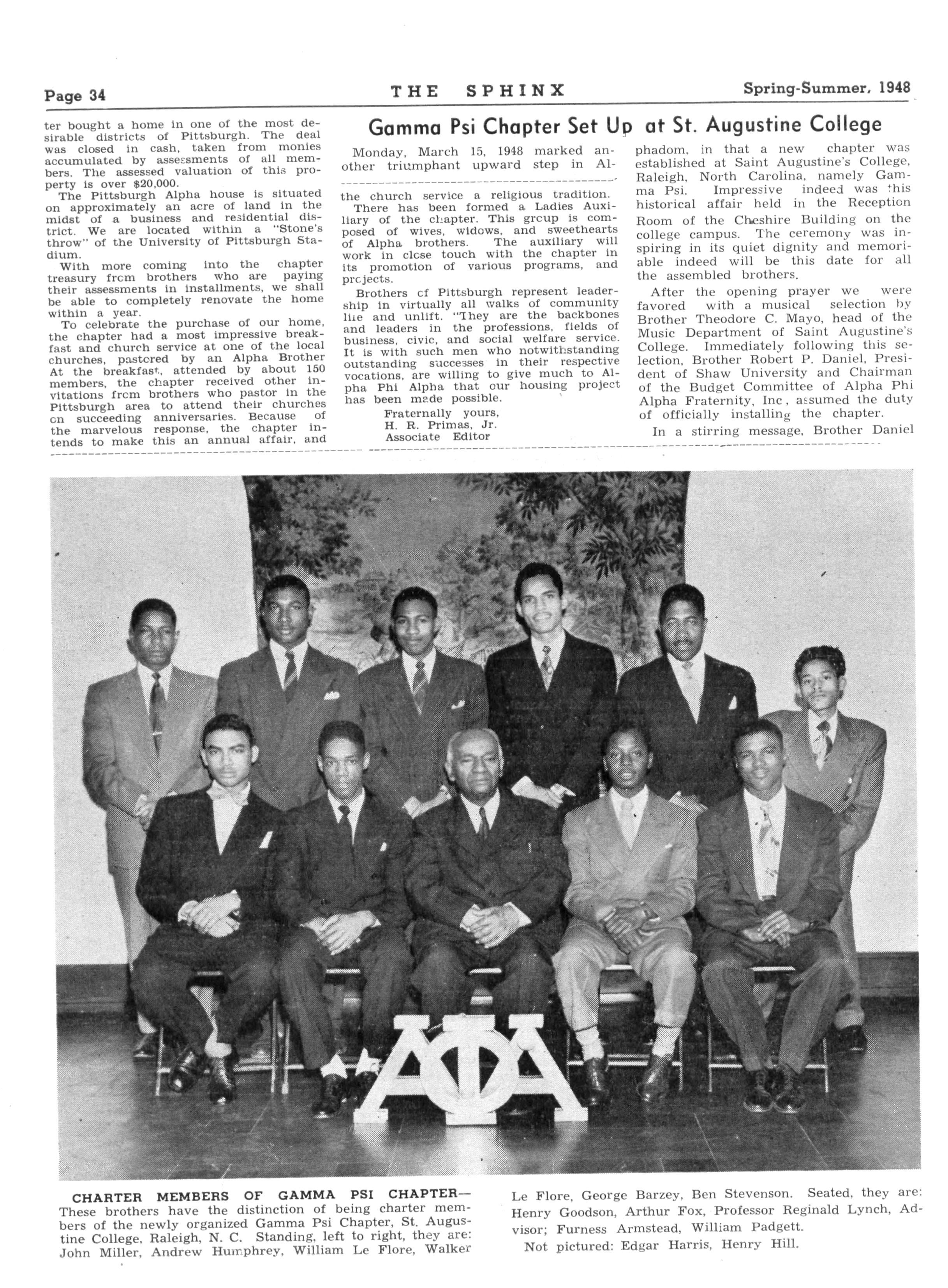 kn 88 GAMMA PSI—St Augustines College Raleigh N C • President Furness J Armstead: Secretary, Arthur j Fox qt Augustine's College, Raleigh, N C -