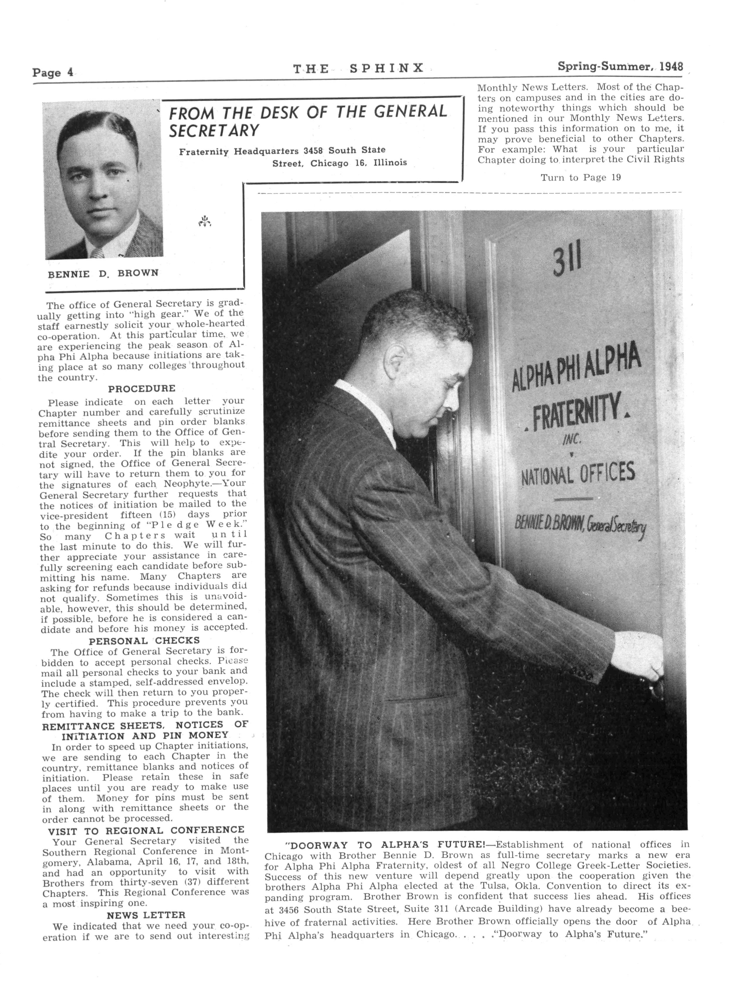 BENNIE D BROWN General Secretary 3456 South State Street, Suite 311, Chicago 16 Illinois