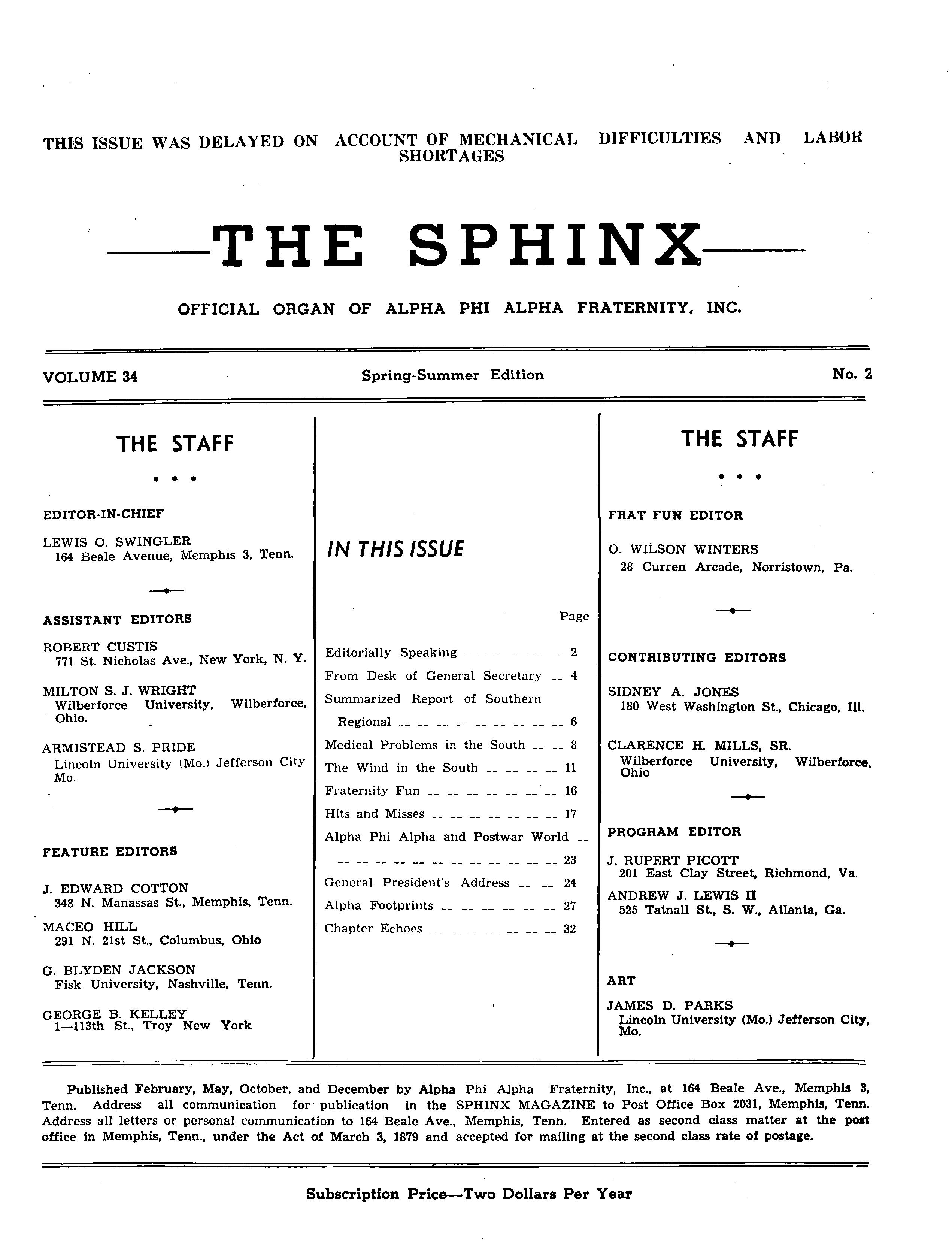The SPHINX | Spring/Summer 1948 | Volume 34 | Number 2 194803402