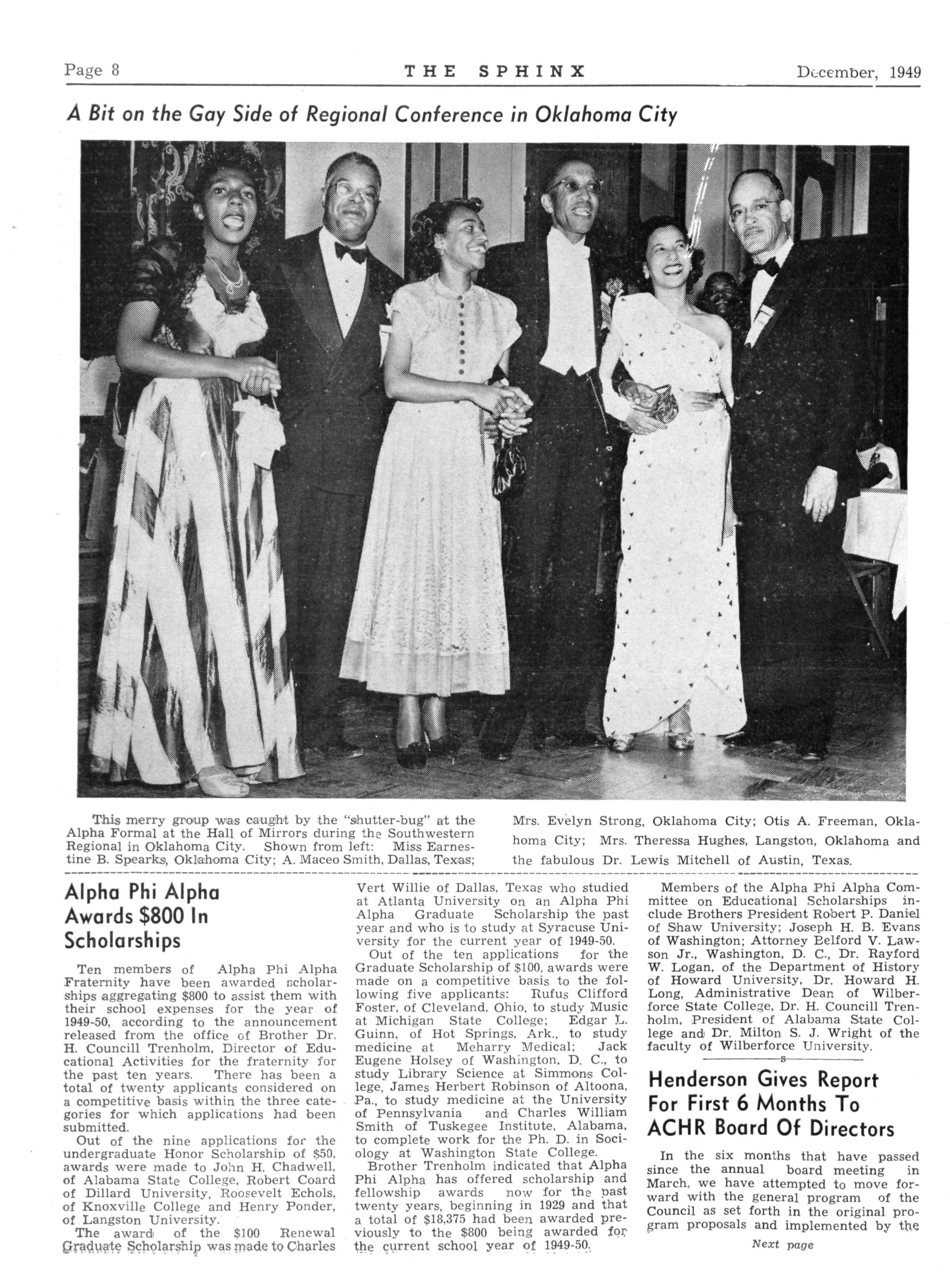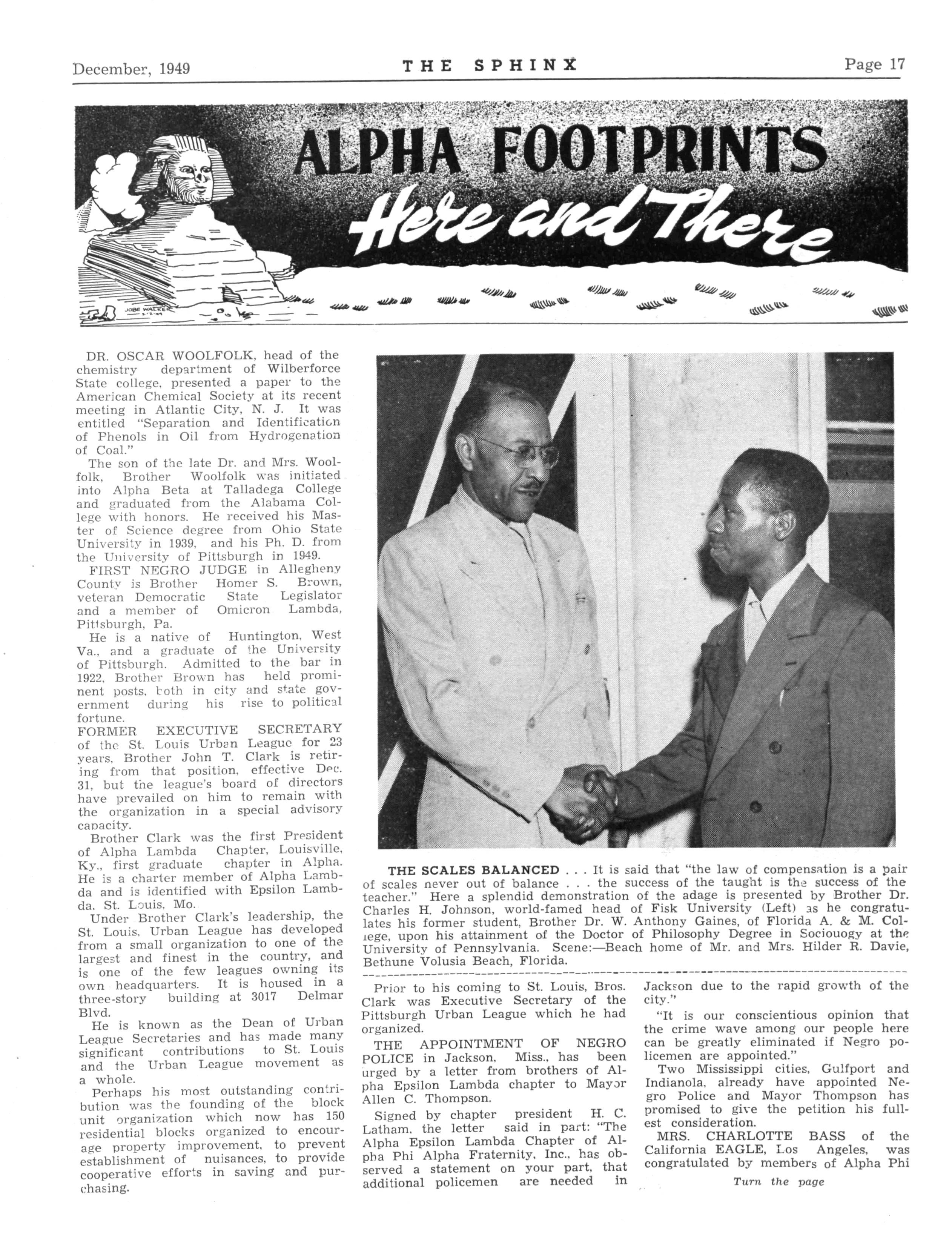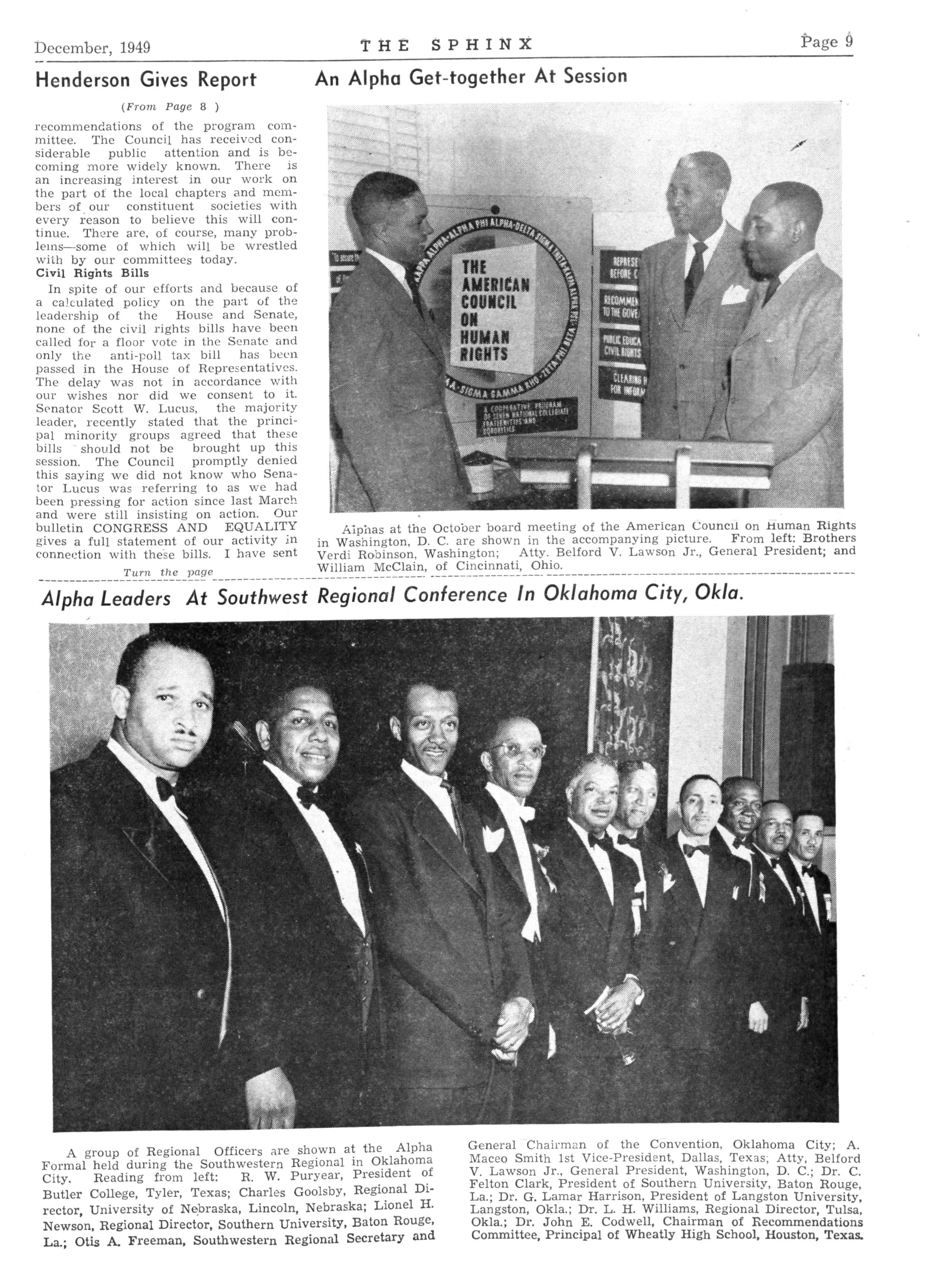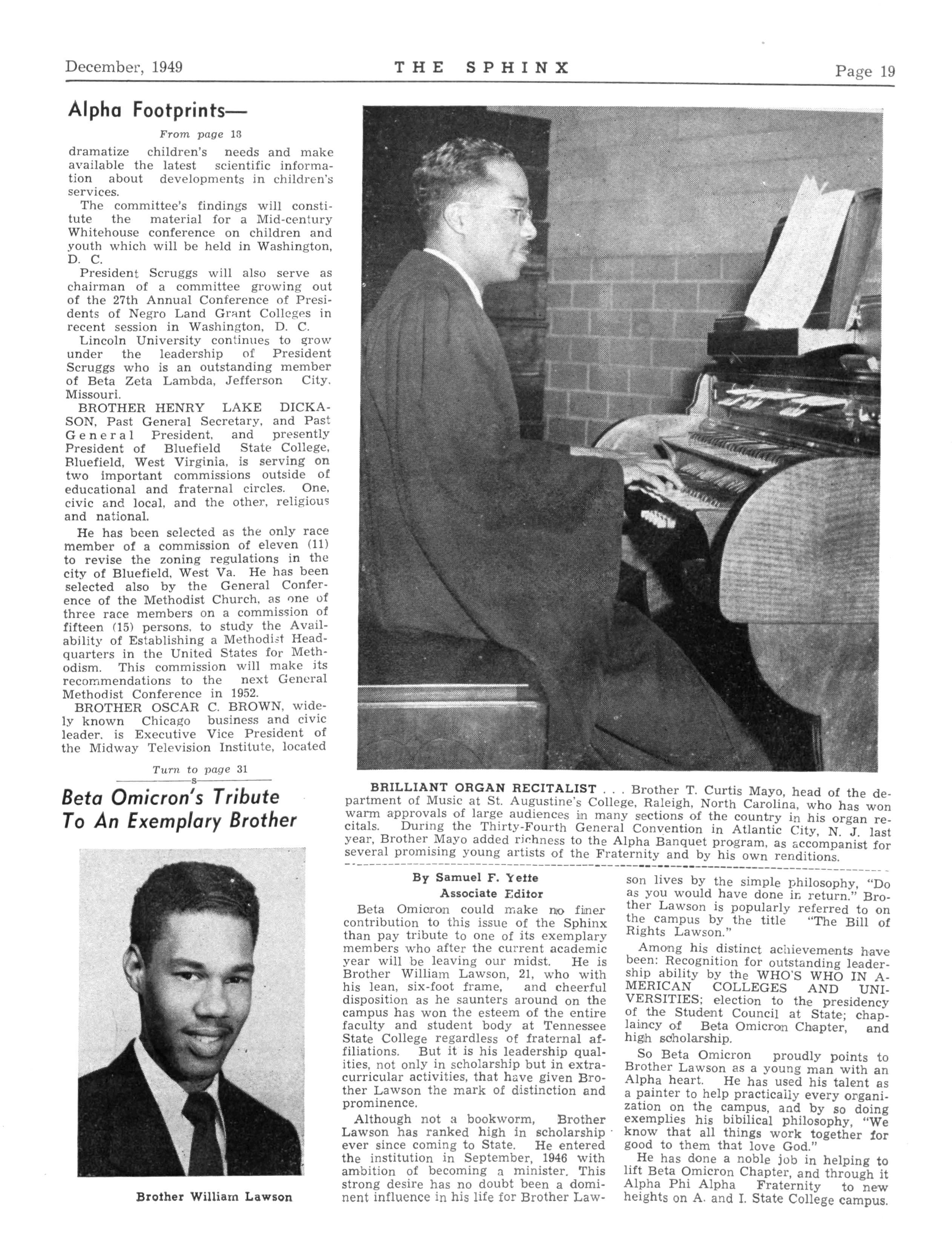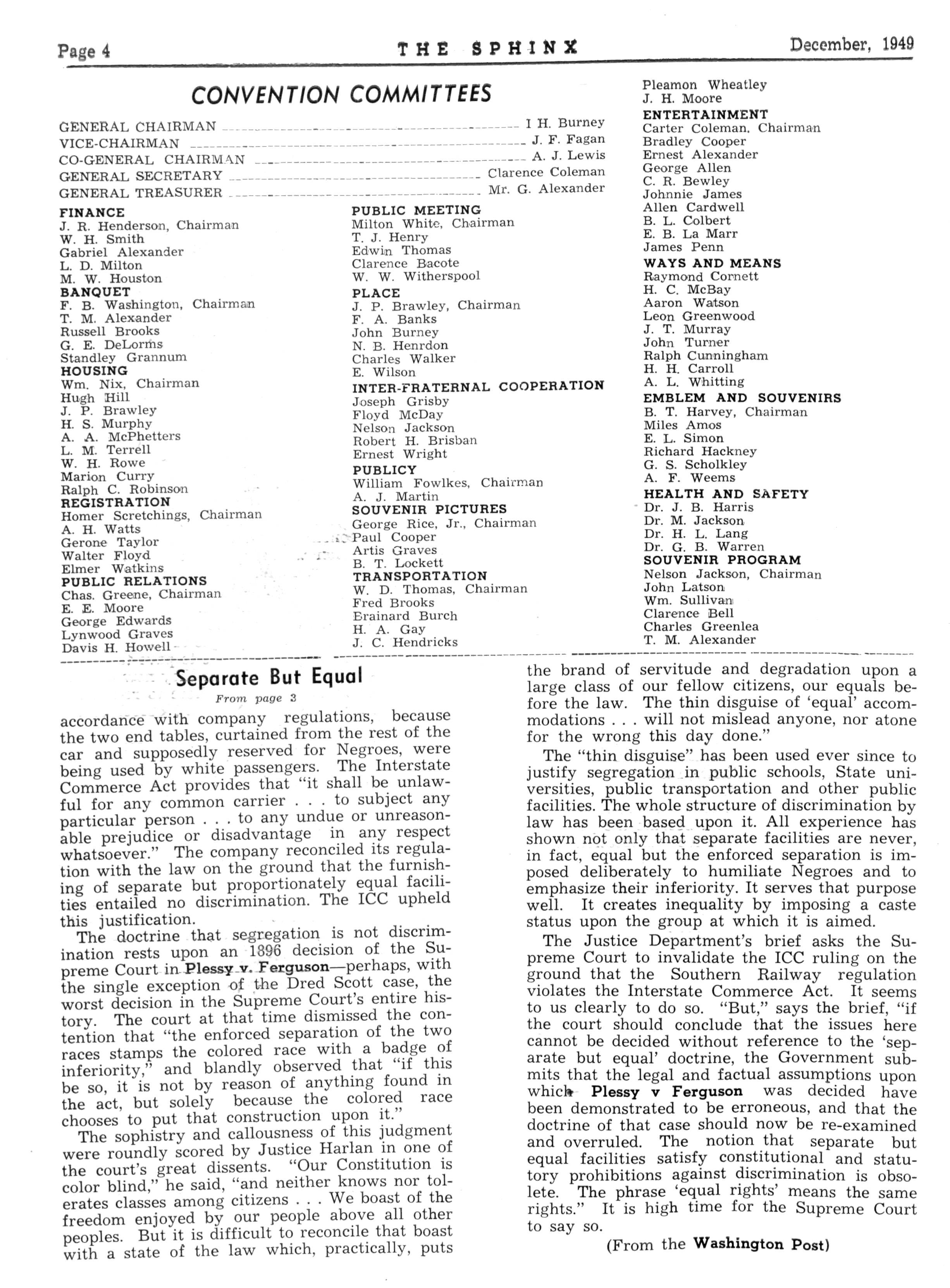 Published February, May, October, and December by Alpha Phi Alpha Fraternity, Inc., at 164 Beale Ave Memphis 3. Tenn. Address all communication for publication in the SPHINX MAGAZINE to Post Office Box 2031, Memphis Tenn. Address all letters or personal communication to 164 Beale Ave., Memphis, Tenn Entered as second class matter at the post office in Memphis, Tenn., under the Act of March 3, 1879 and accepted for mailing at the second class rate of postage.