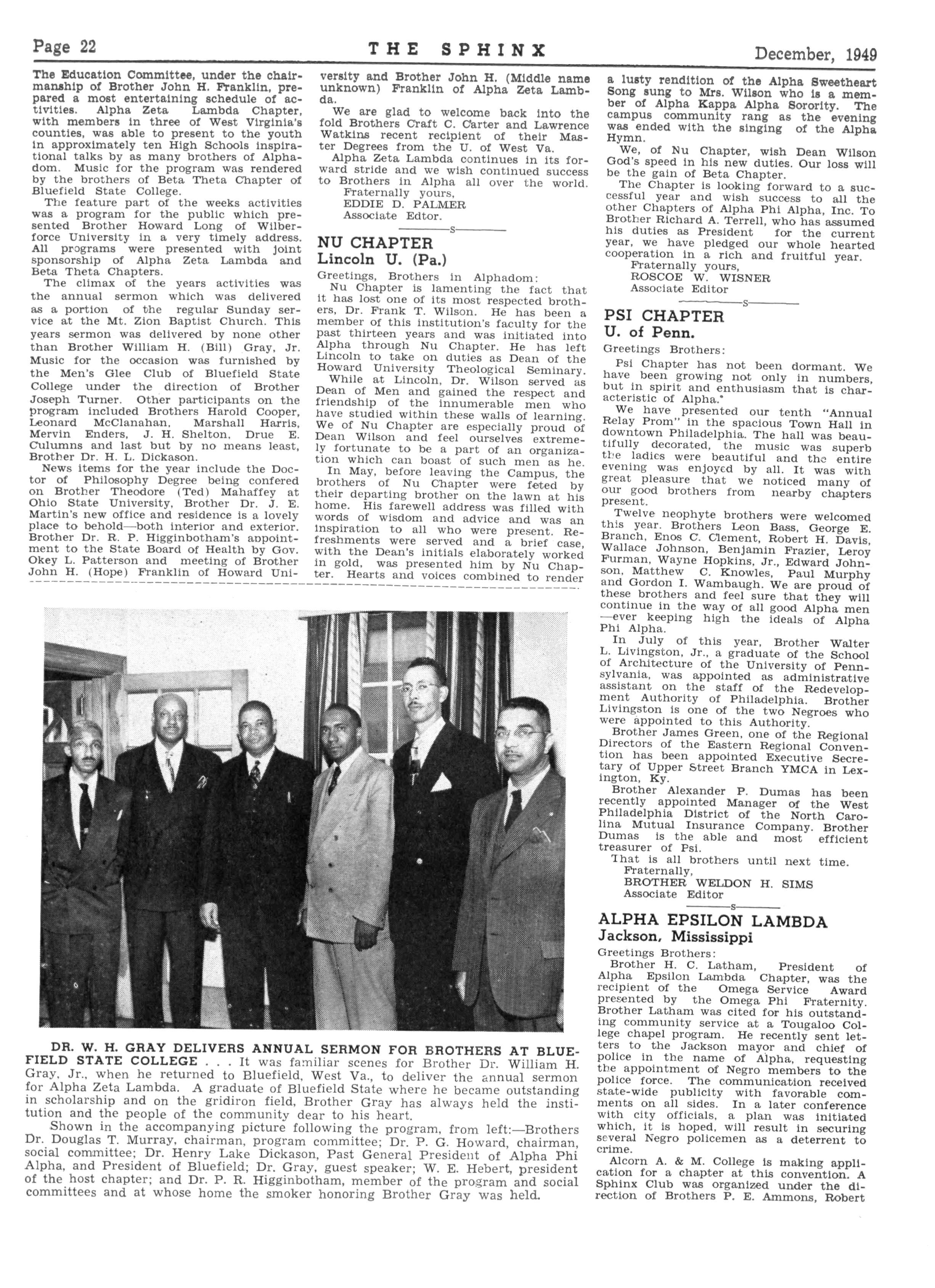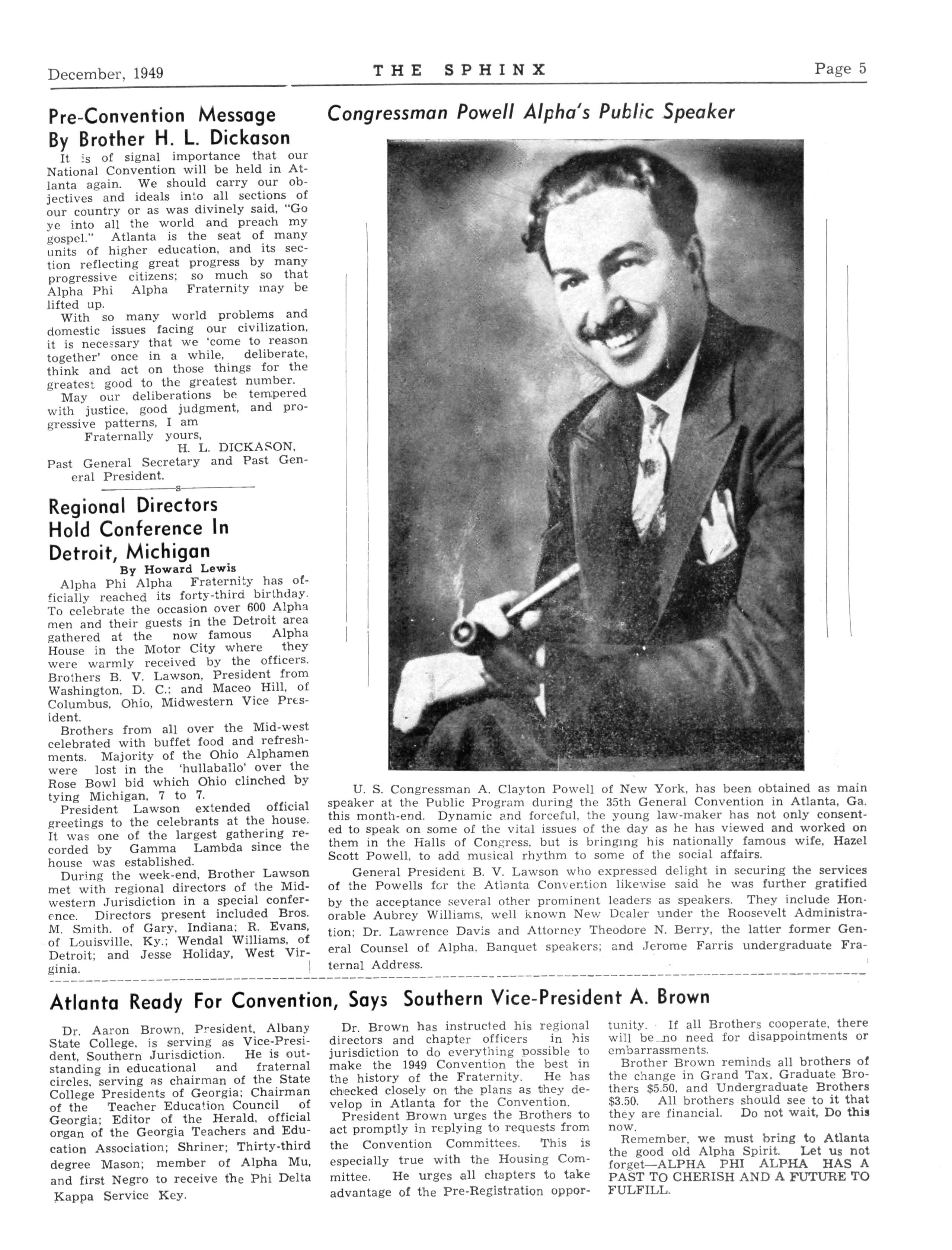 President Lawson revealed that Congressman A Clayton Powell, Jr., member of the fraternity, and his wife, Hazel Scott, had been invited to appear as special guests for the public meeting here Mrs Powell has said definitely that she will come and sing for the group, even if Congressman Powell is unable to fill the speaking engagement