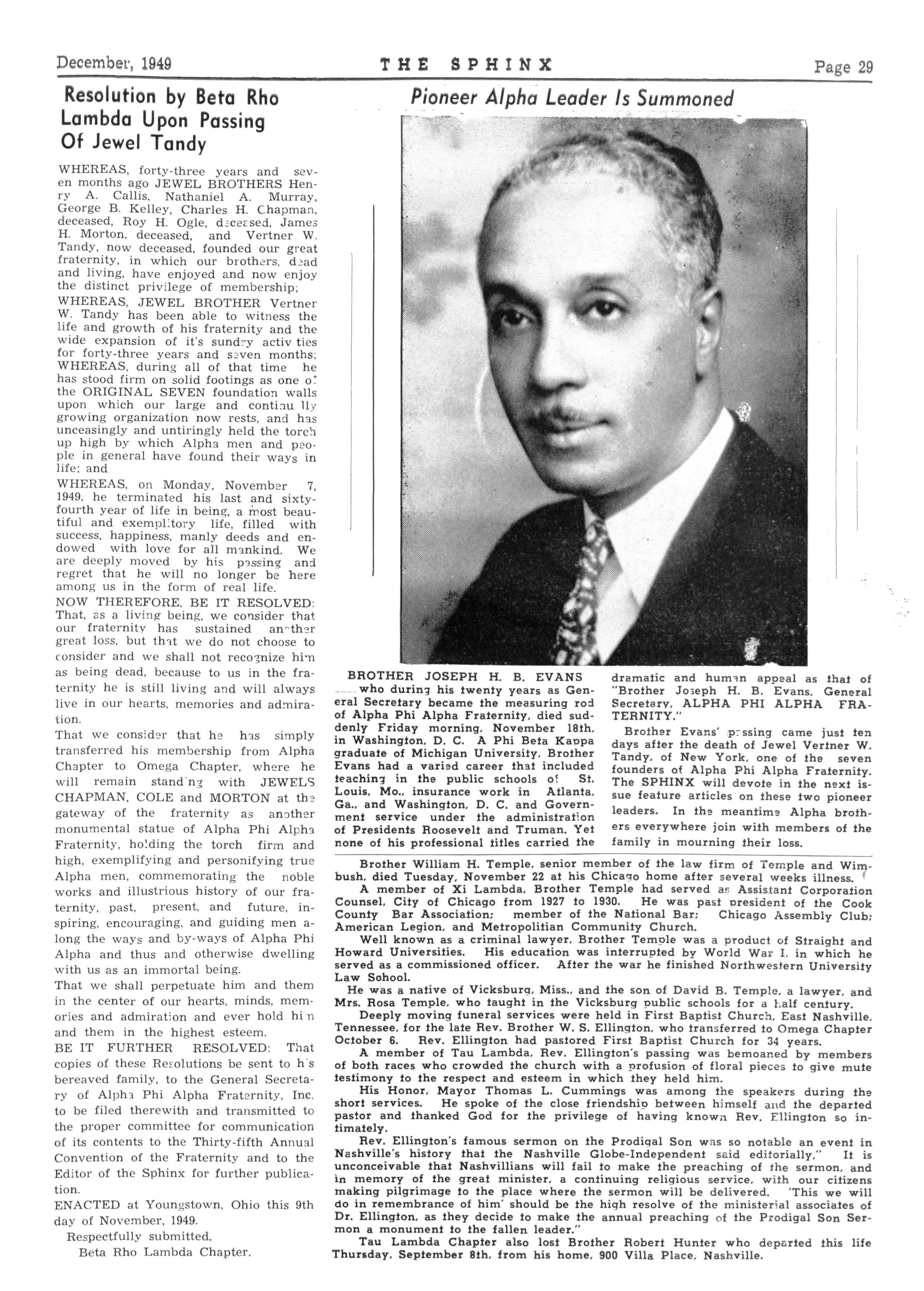 iastic social-repast period The entire assemblage stood at attention and observed a period of meditation and prayer in tribute to the passing of Jewel, Vertner W Tandy, an Alpha fraternity founder, and New York architect