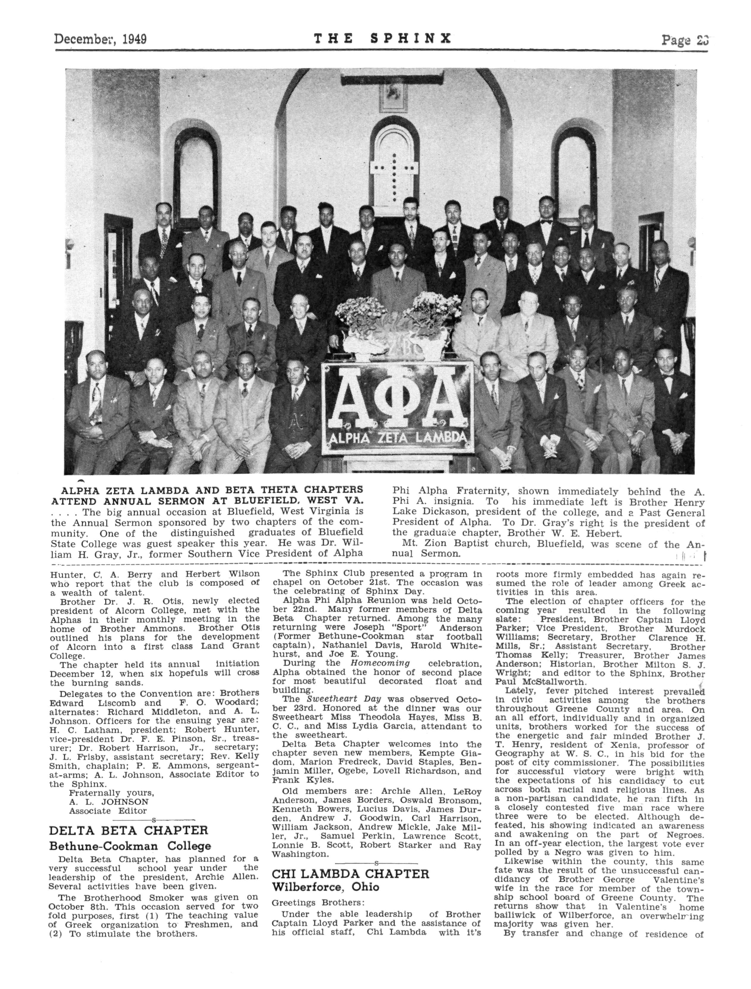 ALPHA PST LAMBDA—Columbia S C: President The Rev F G Johnson 2207 Lady Street Columbia S C; Secretary, Harry B Rutherford, 1330 Gregg St., Columbia S C