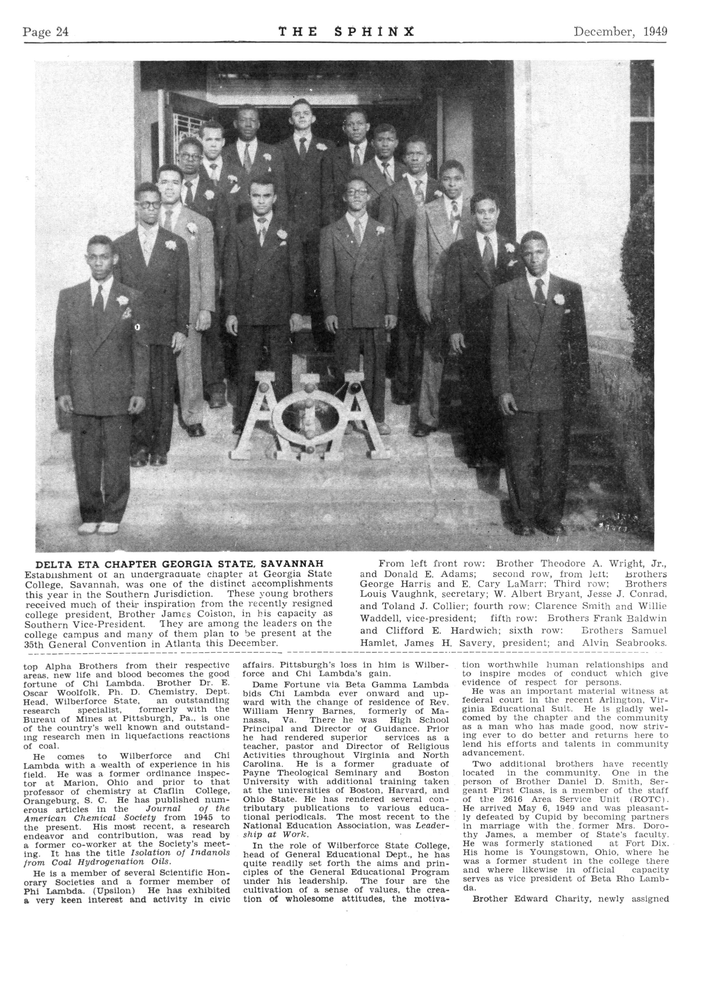 President A G Moron, of Hampton Institute, who formerly resided in Atlanta and held membership to Eta Lambda Chapter, was present and addressed the gathering