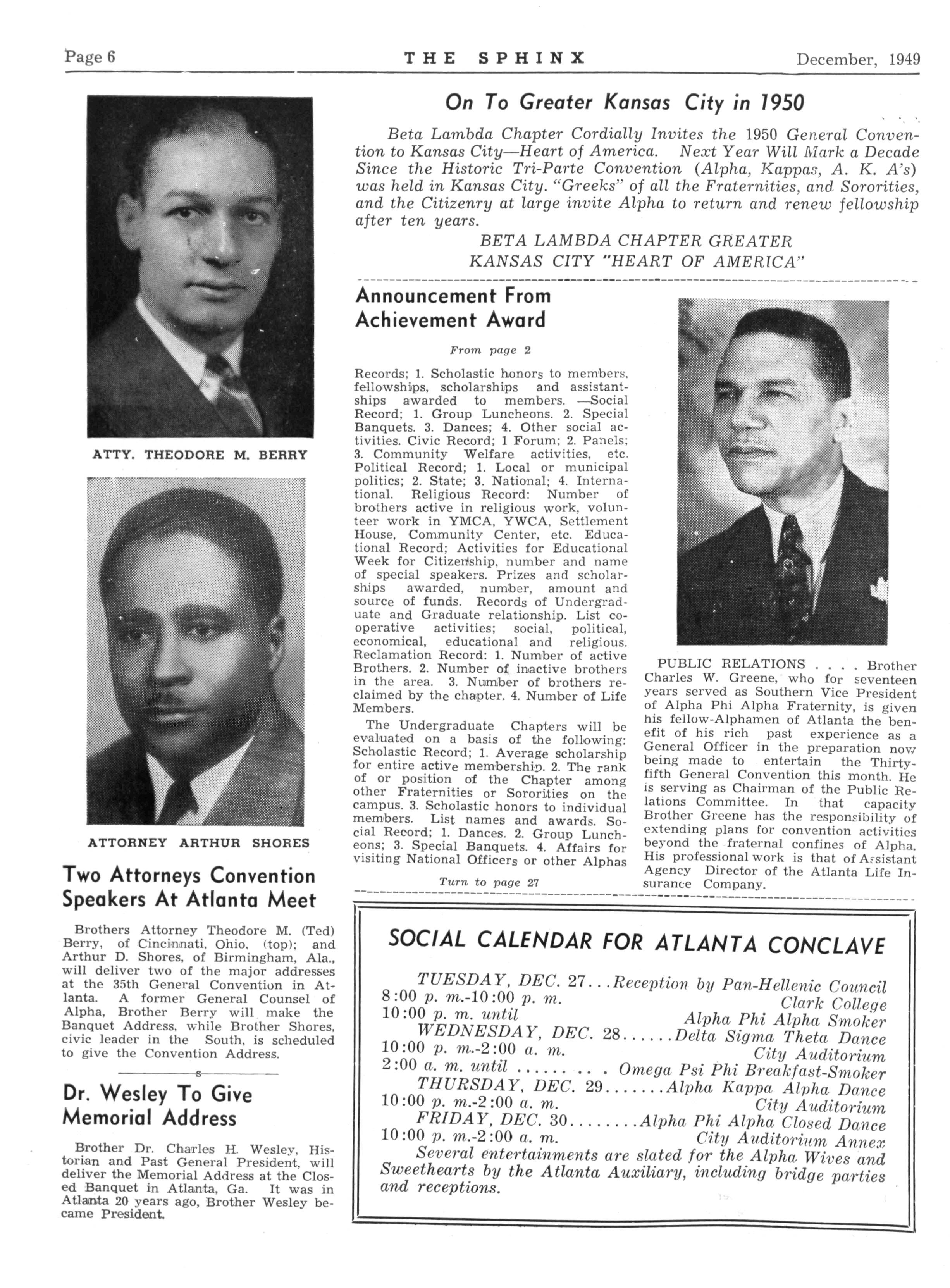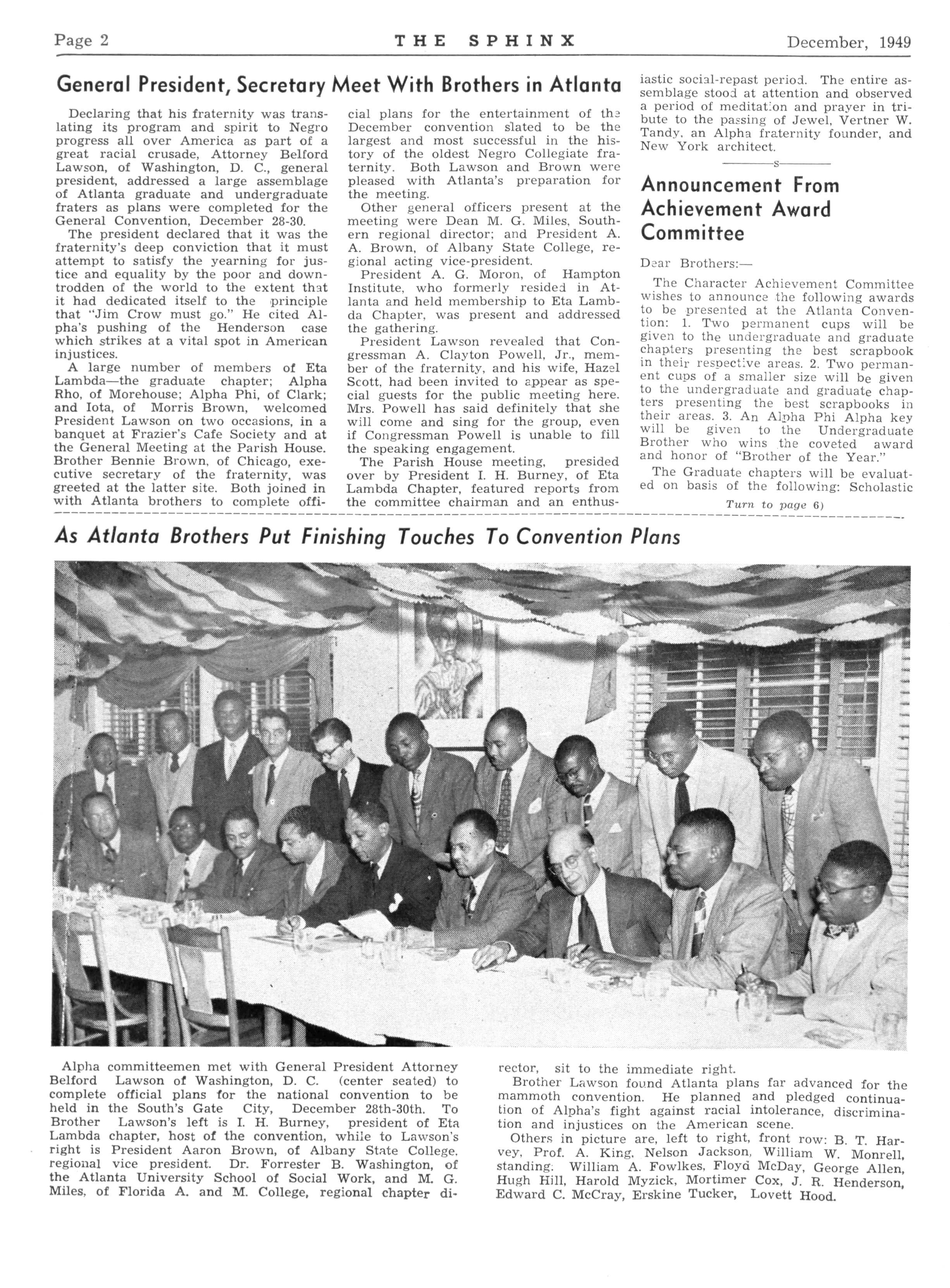 cial plans for the entertainment of tha December convention slated to be the largest and most successful in the history of the oldest Negro Collegiate fraternity Both Lawson and Brown were pleased with Atlanta's preparation for the meeting.
