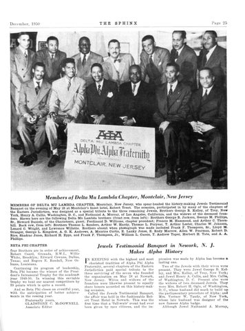 DELTA MU LAMBDA—kn 199—Montclair, N. Ferdinand D. Williams, 191 Bloomfleld Ave., Montclair, N. J.; Secretary, George A. Phillips, Sr„ 74 Elm St., Montclair, N. J.