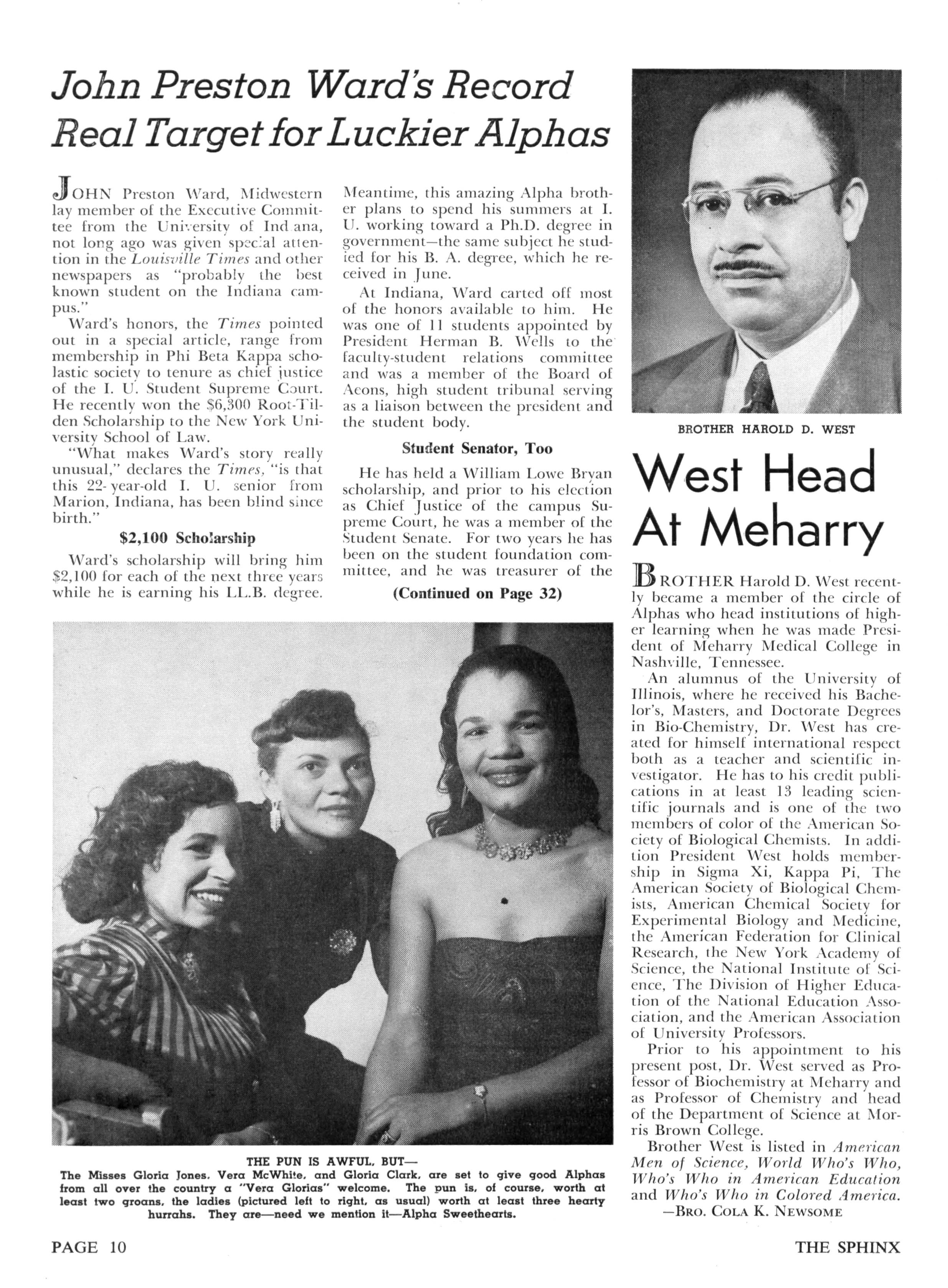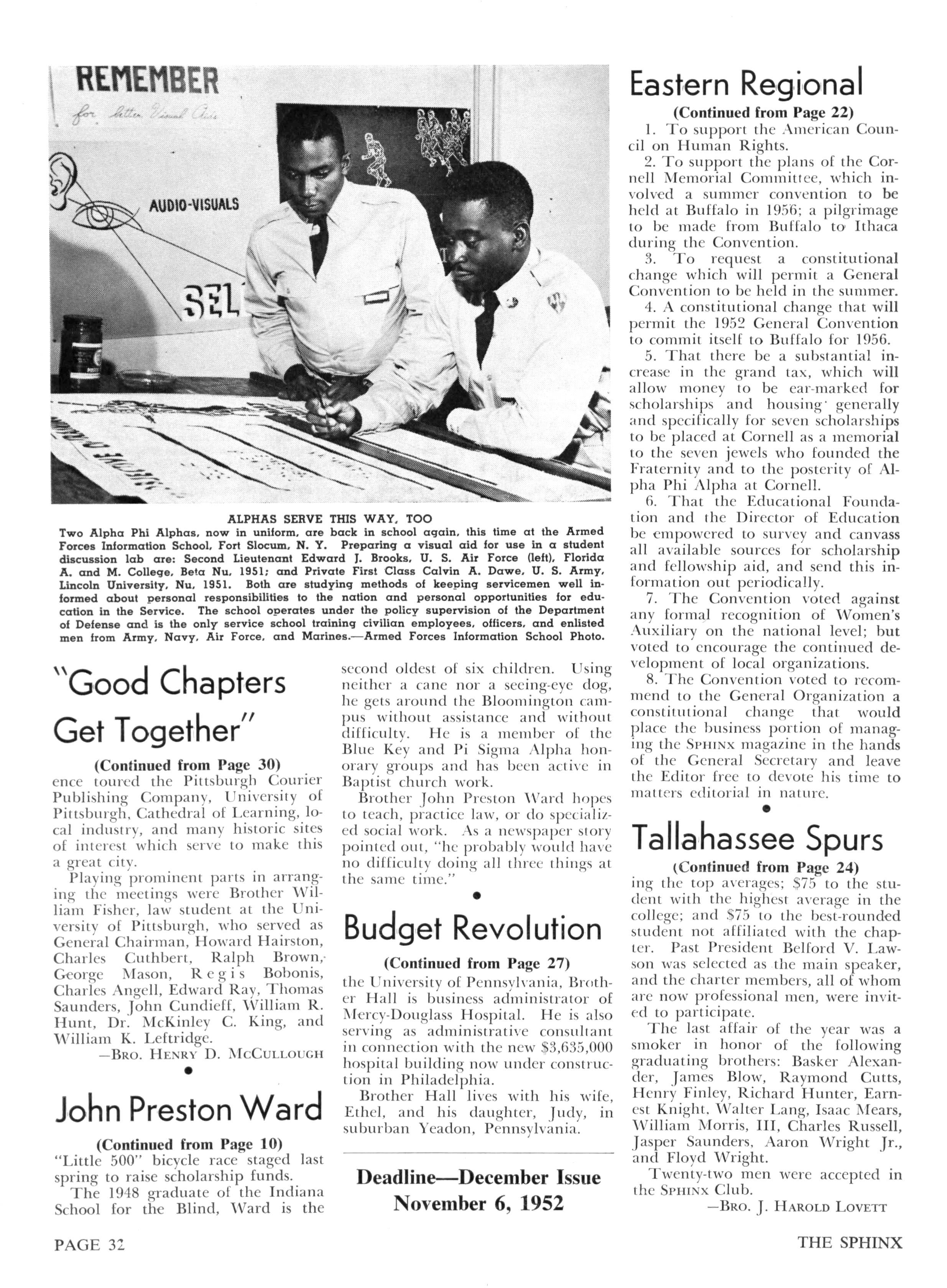 Playing prominent parts in arranging the meetings were Brother William Fisher, law student at the University o( Pittsburgh, who served as General Chairman, Howard Hairston, Charles Cuthbert, Ralph Brown, George Mason, Regis Bobonis, Charles Angell, Edward Ray, Thomas Saunders, John Cundieff, William R Hunt, Dr! McKinley C King, and William K. Leftridge.