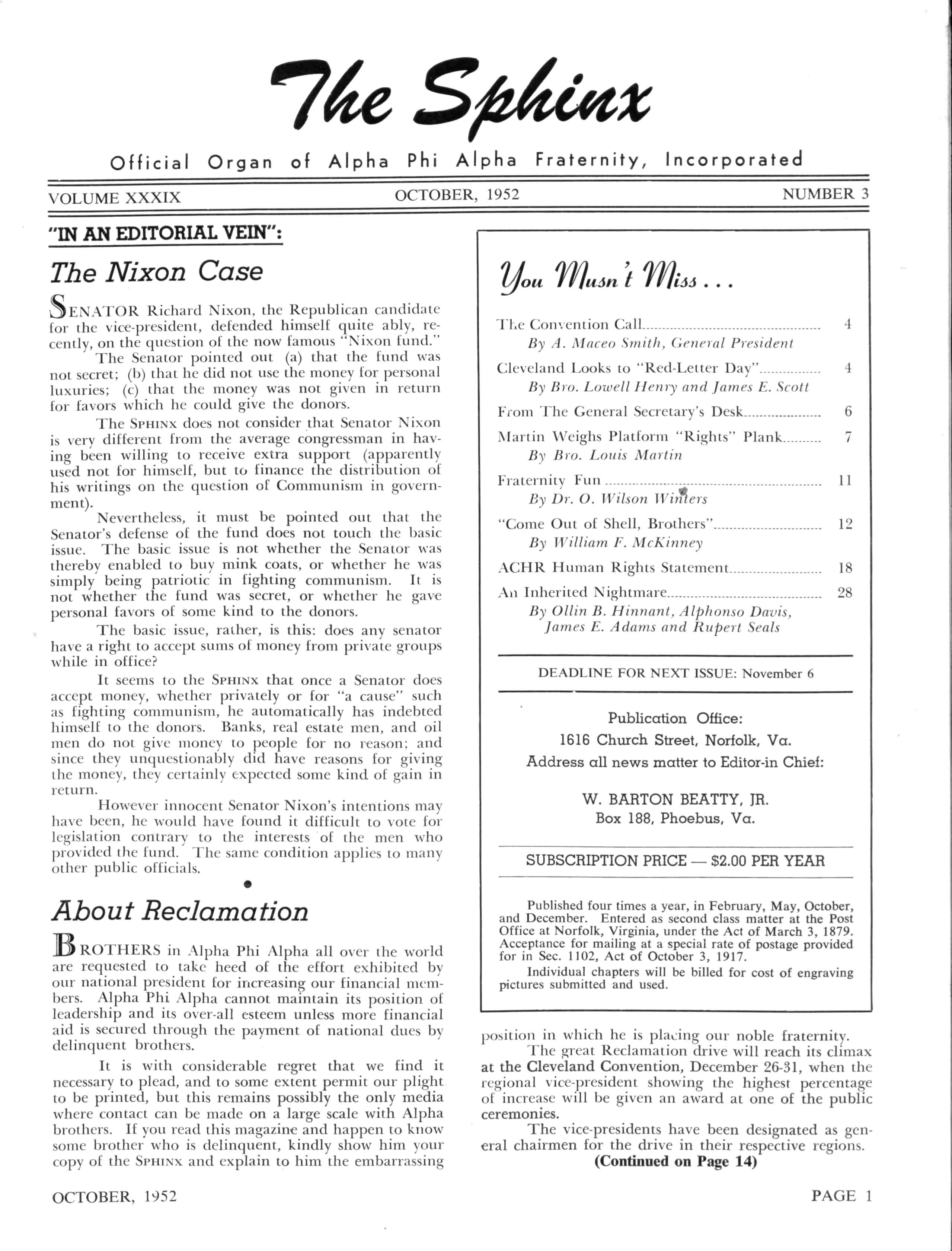 The SPHINX | Fall October 1952 | Volume 38 | Number 3 195203803