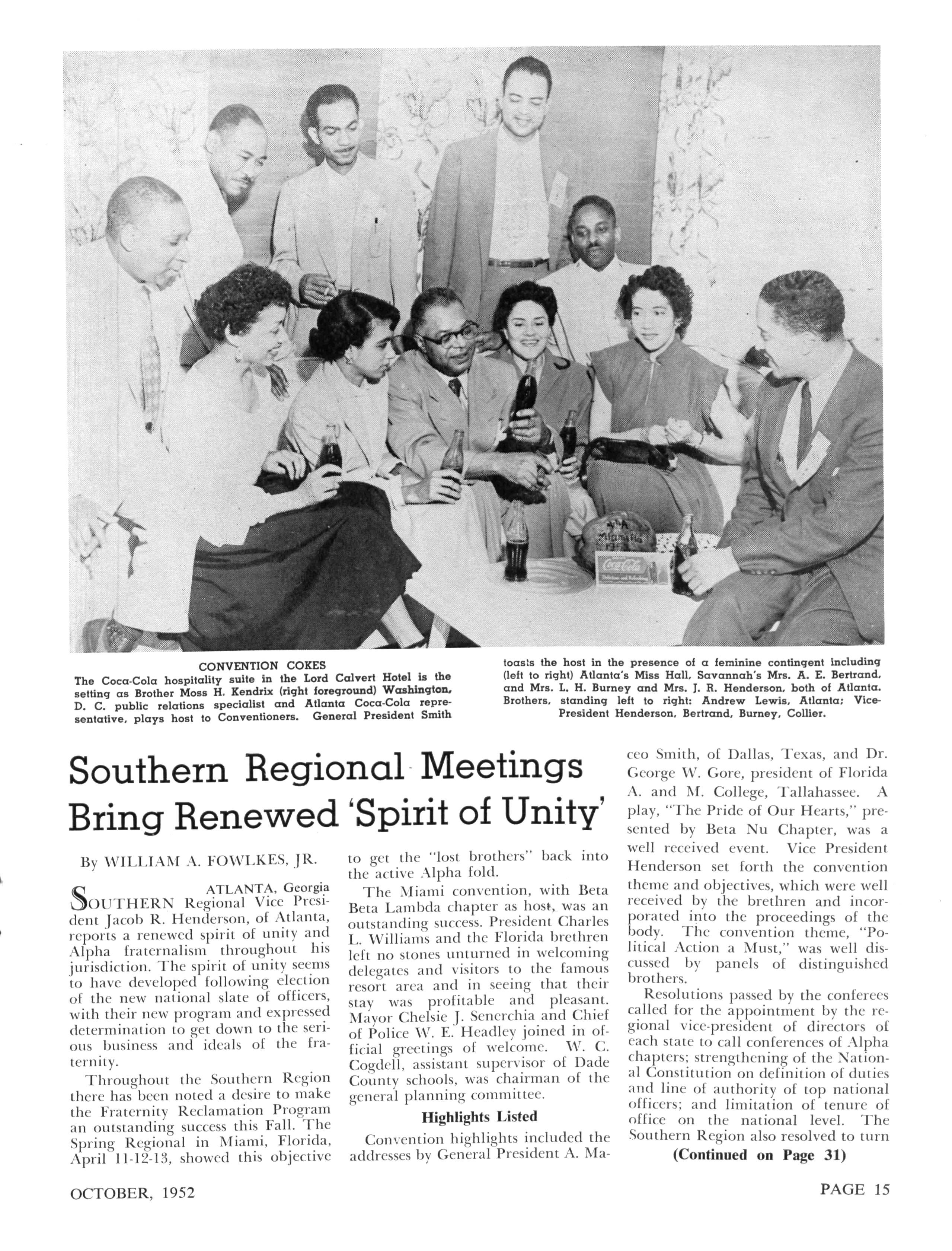 Forty-five chapters, among the 87 in the Southern Region, were represented by some 200 brothers at the Miami convention Brother Henderson reports magnificent response of chapters to the NAACP Fund call and to the Bennie Brown Fund