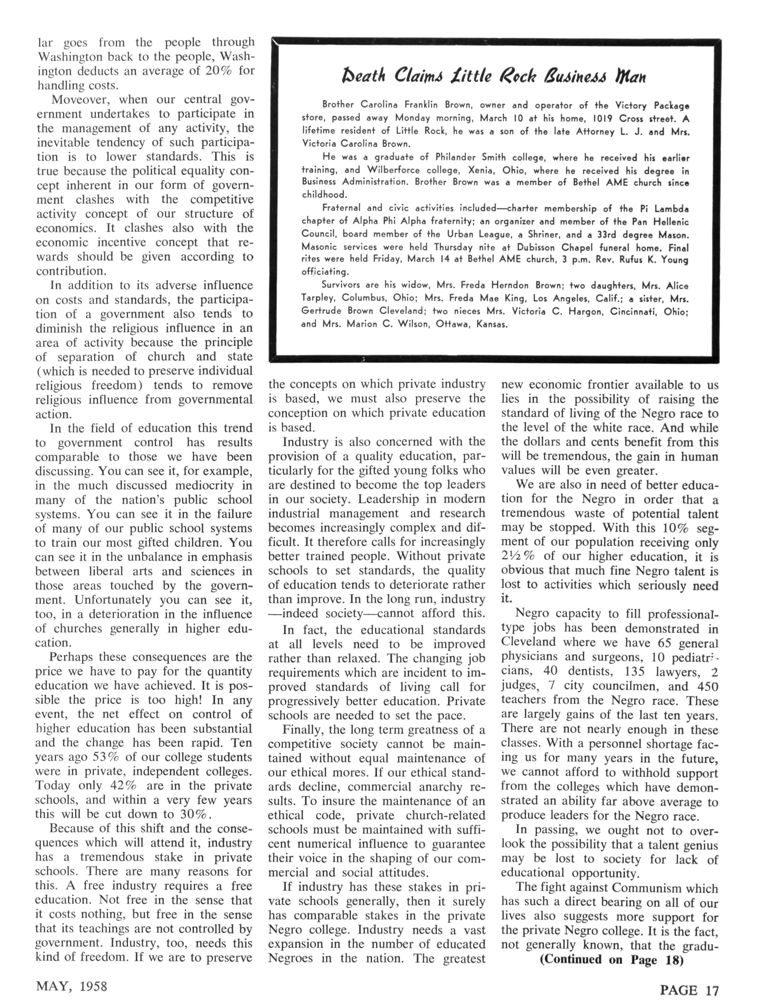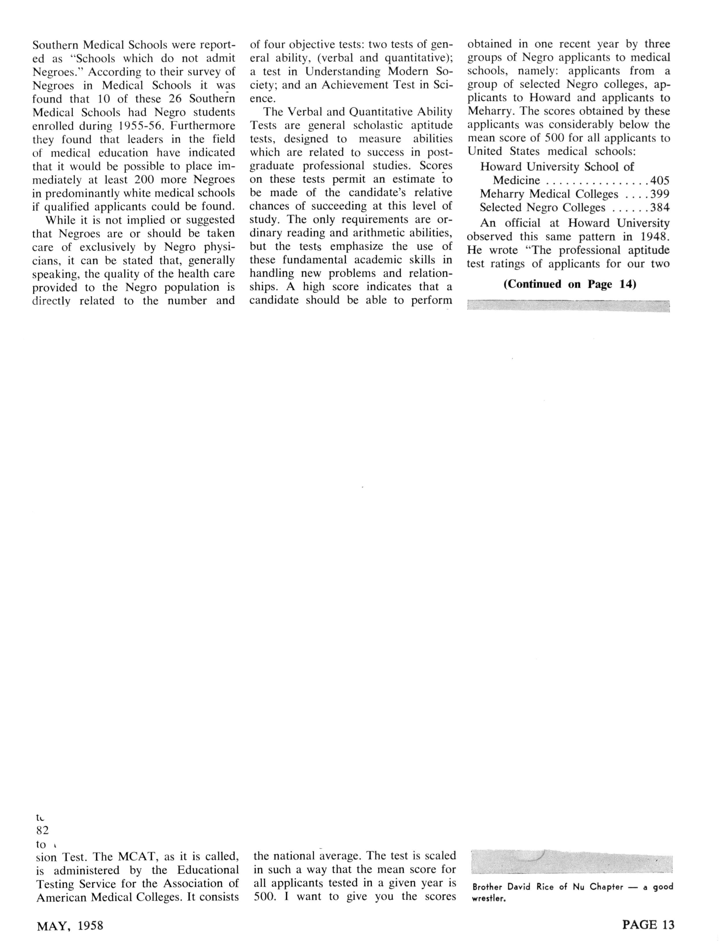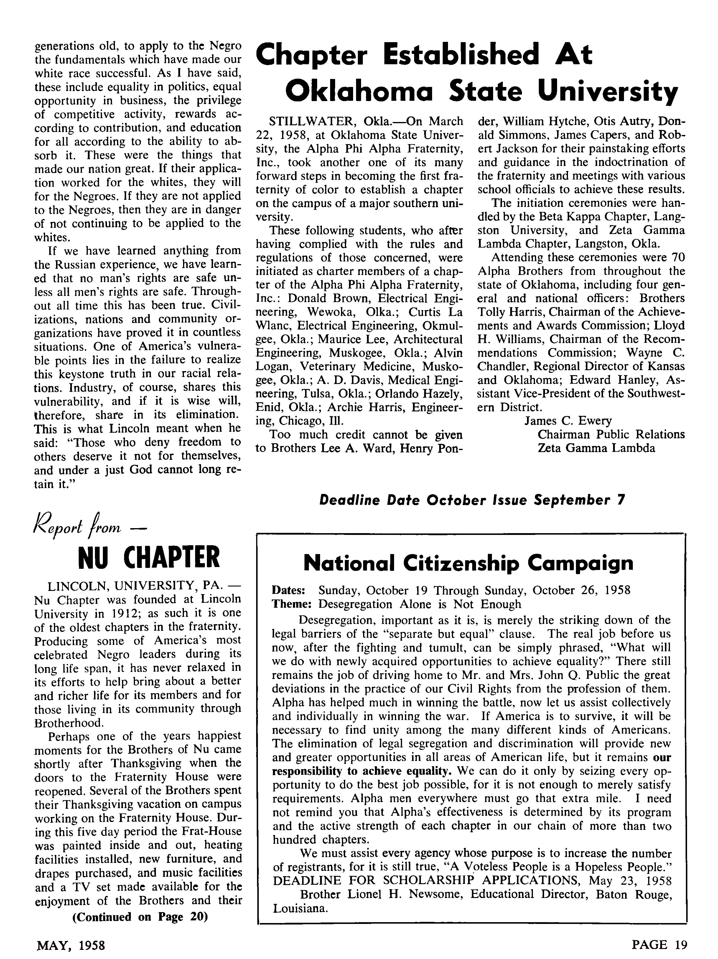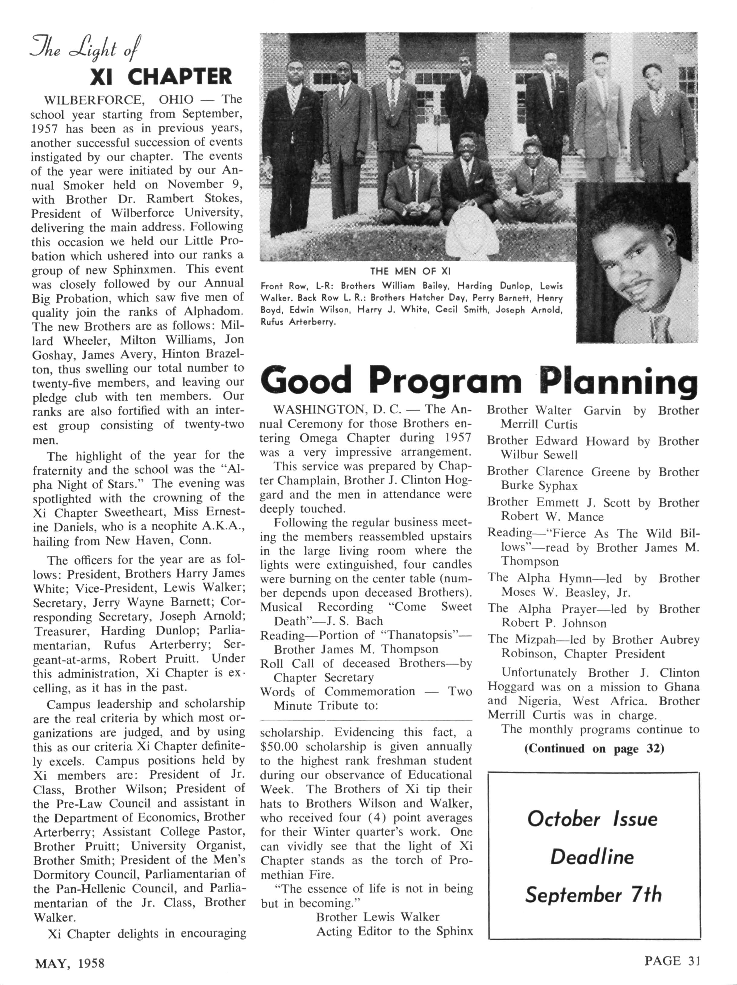 12 NU—Alan Clarke (CS), Box 362, Lincoln University, Pa XI—Bobby V Webster, Wilberforce University, Wilberforce Ohio