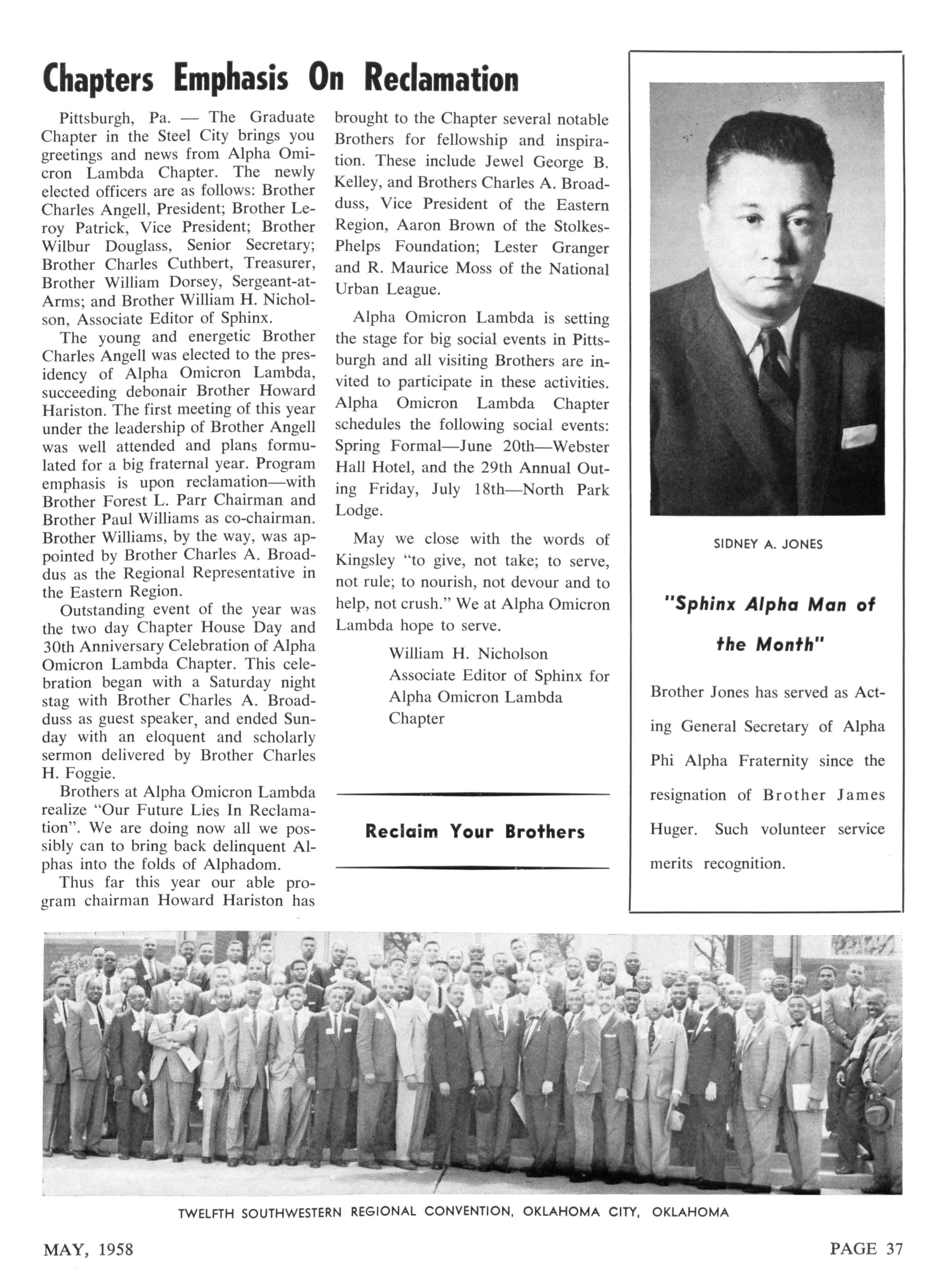 ALPHA UPSILON—J L Johnson (S), 6114 Scotten St. Detroit Mich