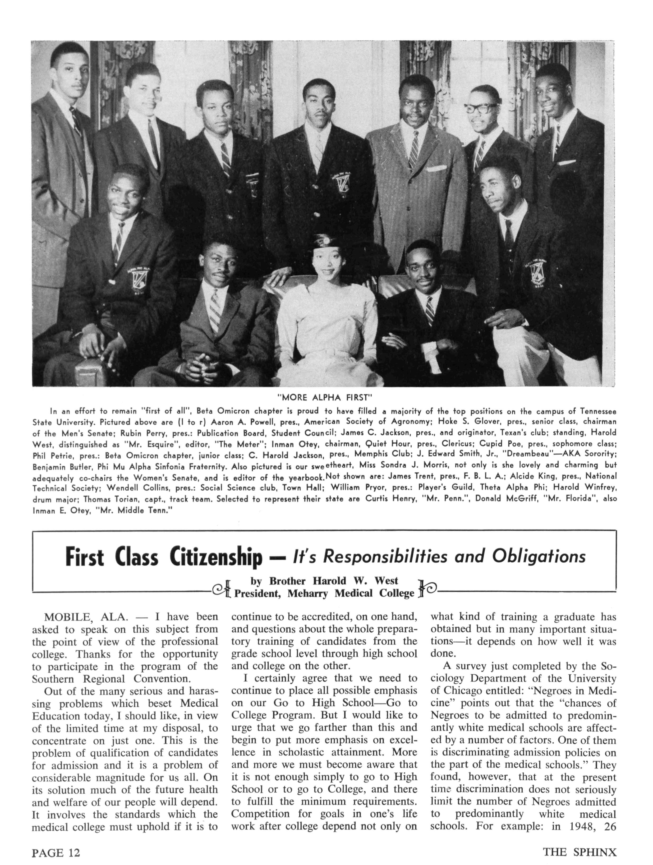 STAFF EDITORS—Samuel P DeBose, Harold R Jones, T Winston Cole, Sr Charles A Broaddus, James E Huger, C Anderson Davis, John Hope Franklin, Alonzo G Moron, Ramon Scruggs, Lionel H Newsom, Stephen J Wright, Charles V Willie, L Howard Bennett