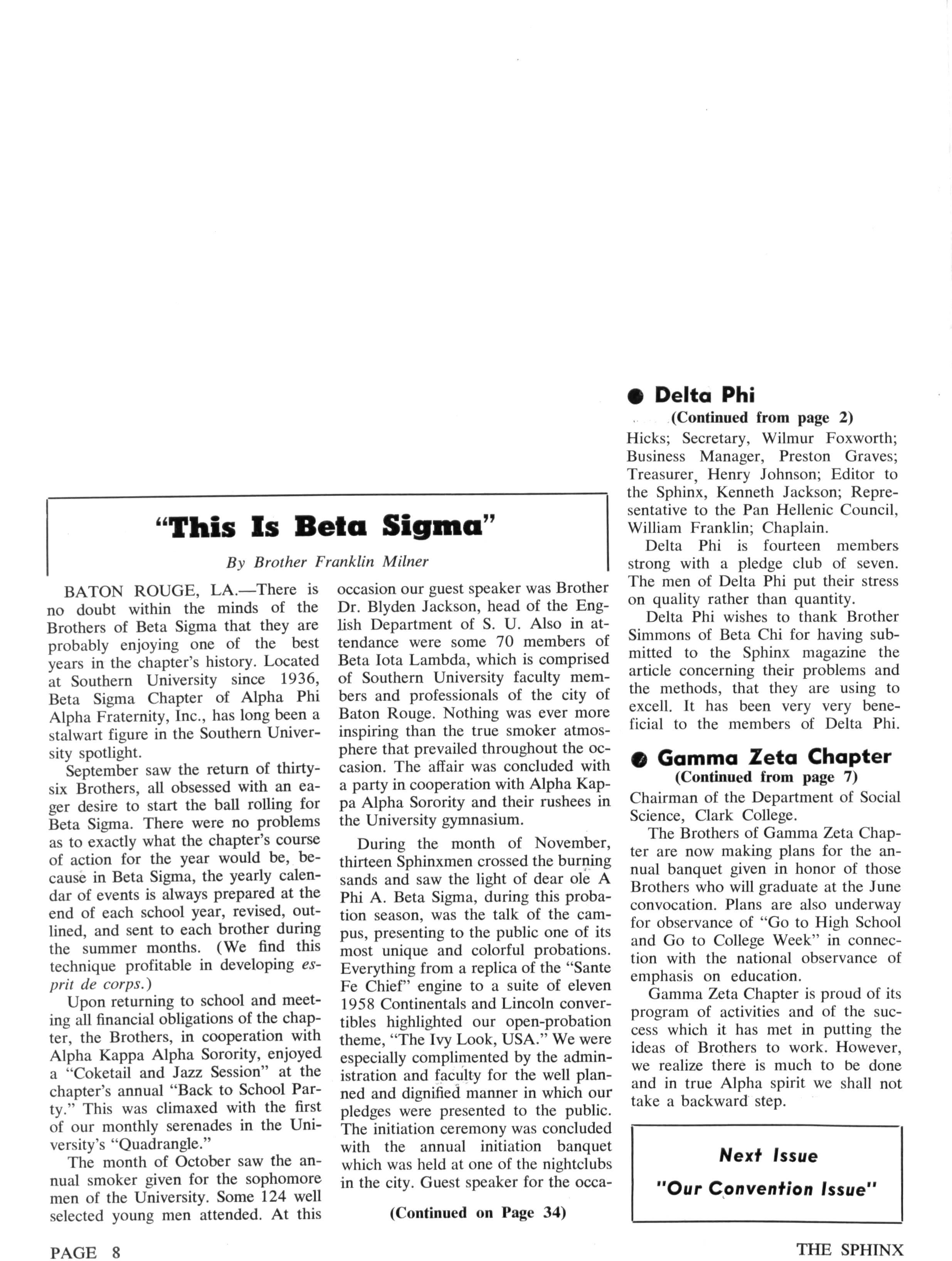 194 DELTA ZETA LAMBDA—R L Hurst (P) S C State College Orangeburg S C