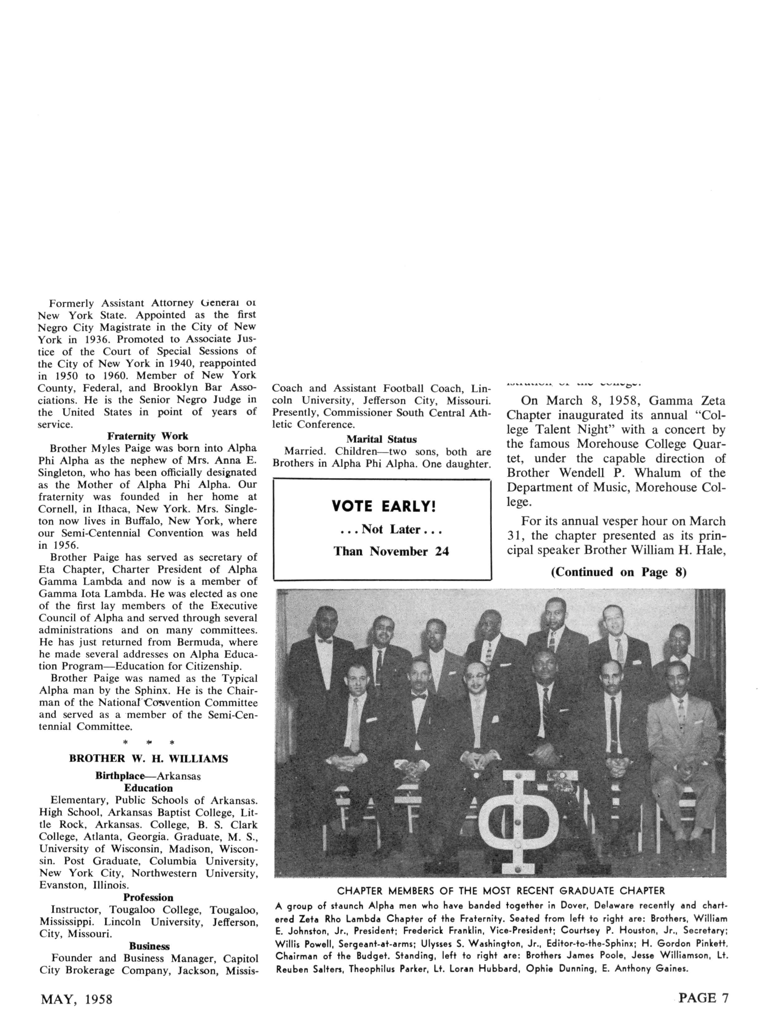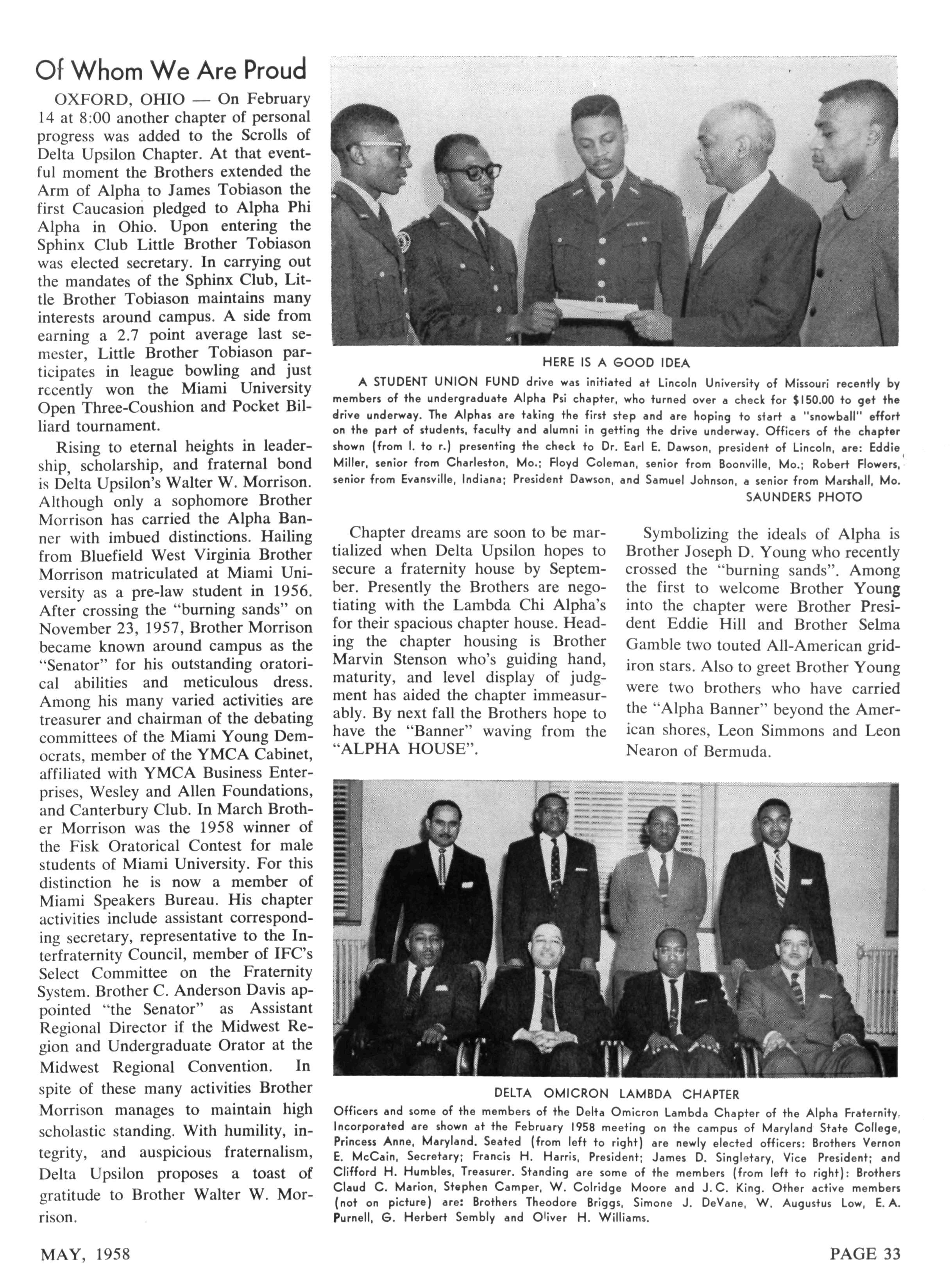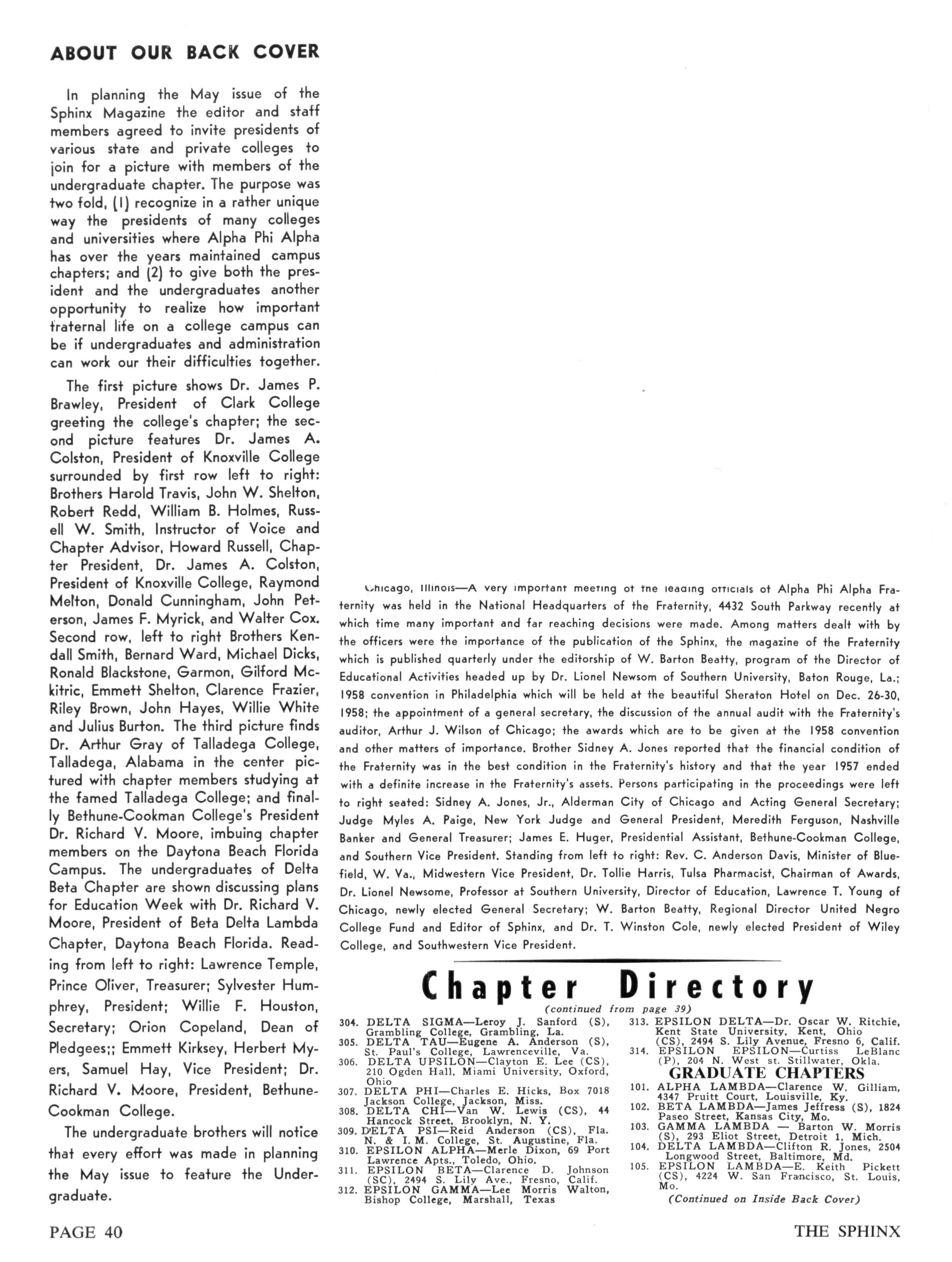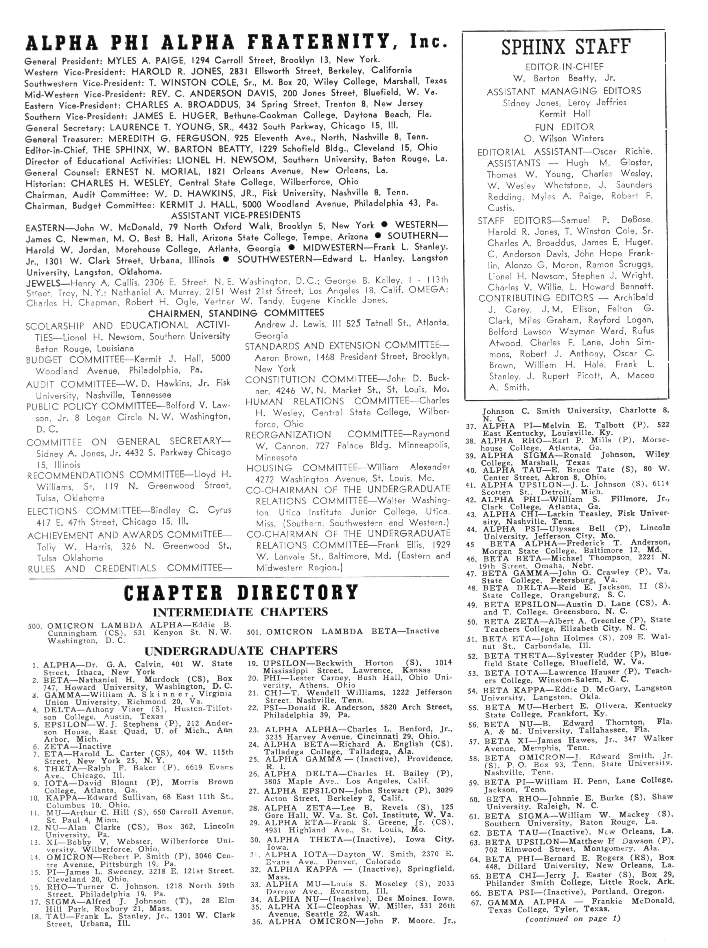 237 ZETA DELTA LAMBDA—Alonzo P Moss (S) 816 S Yellow Sprirgs St., Springfield. Ohio