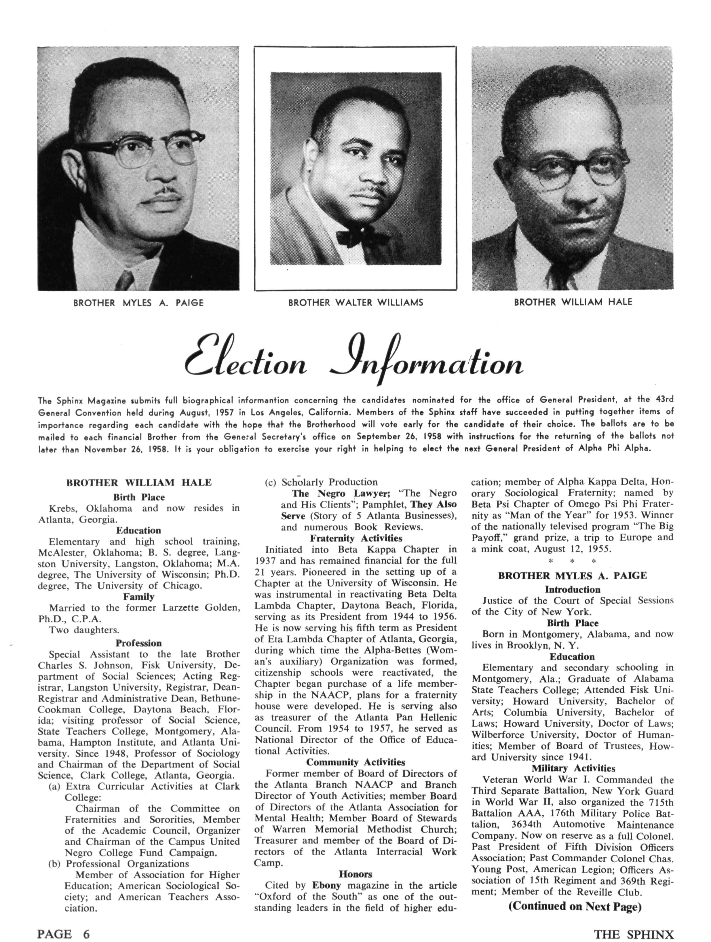 CONTRIBUTING EDITORS — Archibald J Carey, J M Ellison, Felton G Clark, Miles Graham, Rayford Logan, Belford Lawson W:yman Ward, Rufus Atwood, Charles F Lane, John Simmons, Robert J Anthony, Oscar C Brown, William H Hale, Frank L Stanley, J Rupert Picott, A Maceo A Smith