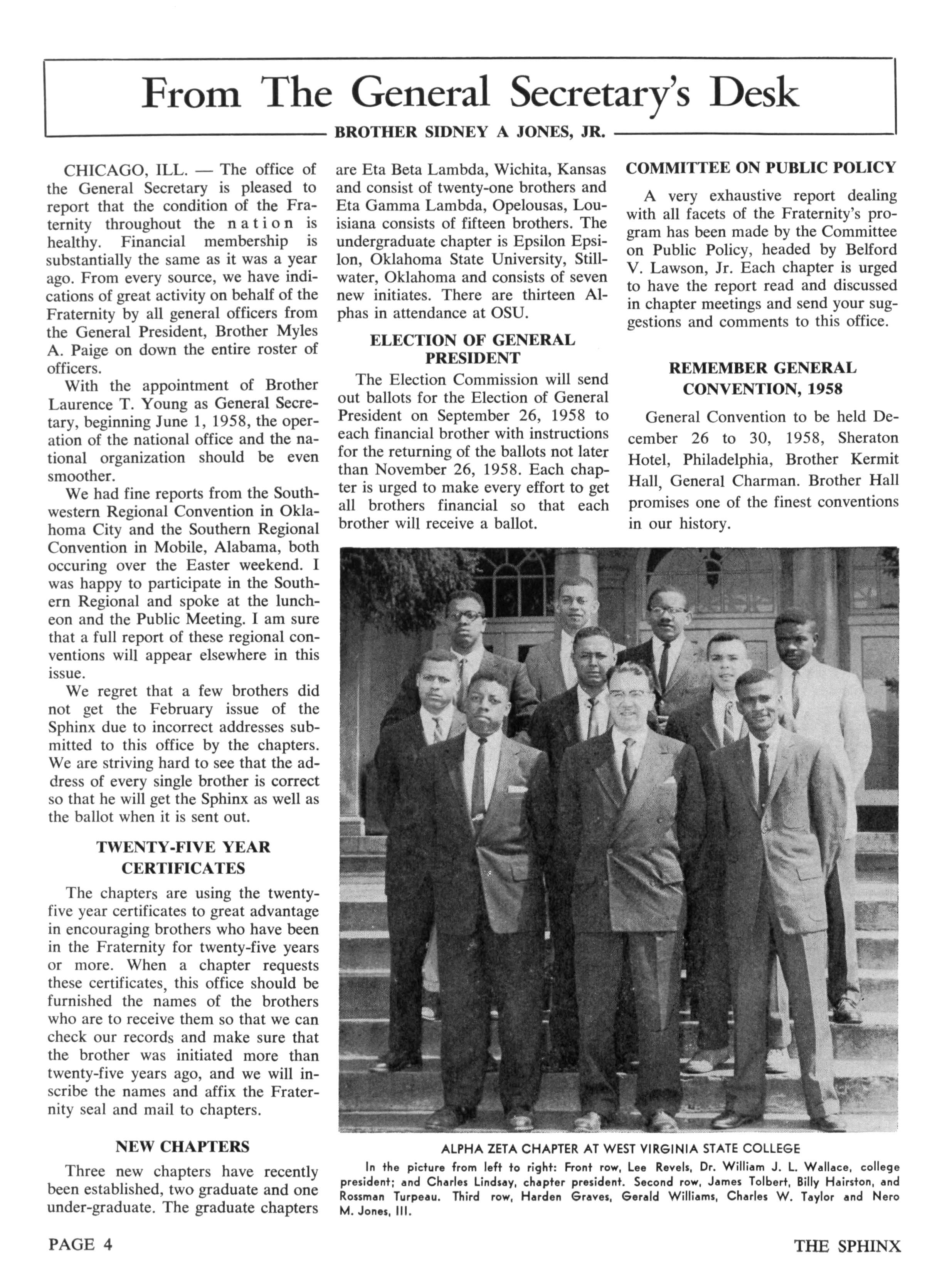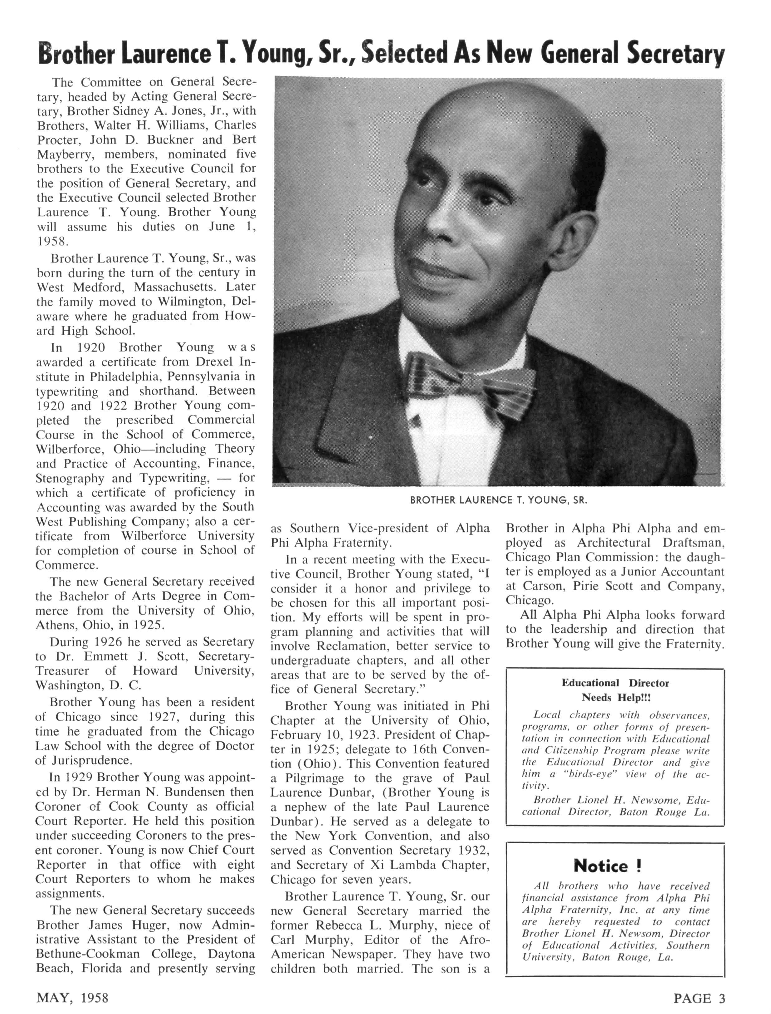 General Secretary: LAURENCE T YOUNG, SR., 4432 South Parkway, Chicago 15, III