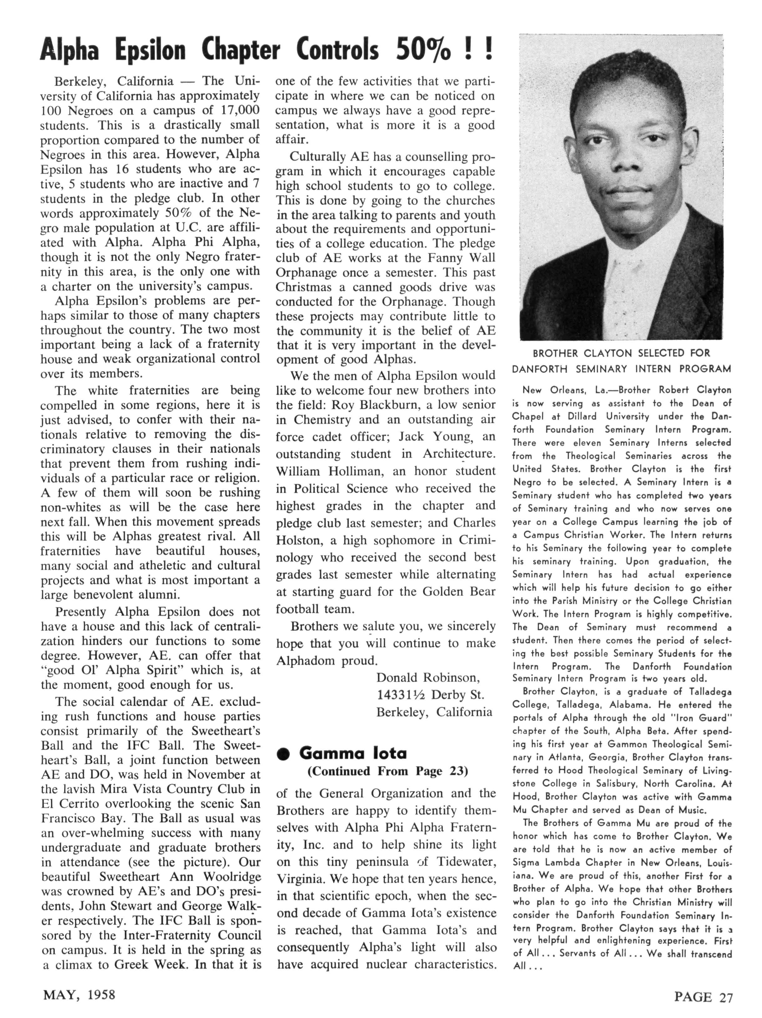 27 ALPHA EPSILON—John Stewart (P), 3029 Acton Street, Berkeley 2, Calif