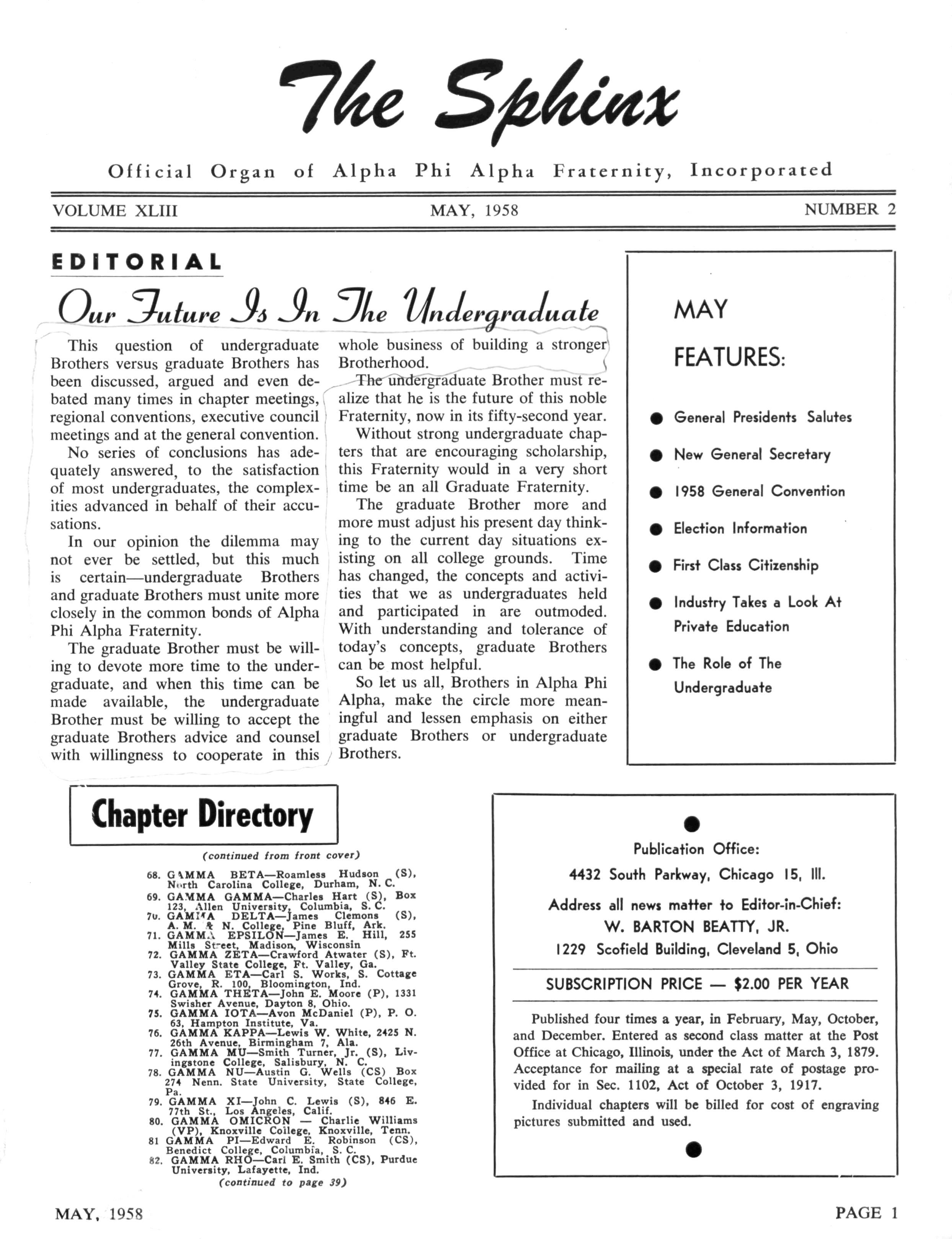 Editor-in-Chief, THE SPHINX, W BARTON BEATTY, 1229 Schofield Bldg., Cleveland 15, Ohio