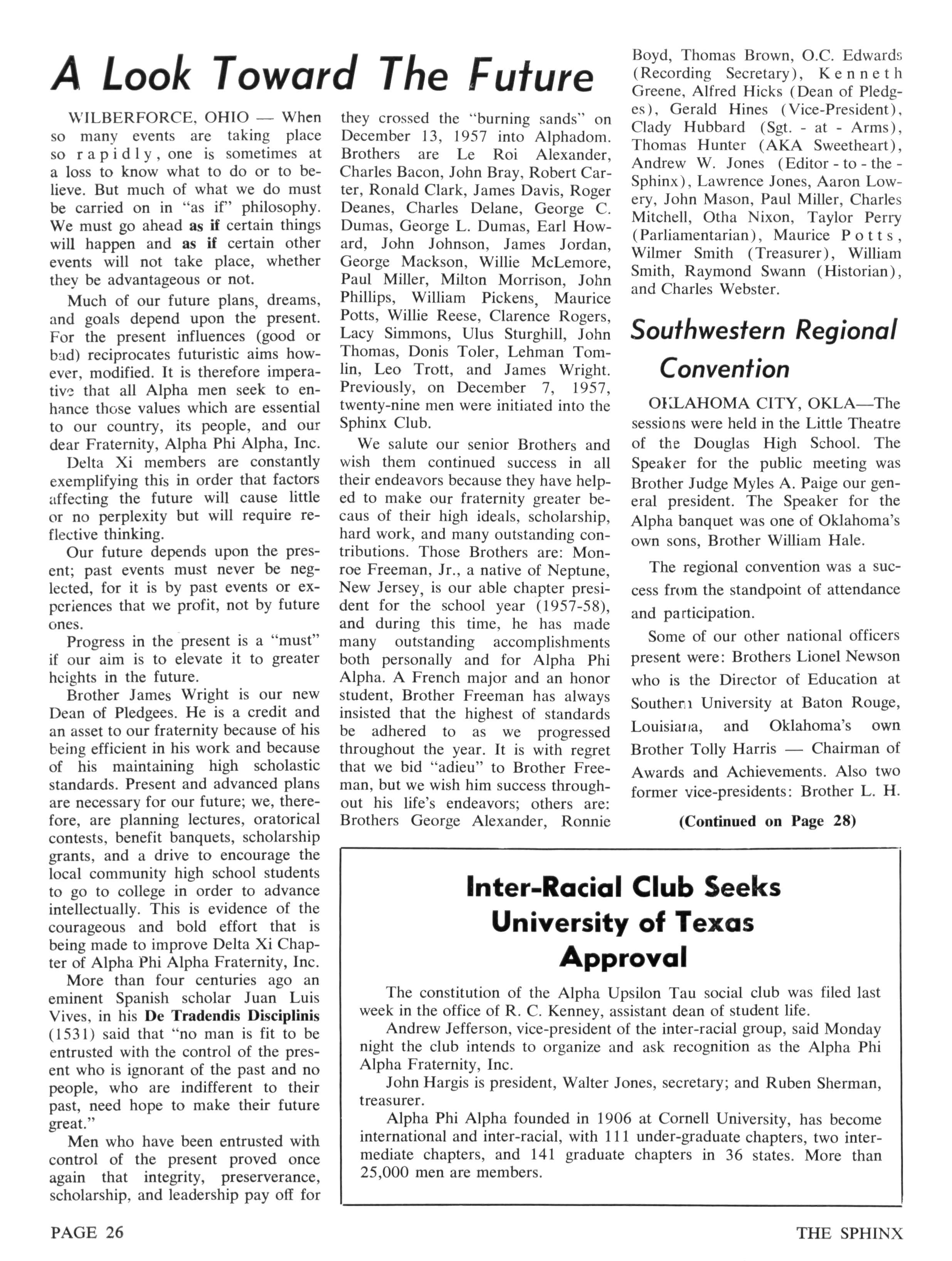 23 ALPHA ALPHA—Charles L Benford, Jr., 3235 Harvey Avenue Cincinnati 29, Ohio