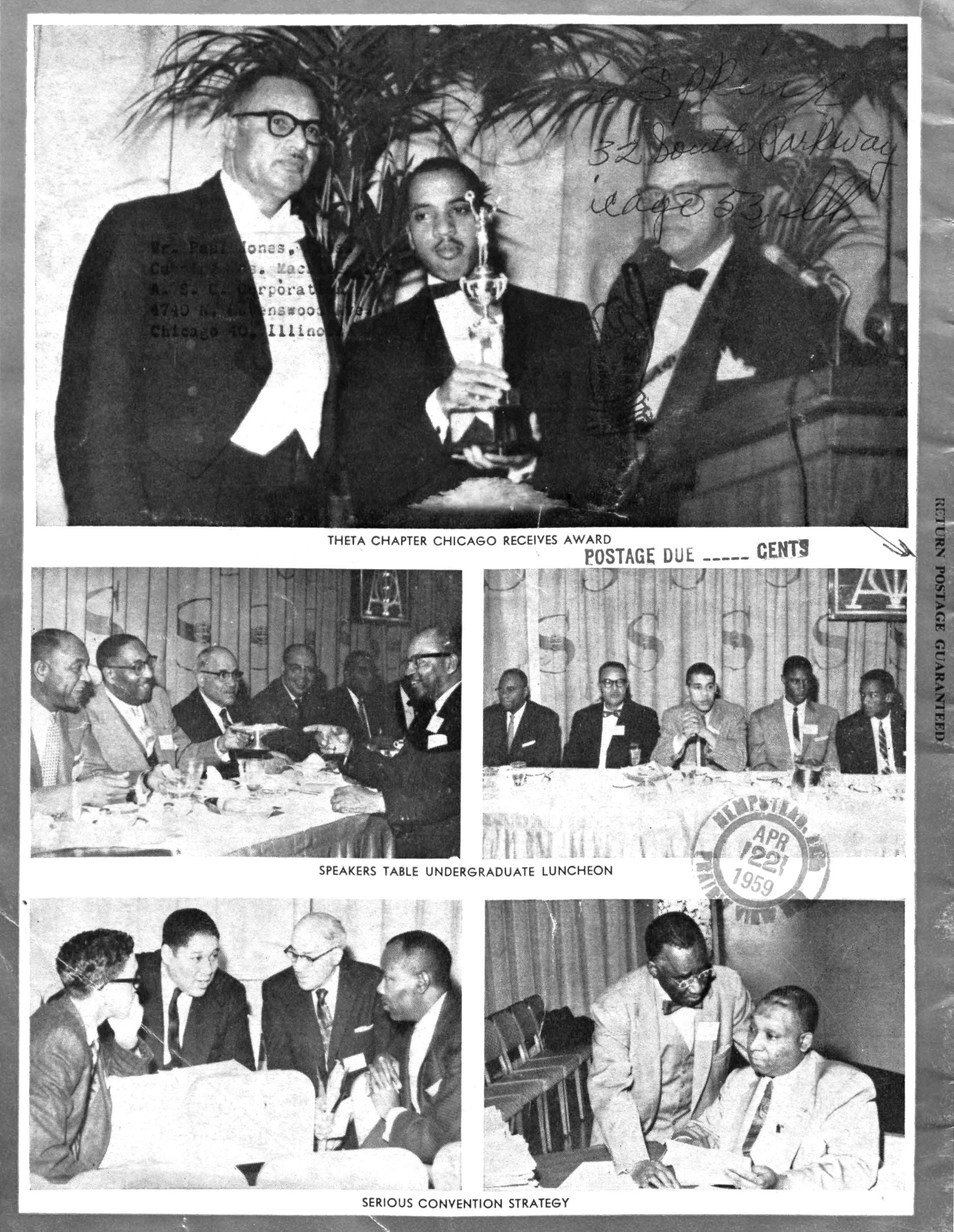THETA CHAPTER CHICAGO RECEIVES AWARD POSTAGE DUE ~.. . GENTS