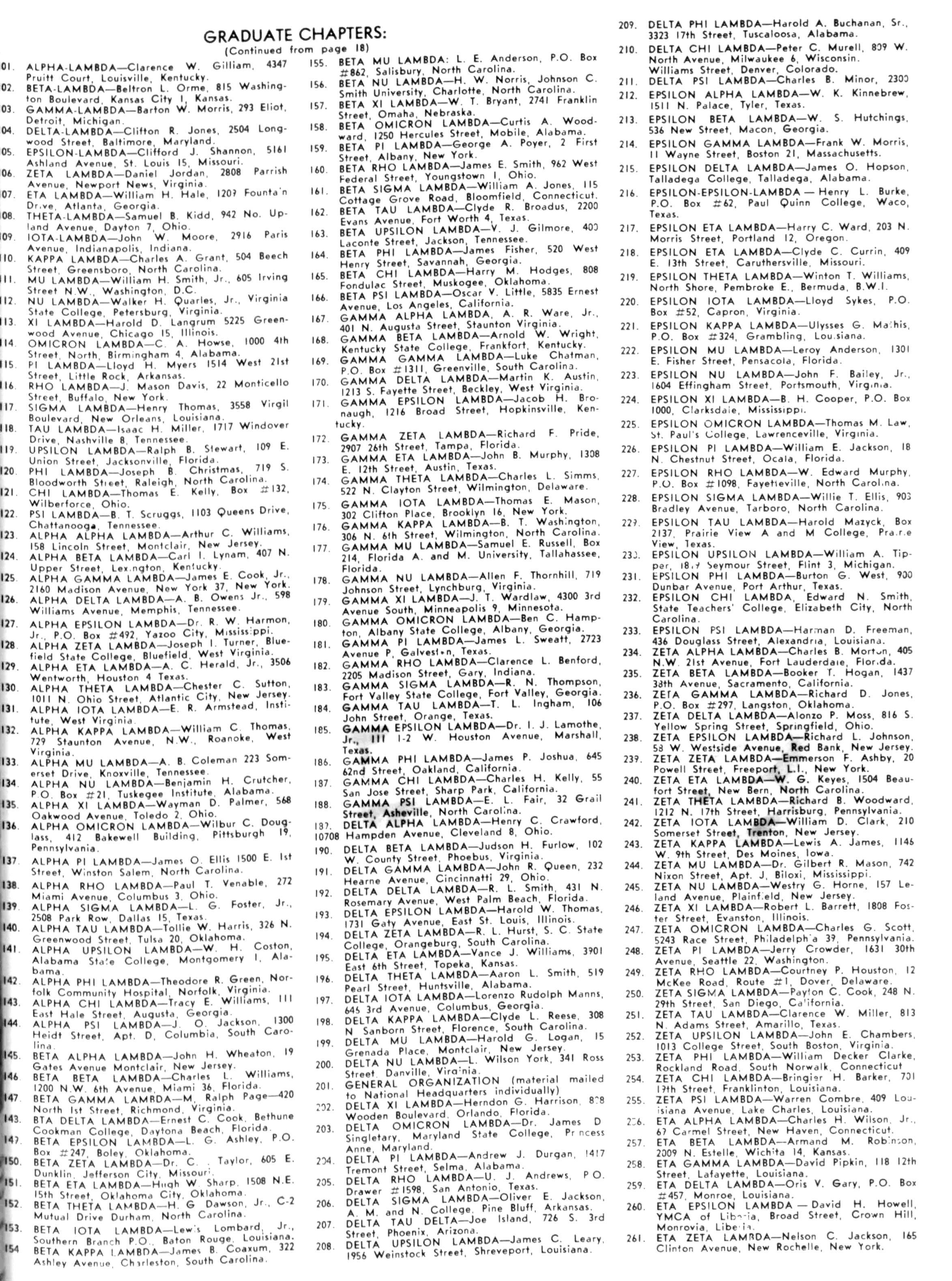 ZETA ETA LAMBDA— W G Keyes 1504 Beaufort Street, New Bern, North Carolina