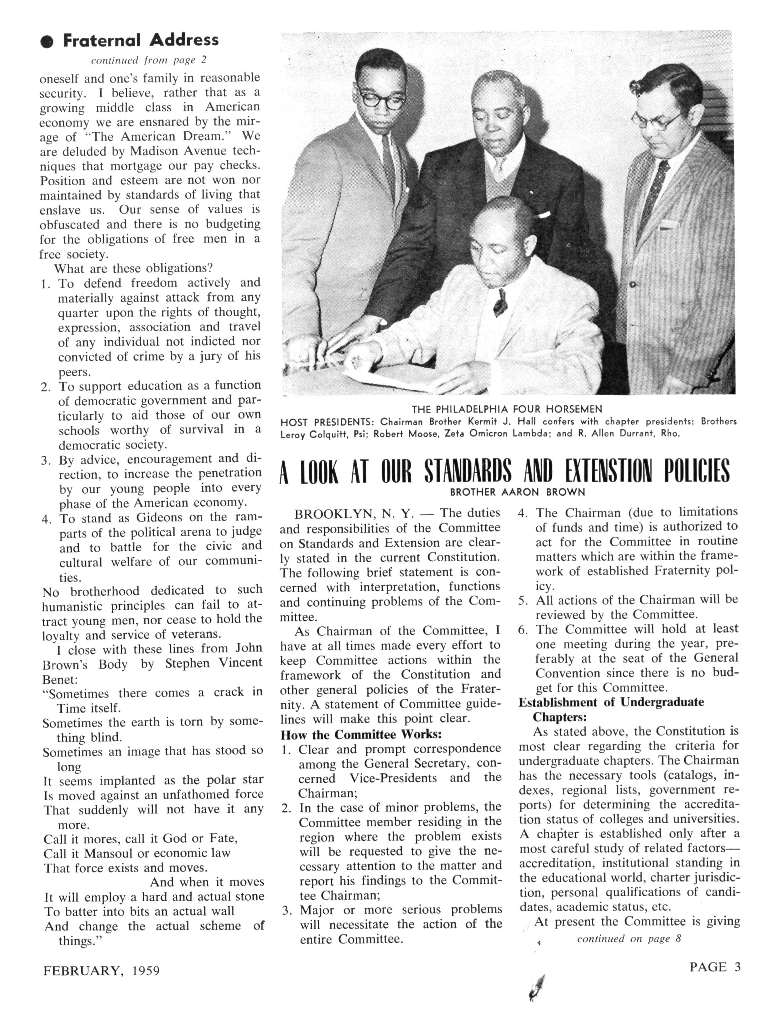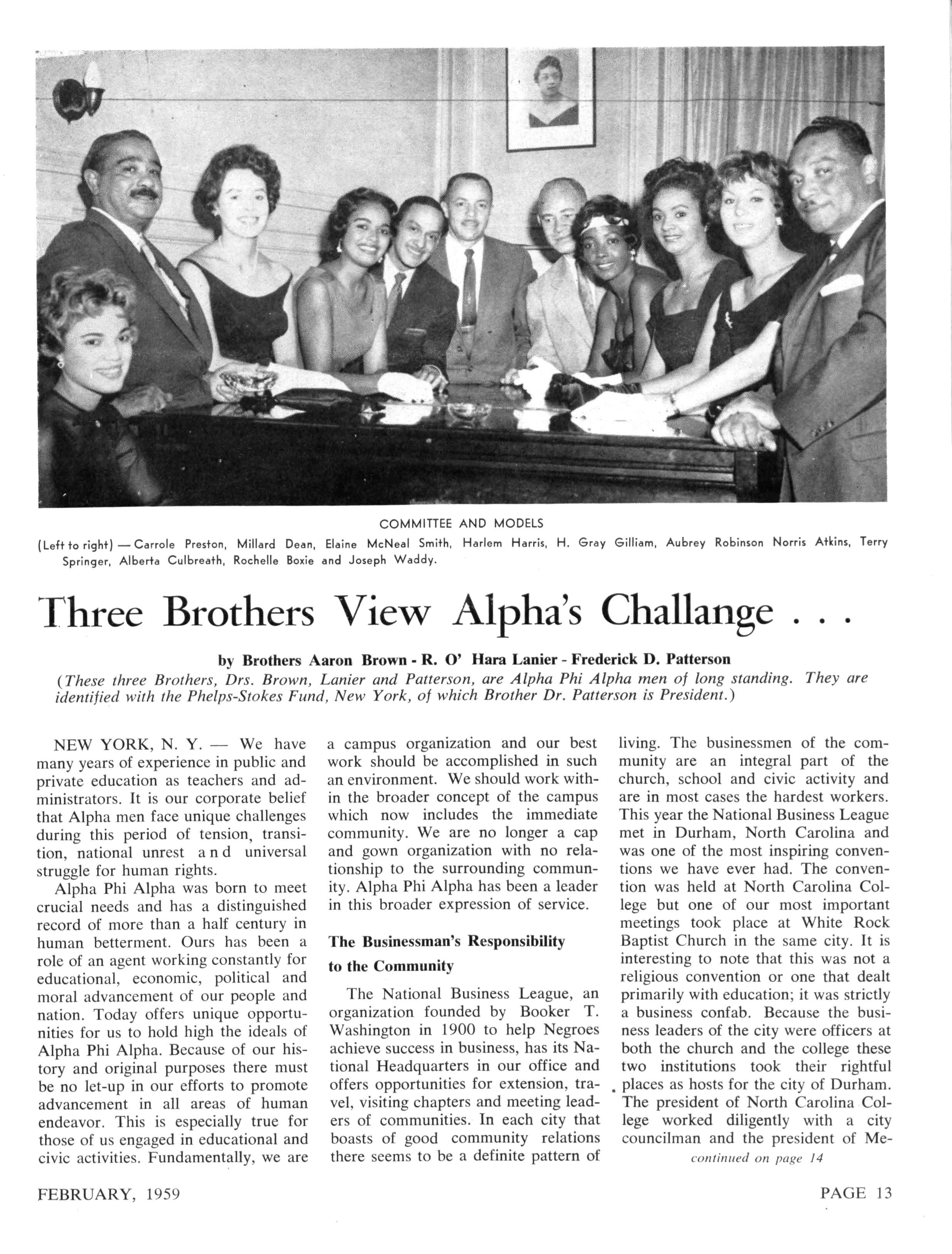 STAF F EDITORS—Samue l P DeBose, Harol d R Jones, T Winsto n Cole , Sr., Charles A Broaddus, James E Huger , C Anderso n Davis, John Hop e Franklin, Alonzo G Moron , Ramon Scruggs, Lionel H Newsome Stephen J Wright