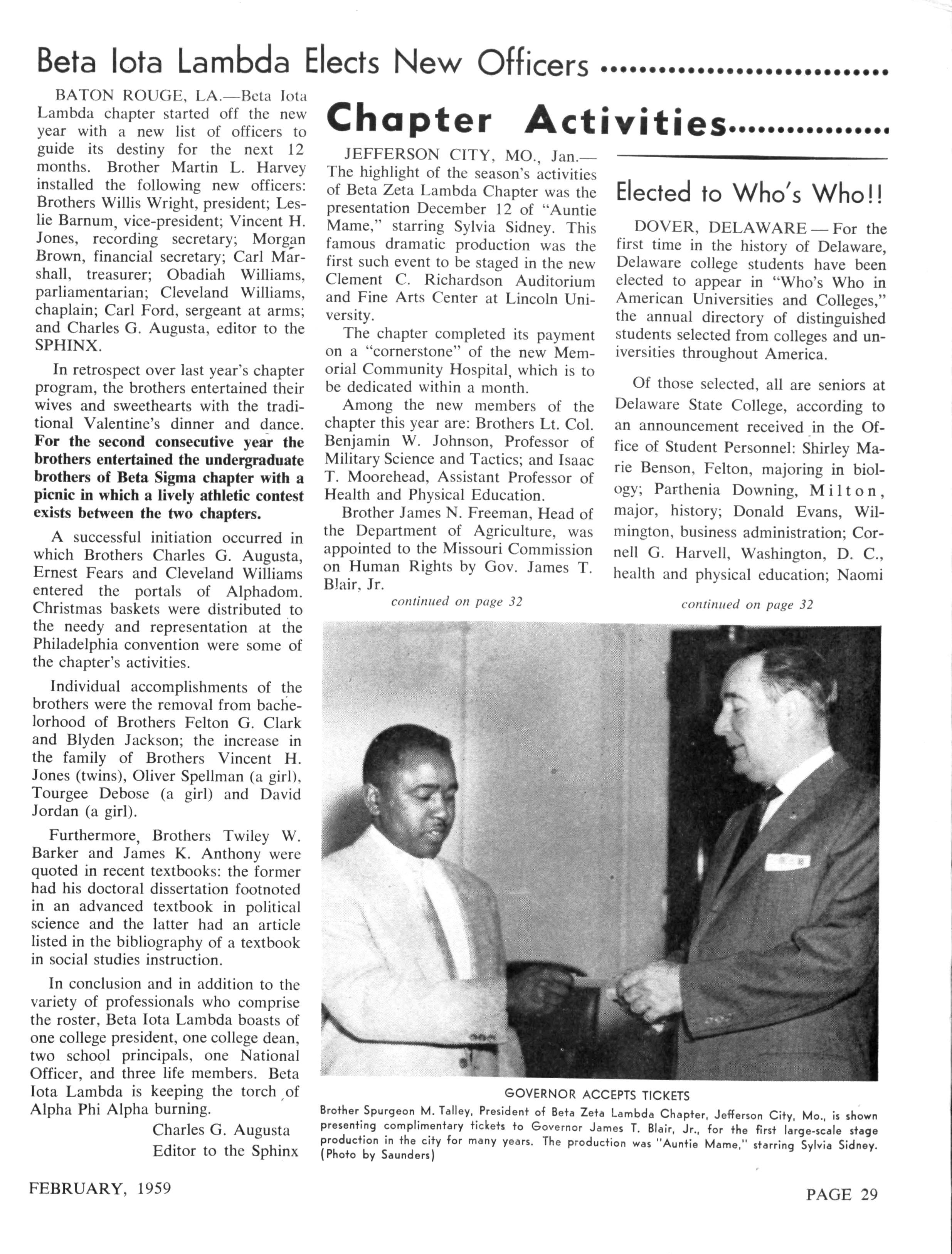 ALPHA-PSI-Willi e D May 311 Foster Hall Lincoln University, Jefferson City, Missouri