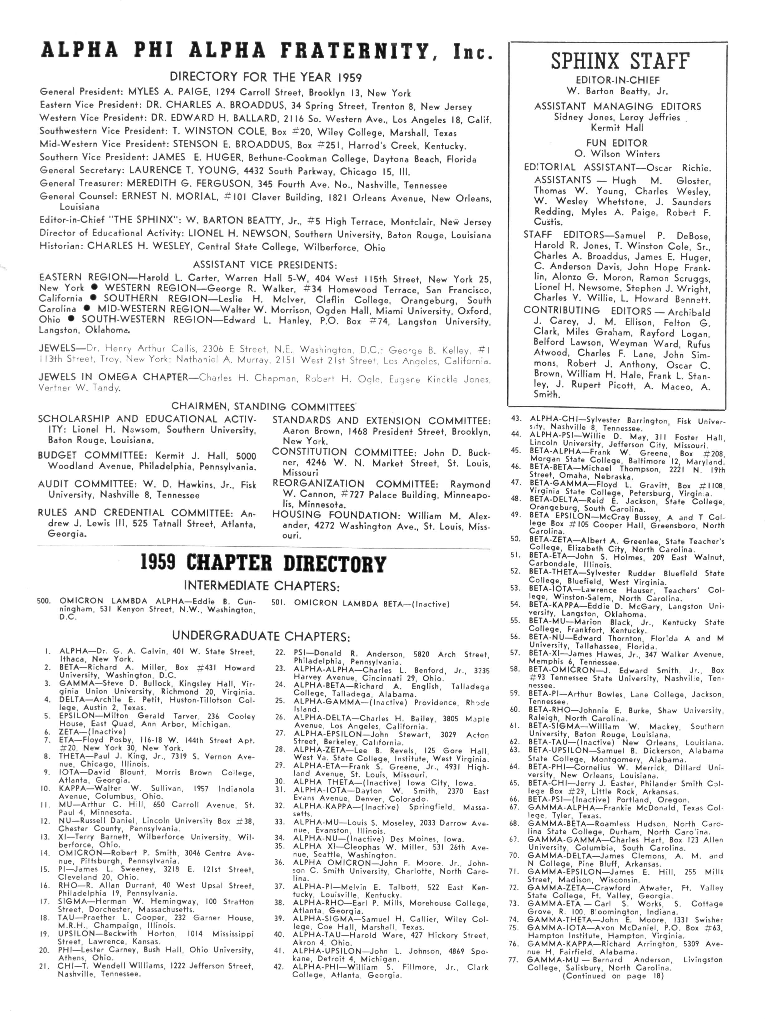1959 CHAPTER DIRECTORY