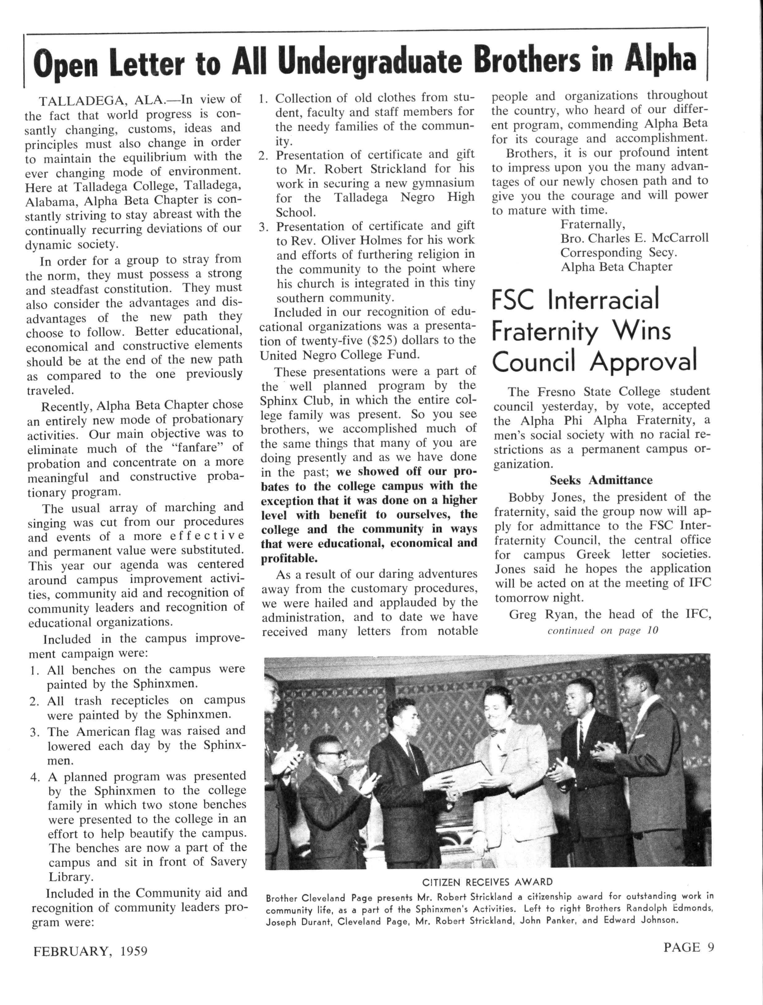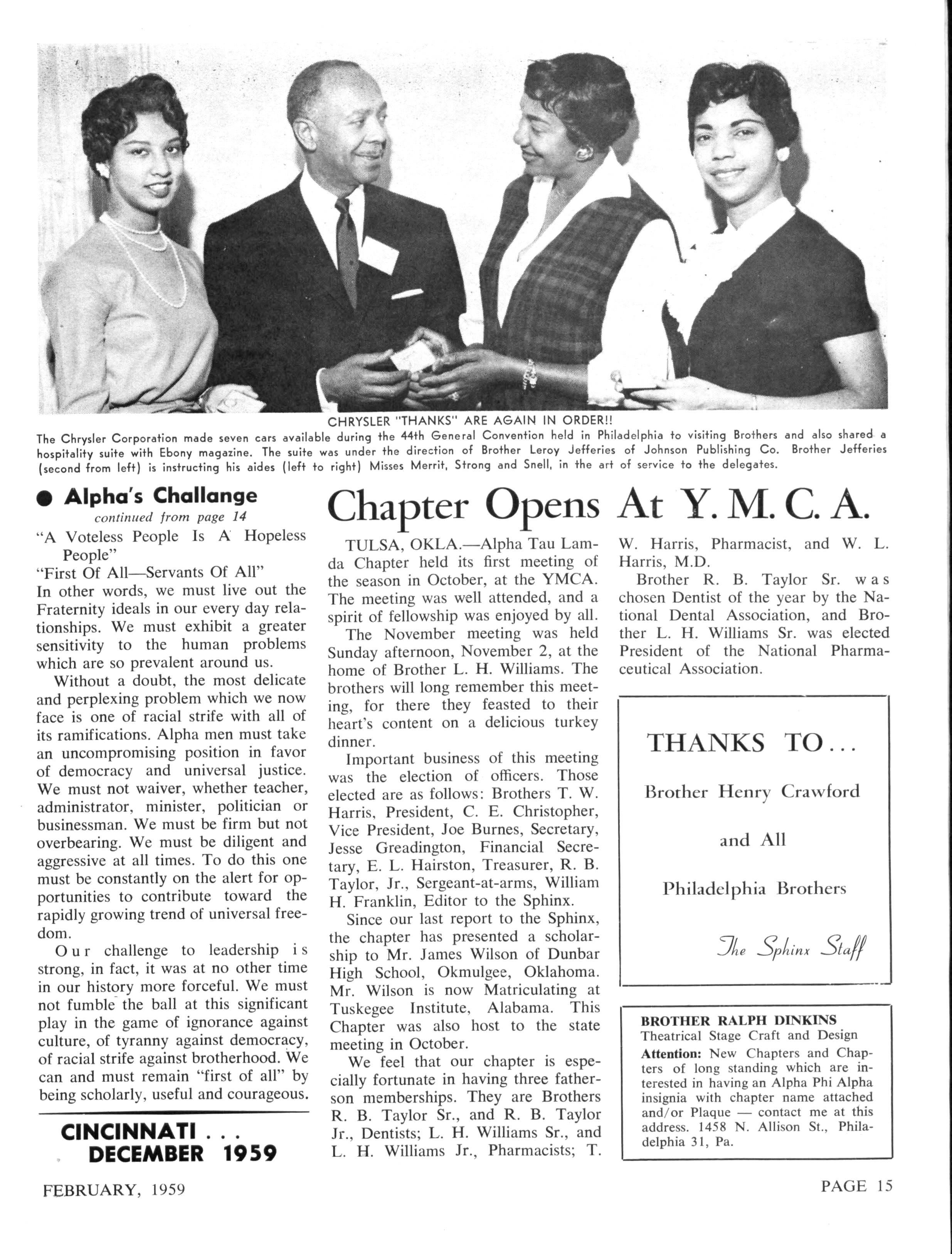 ALfHA-CHI Sylvester Barrington, Fisk University, Nashville 8, Tennessee