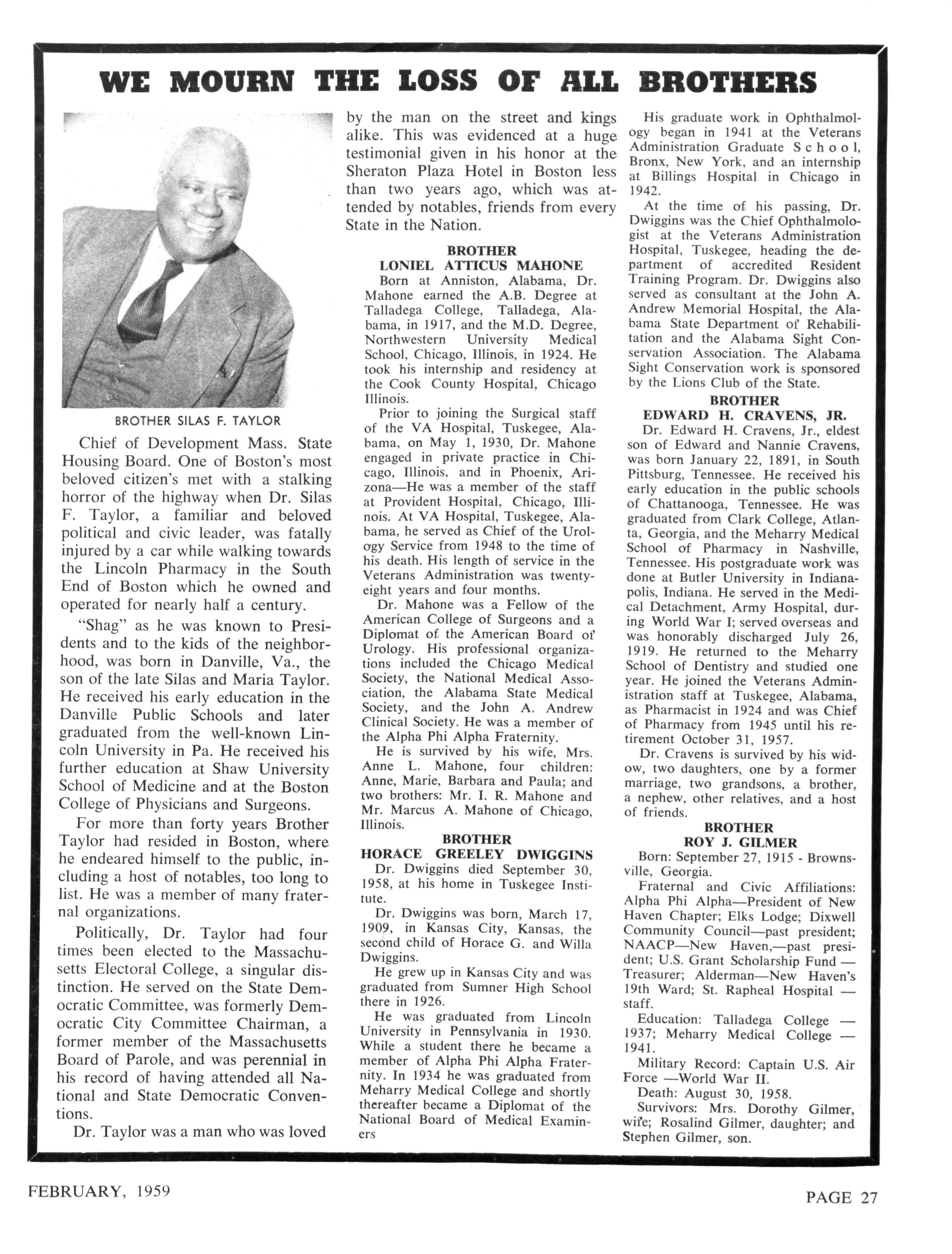 ZETA M U LAMBDA—Dr Gilbert R Mason 742 Nixon Street, Apt J Biloxi, Mississippi