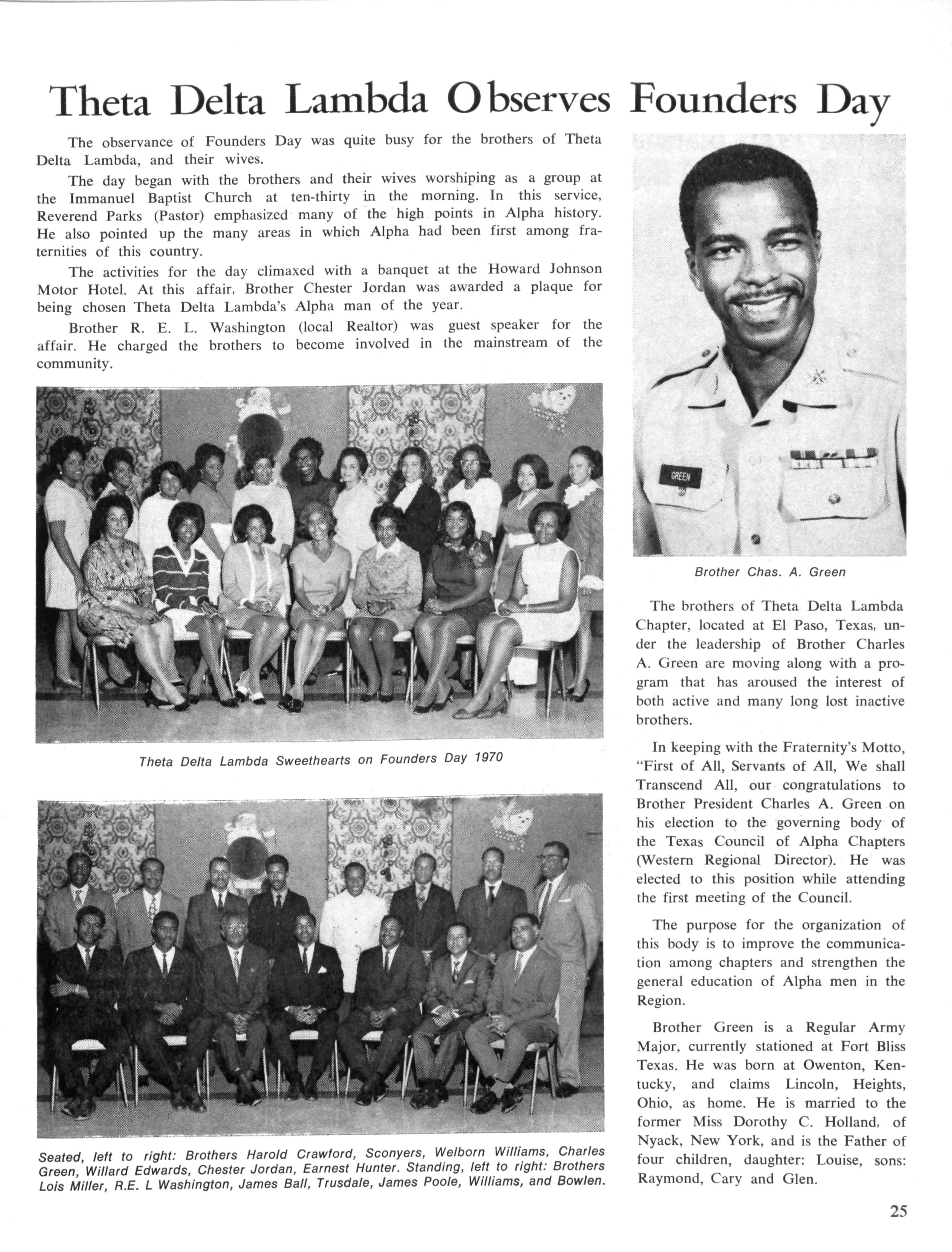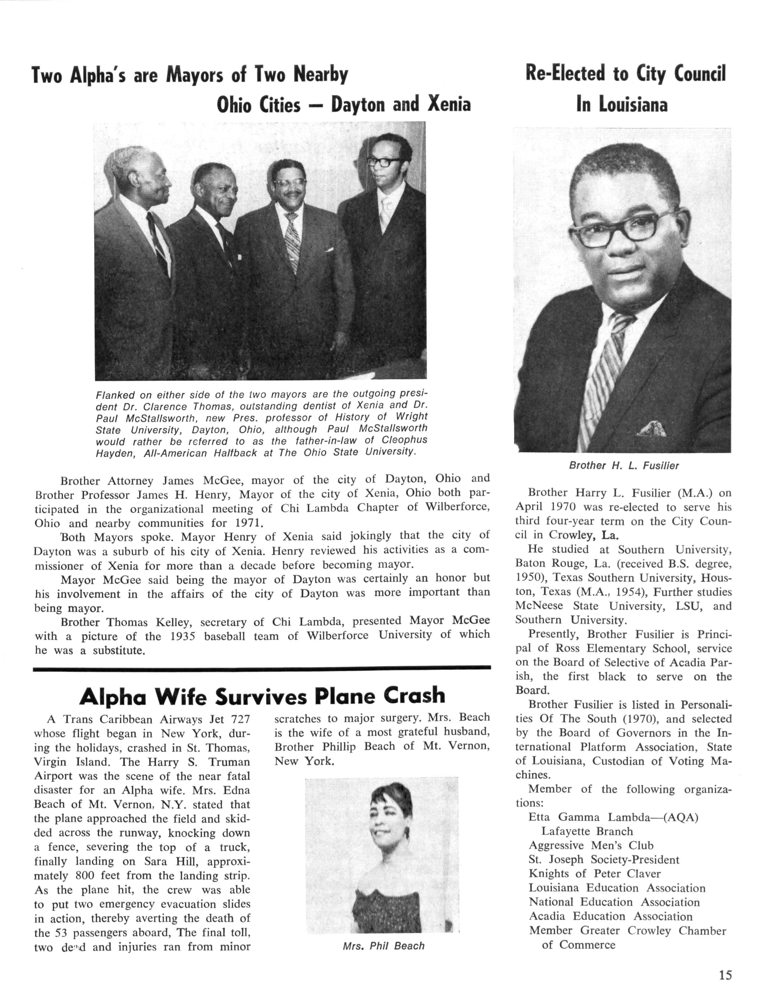 He was past president of Delta Iota Lambda Chapter of Alpha Phi Alpha Fraternity and he served as a member of the Columbus Racial Relations Advisory Committee and Board of Management of the local Y.M.C.A