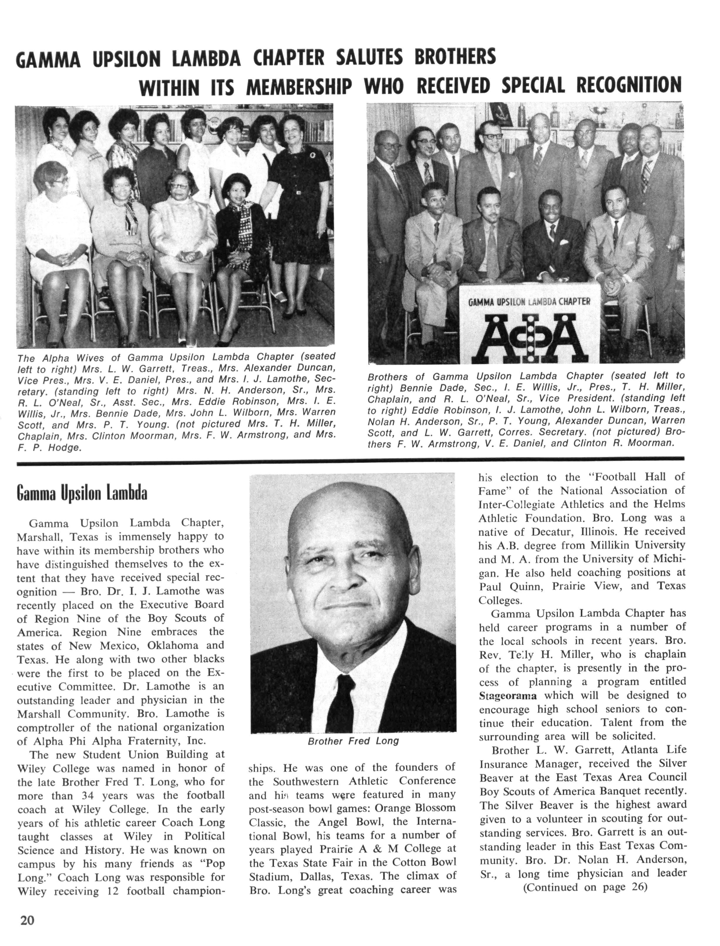 Brother Brooks was Alpha Man of the Year 1969-1970 of Gamma Epsilon Lambda chapter and was elected President for 1970-71 business year