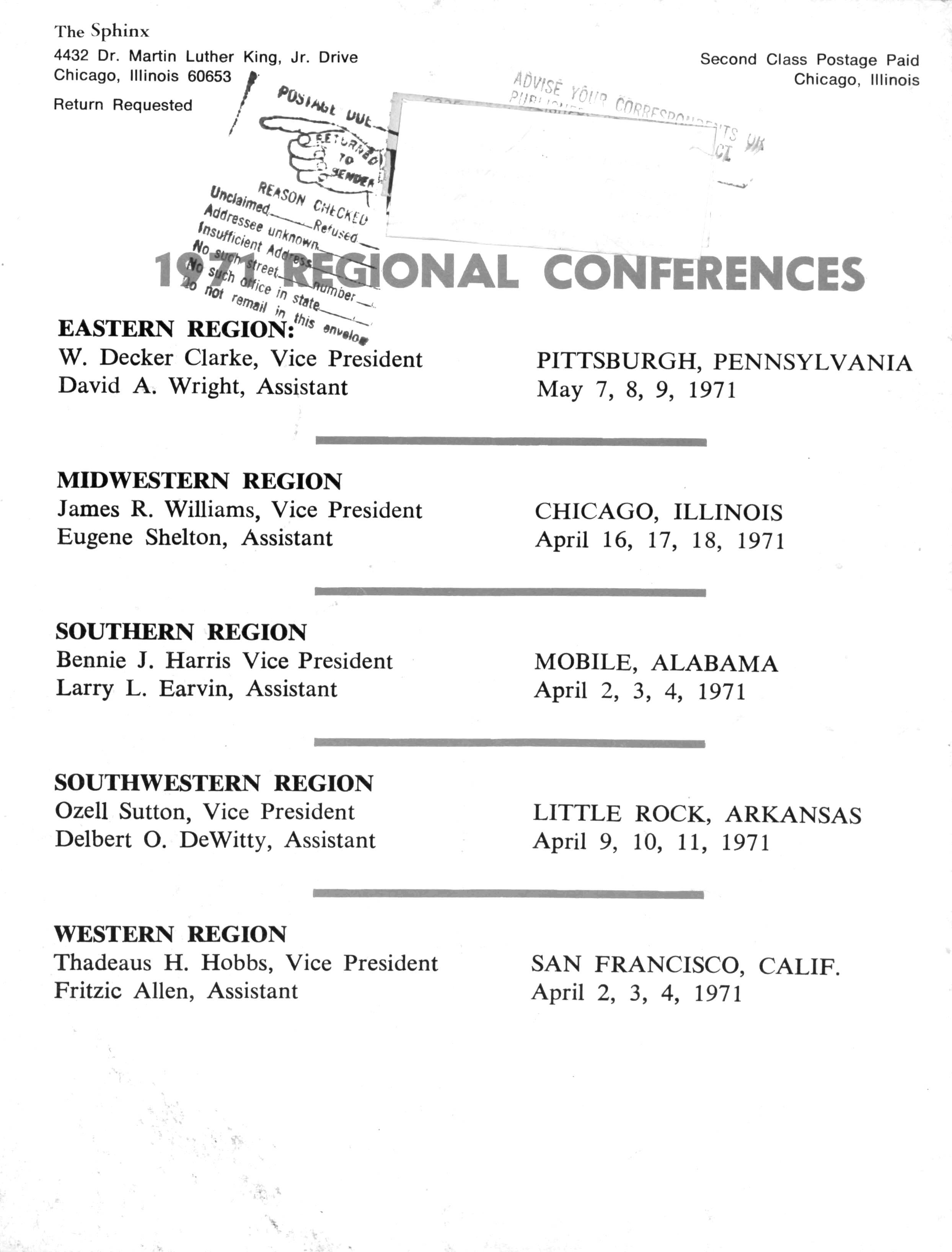 Editor, "The Sphinx" — J Herbert King 4728 Drexel Boulevard, Chicago, Illinois 60615