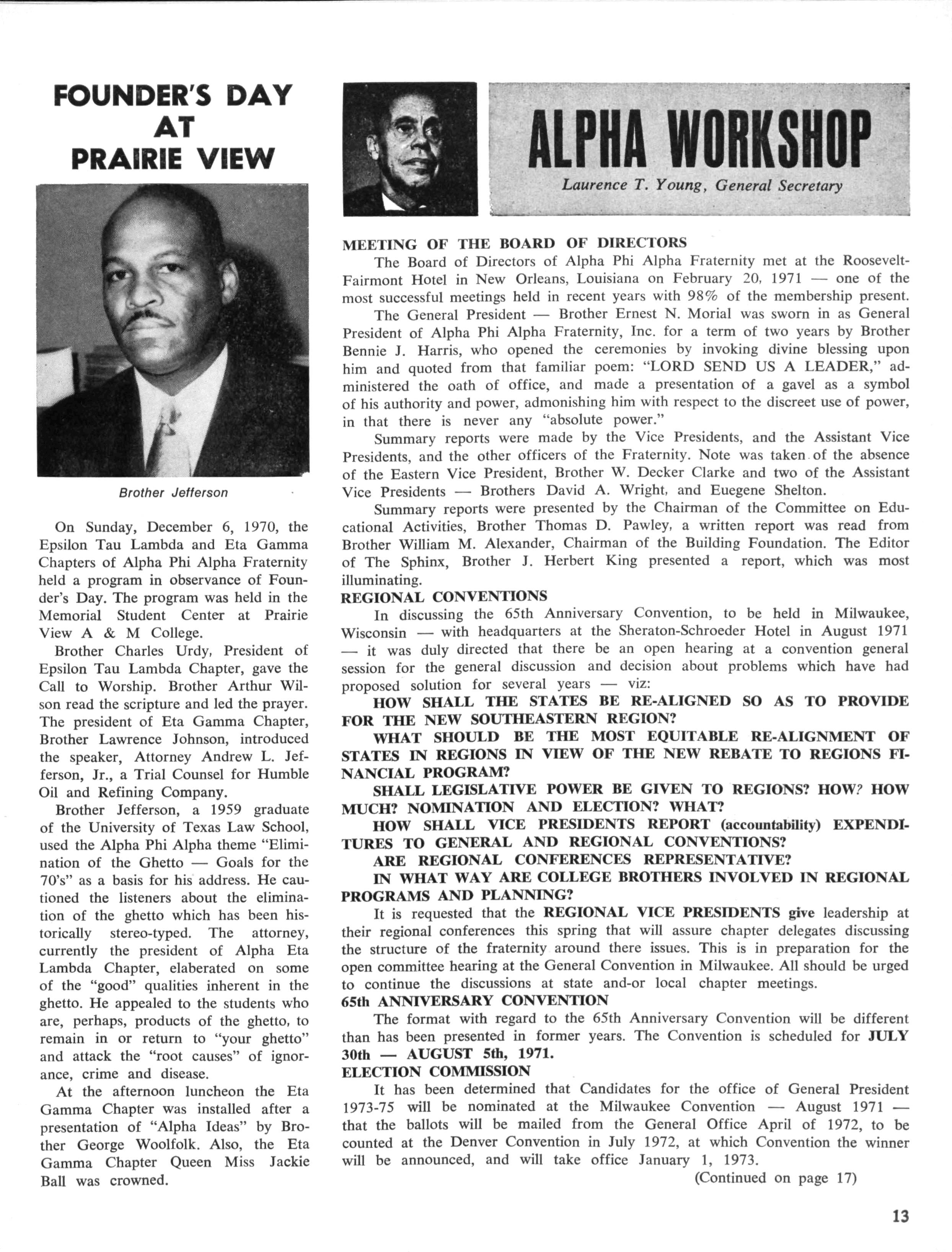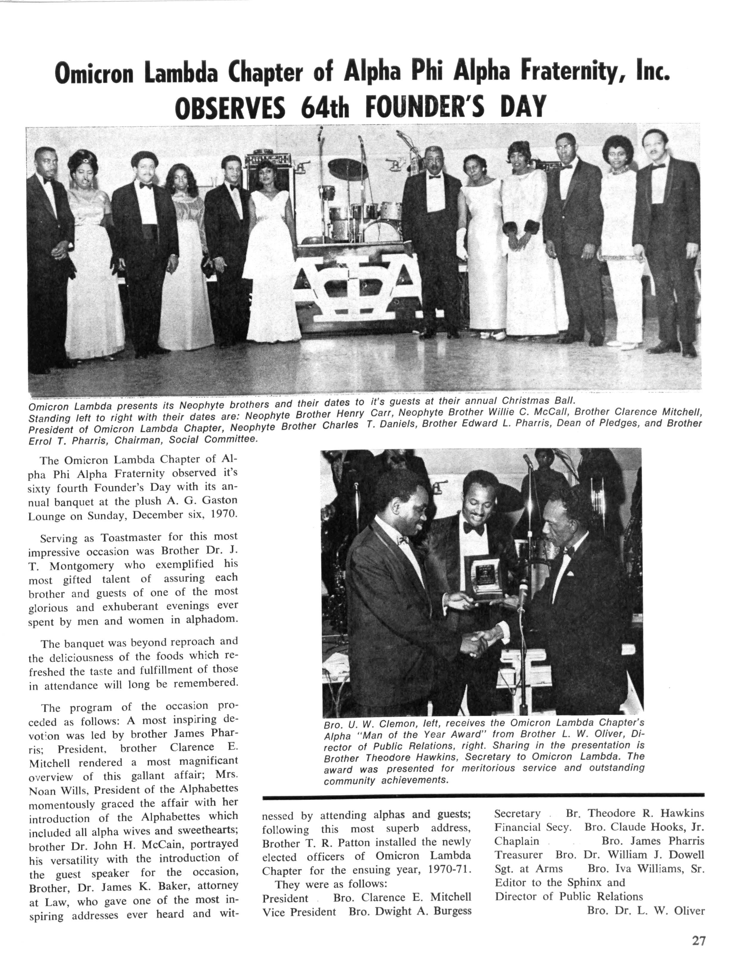 ALPHA PHI ALPHA FRATERNITY, INC. DIRECTORY FOR 1970-1971