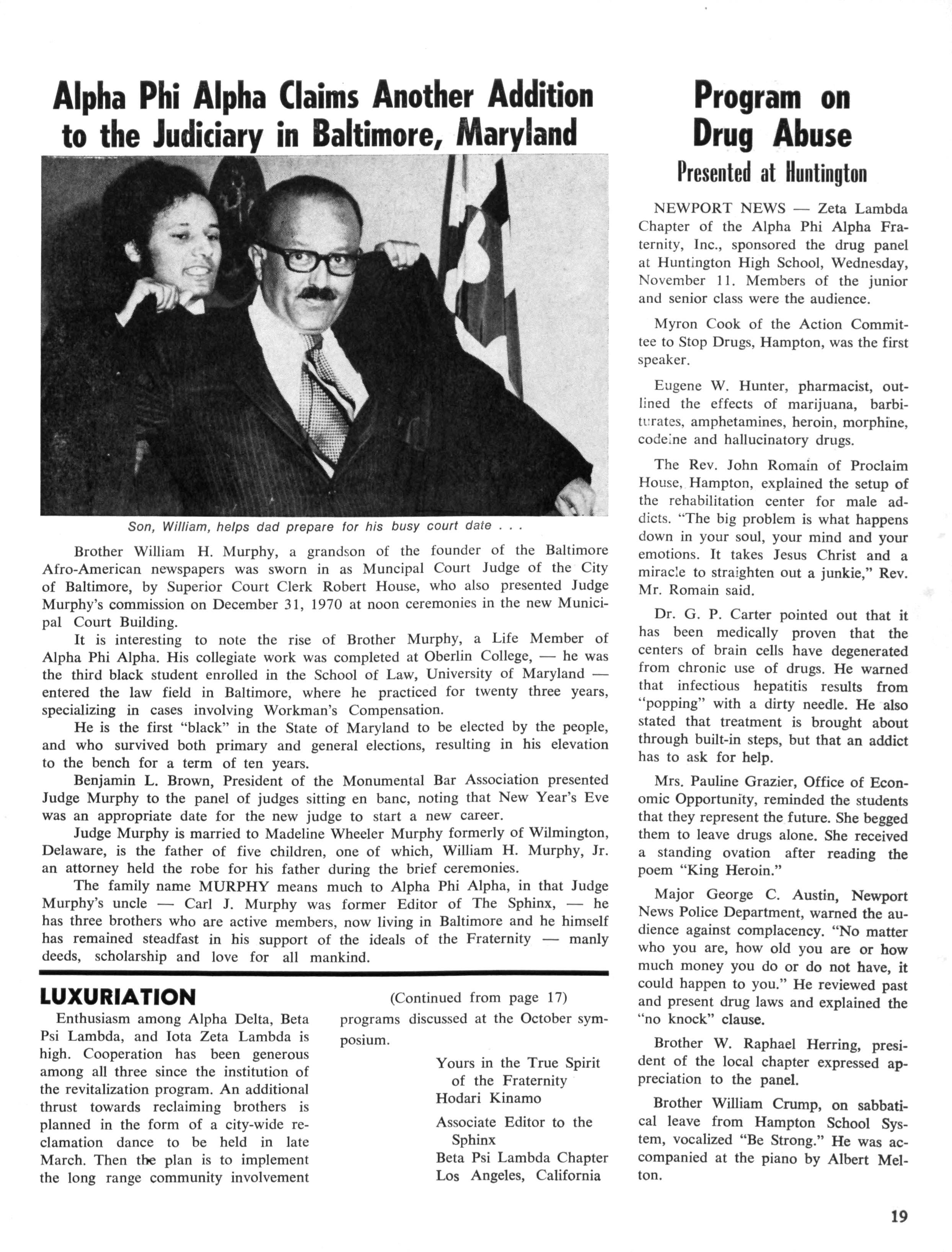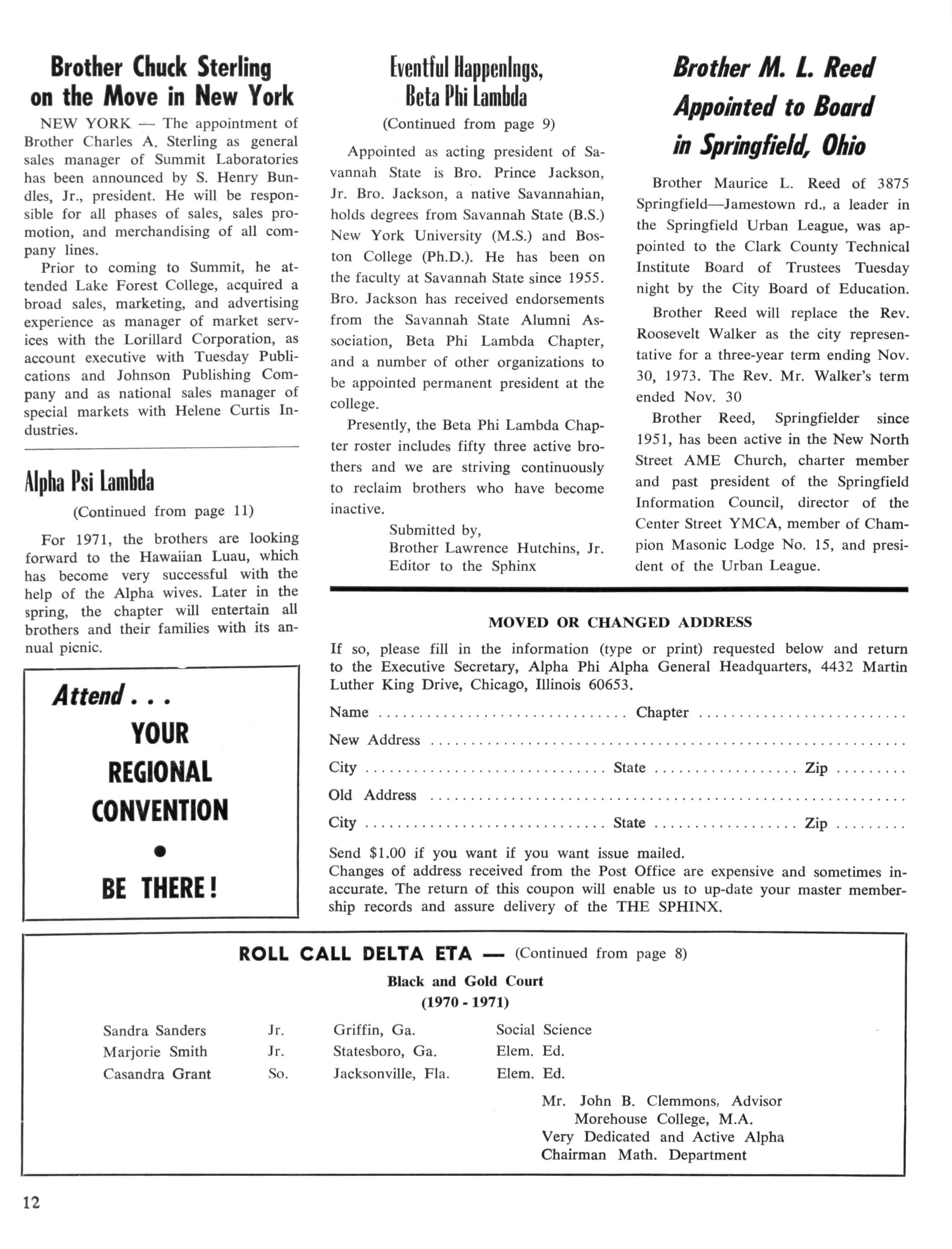 Opinions expressed in columns and articles do not necessarily reflect the views and policies of Alpha Phi Alpha Fraternity, Inc., and use of any person's name in fiction, semi-fiction articles or humorous features is to be regarded as a coincidence and not as the responsibility of The Sphinx It is never done knowingly. Copyright 1970 by The Sphinx, Alpha Phi Alpha Fraternity, Inc Reproduction or use, without written permission, of the editorial or pictorial content in any manner is prohibited.