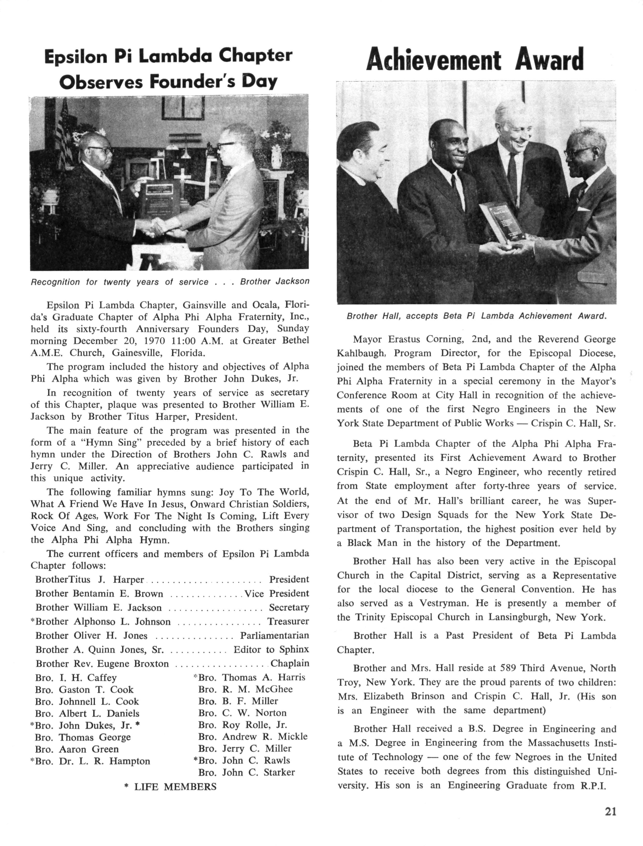 Alpha Phi Alpha Fraternity Jimmie L Stewart, Reporter to The Sphinx Gamma Epsilon Lambda
