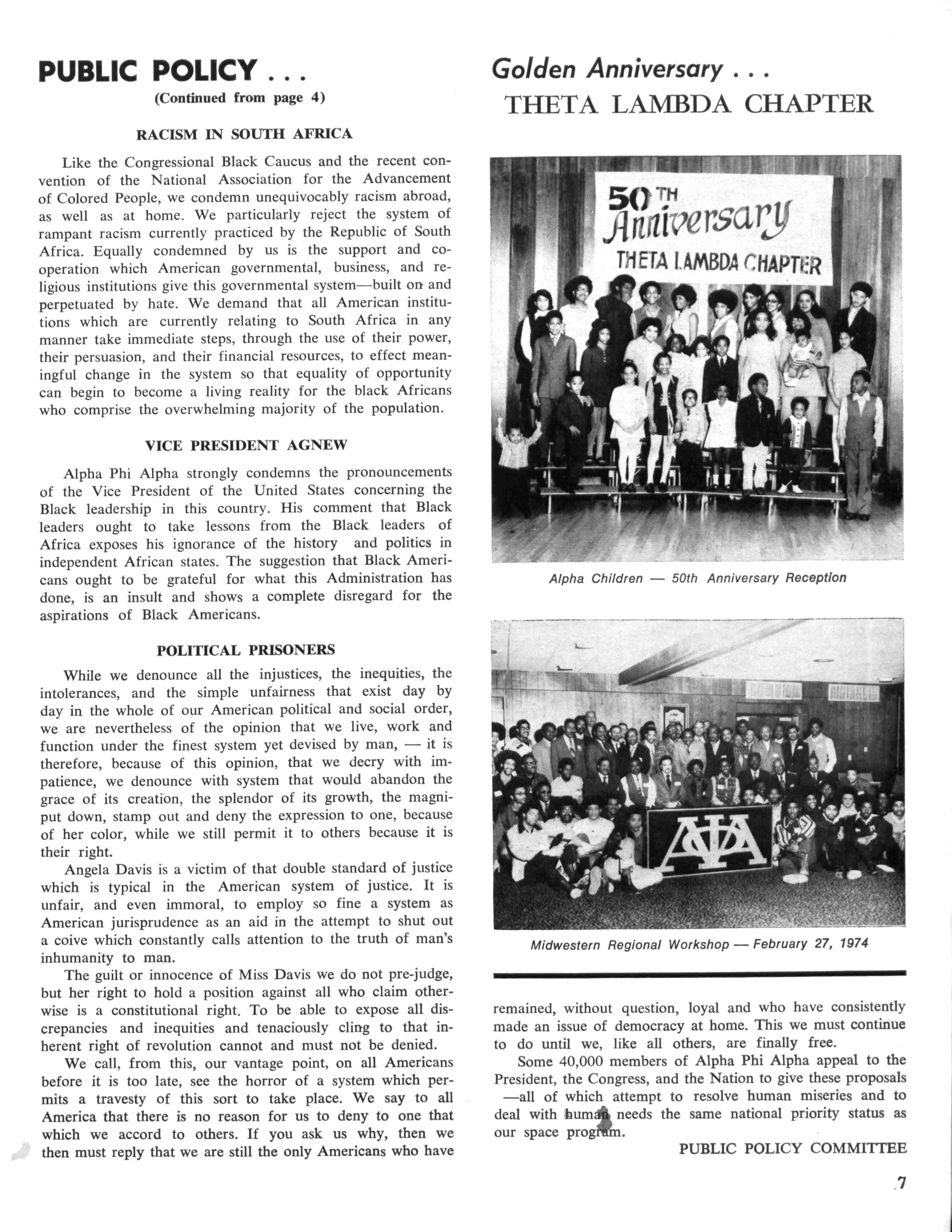Higher education provisions, health care, foreign aid to black Africa are among other points of national policy Chapter presidents are: Carlisle Parker, Newark; Joseph Bridges, Atlantic City; Melvin Thompson, Paterson; William E. Wright, Red Bank; Hubert H. Bryson, Wrightstown; Norman H Dowe, Plainfield; Richard Edwards, New Brunswick