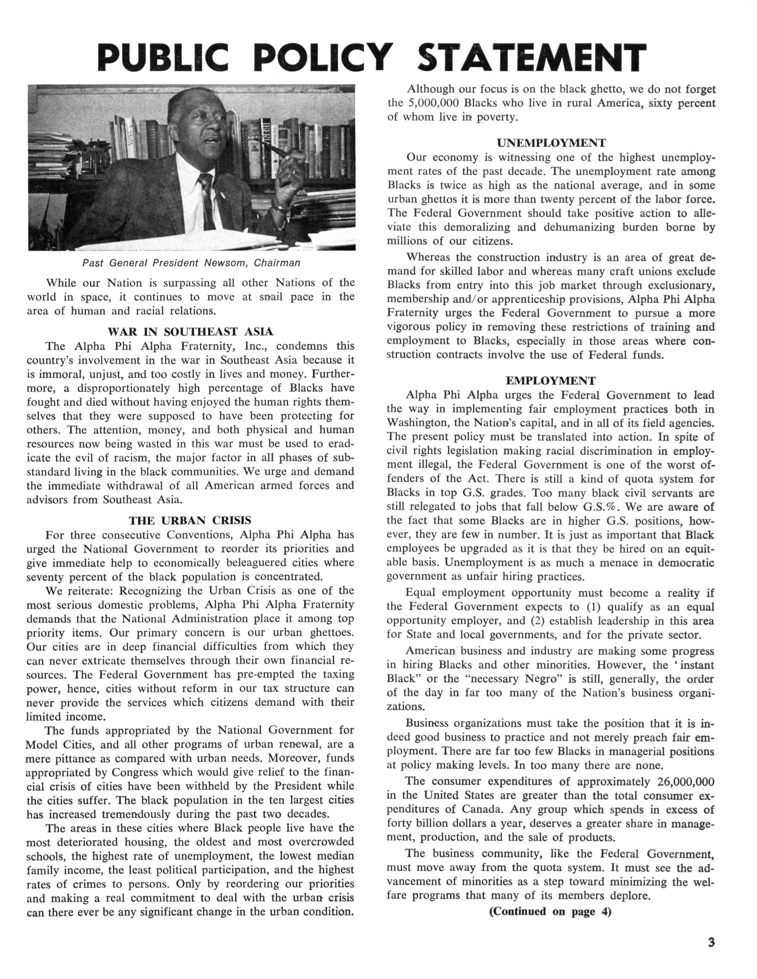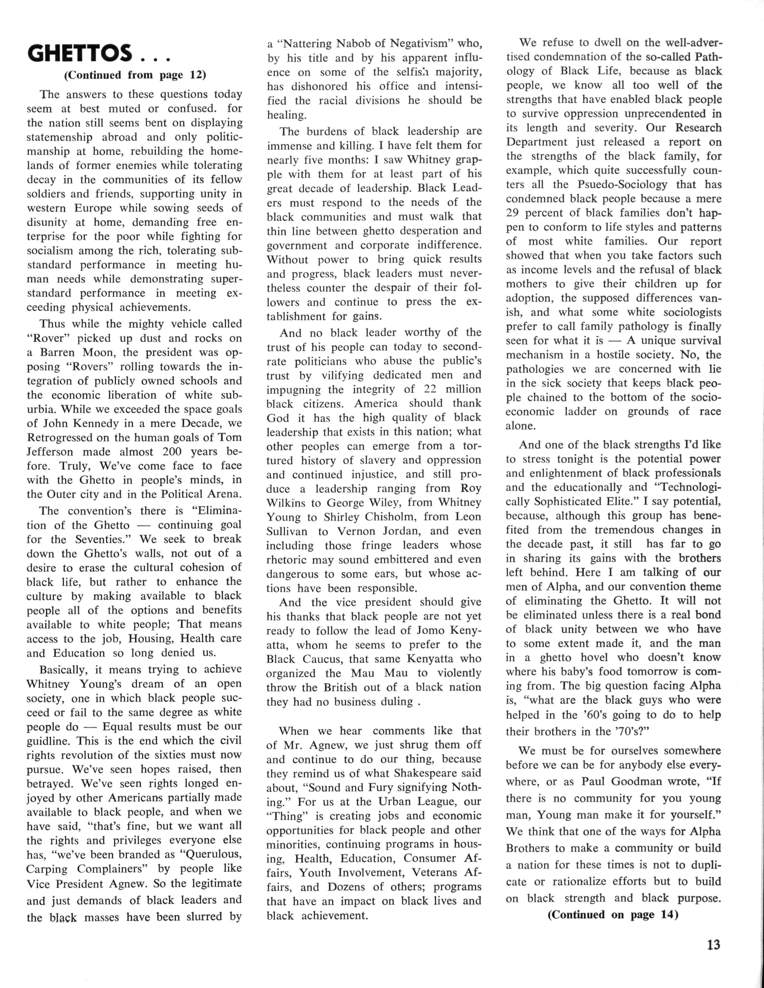 Opinions expressed in columns and articles do not necessarily reflect the views and policies of Alpha Phi Alpha Fraternity, Inc., and use of any person's name in fiction, semi-fiction articles or humorous features is to be regarded as a coincidence and not as the responsibility of The Sphinx It is never done knowingly Copyright 1970 by The Sphinx, Alpha Phi Alpha Fraternity, Inc Reproduction or use, without written permission, of the editorial or pictorial content in any manner is prohibited.
