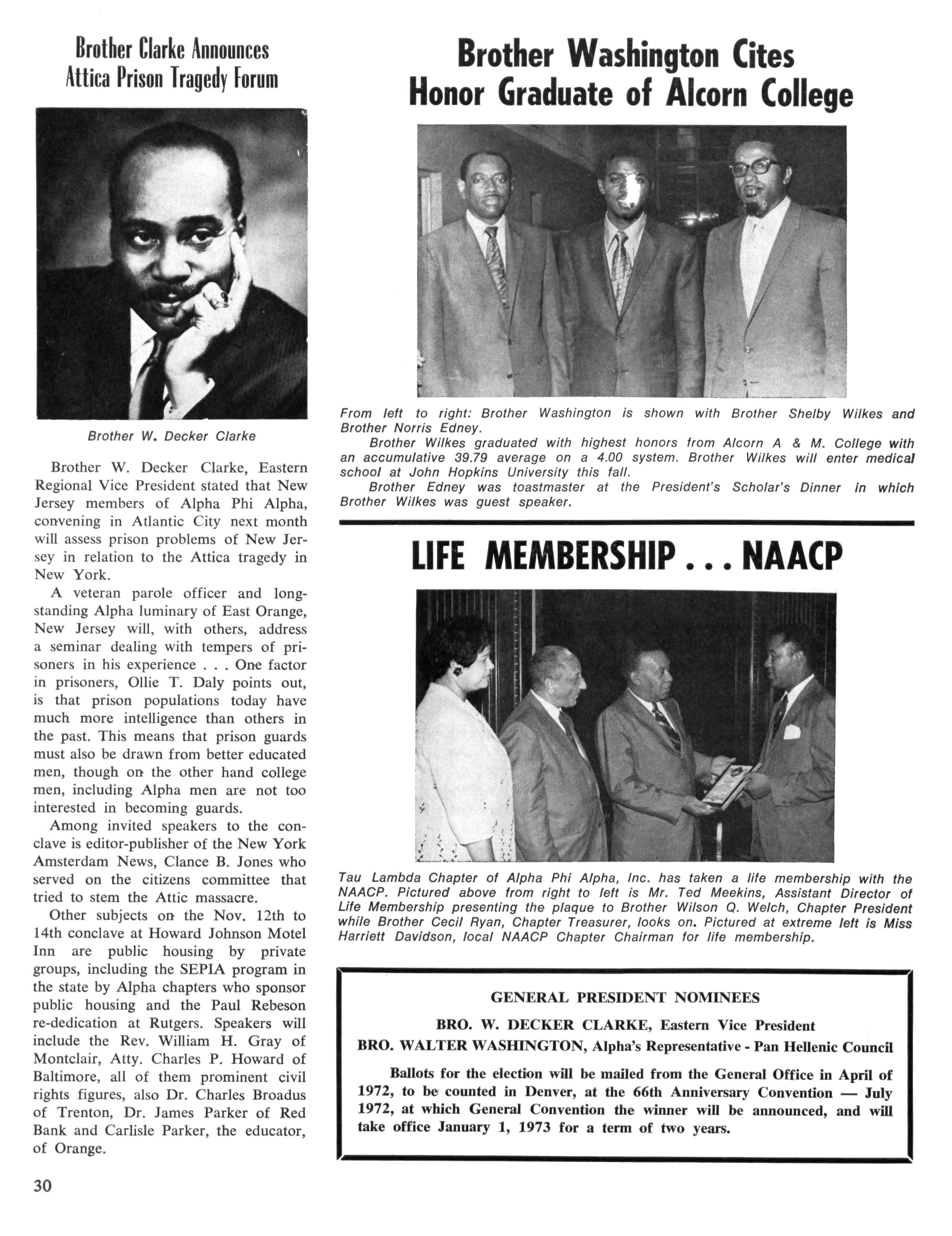 Brother W Decker Clarke, Eastern Regional Vice President stated that New Jersey members of Alpha Phi Alpha, convening in Atlantic City next month will assess prison problems of New Jersey in relation to the Attica tragedy in New York
