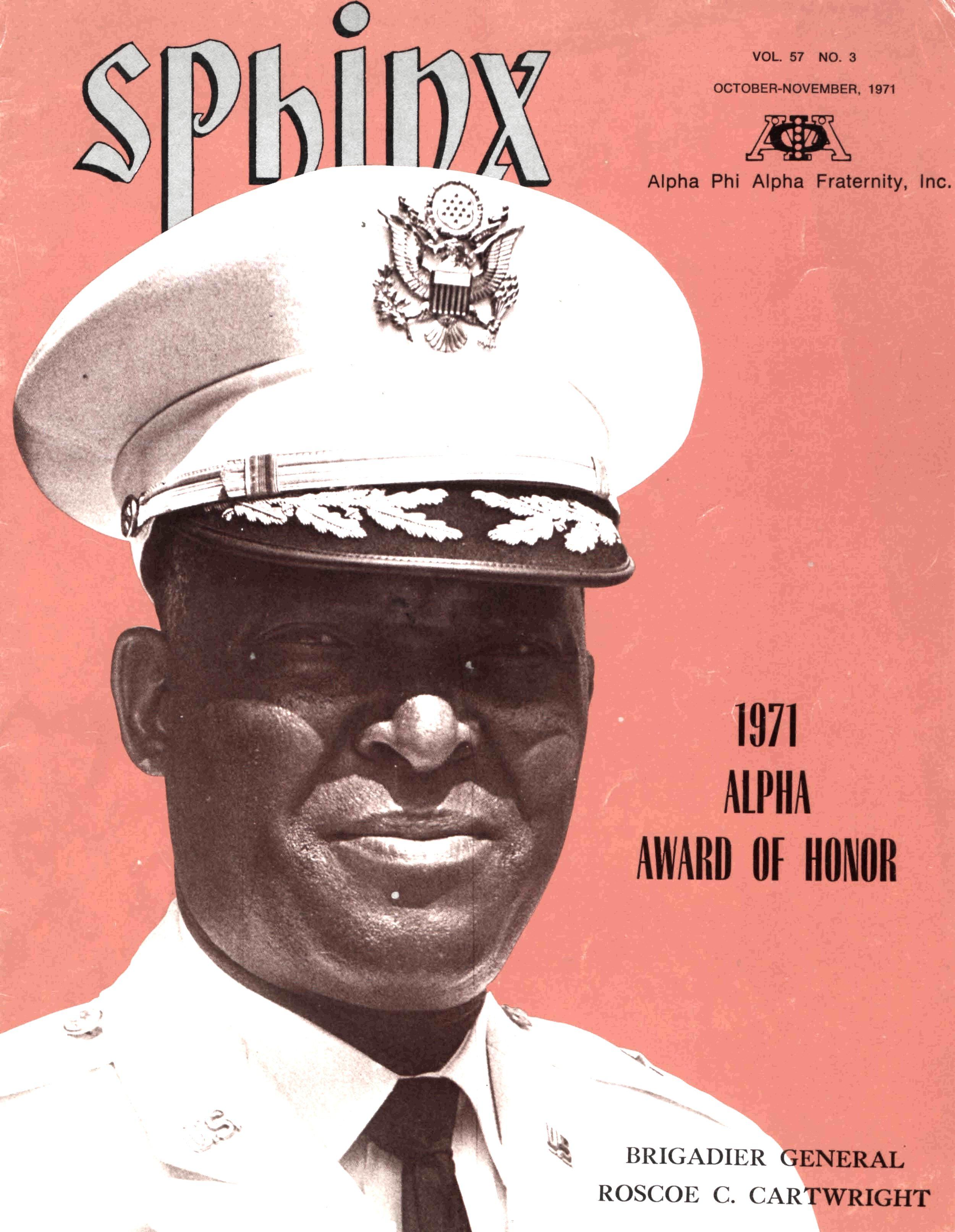 Prior to his promotion to Brigadier General, he was Chief of Budget Manpower for Forces Directorate at the Pentagon. Today, there goes an ALPHA MAN — Brigadier General Roscoe C. Cartwright, Special Assistant to Chief of Staff for Force Development.