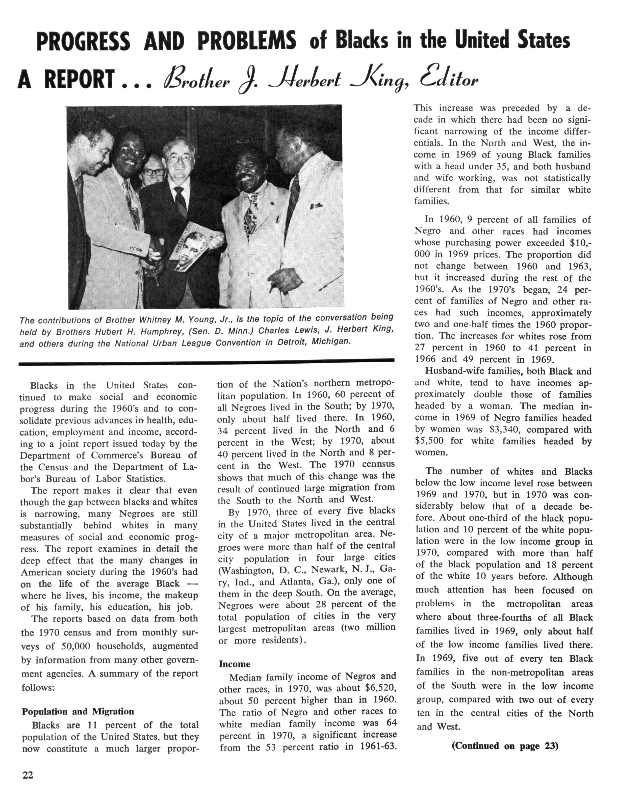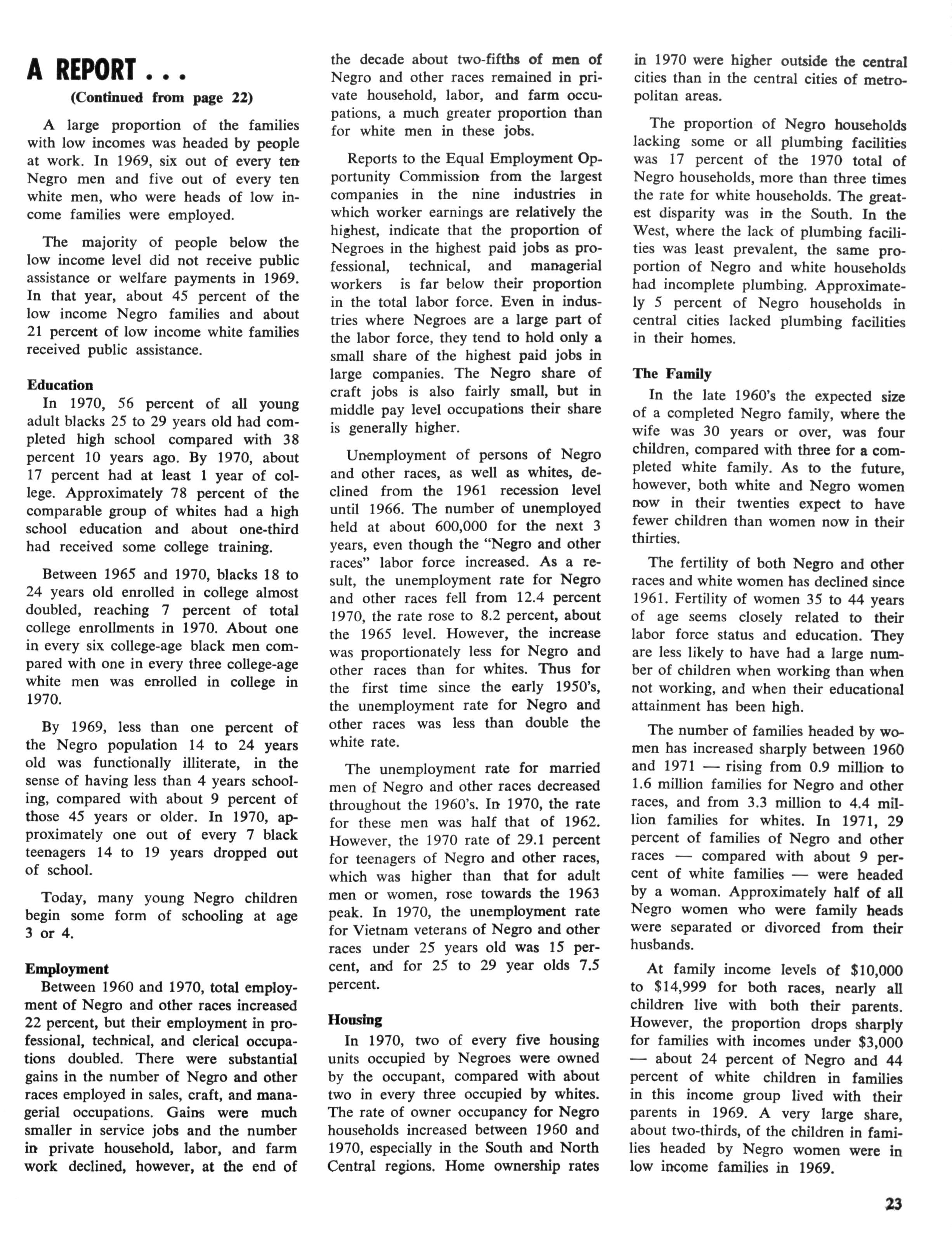 Changes in these and other measurable aspects of the living conditions of Negroes in the United States in1970 are indicated in the tables of the report.