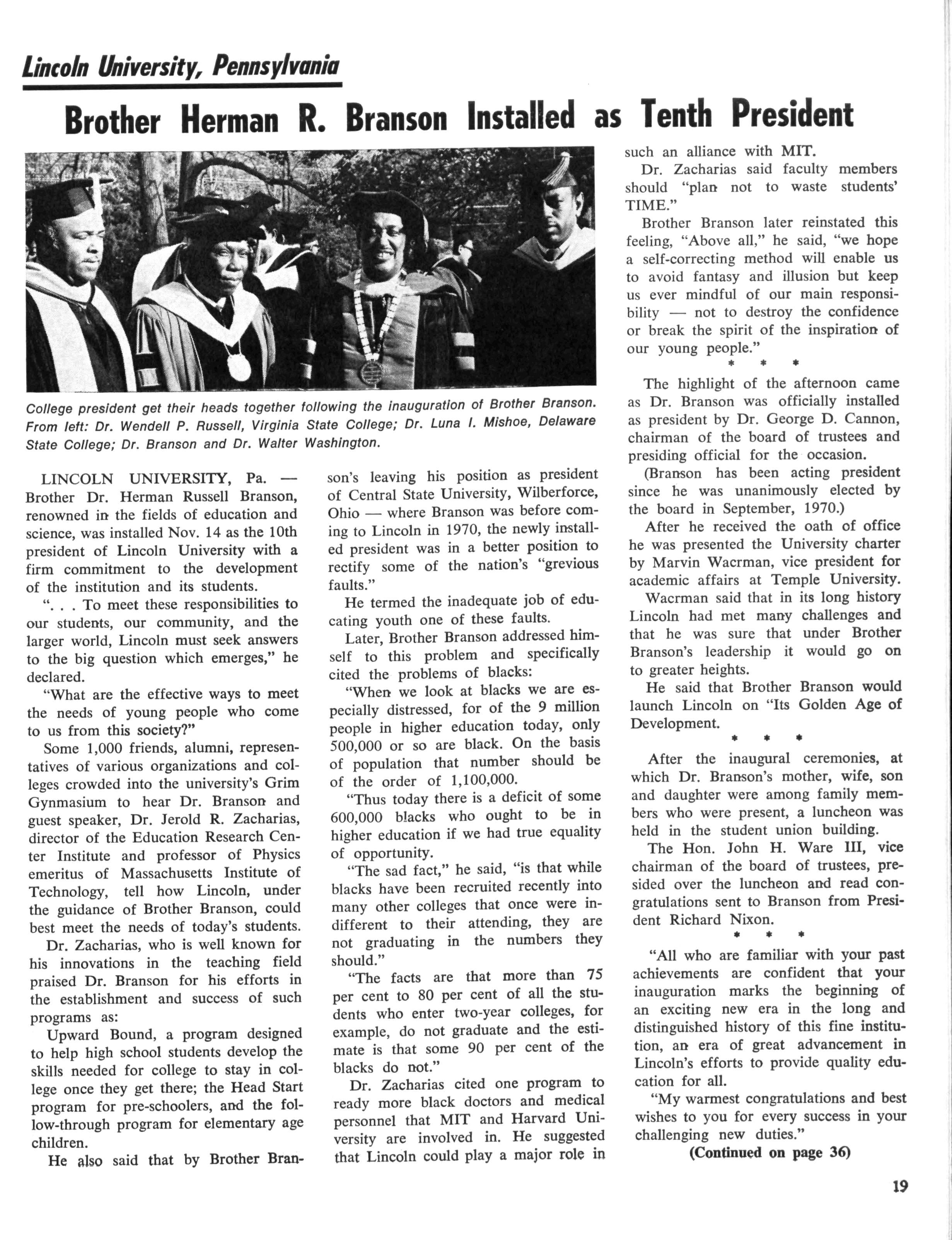 Malvin R Goode, Martin L Harvey, Eddie L Madison, Frank L Stanley, Sr., L H Stanton, Charles Wesley, Randolph White O Wilson Winters, Laurence T Young