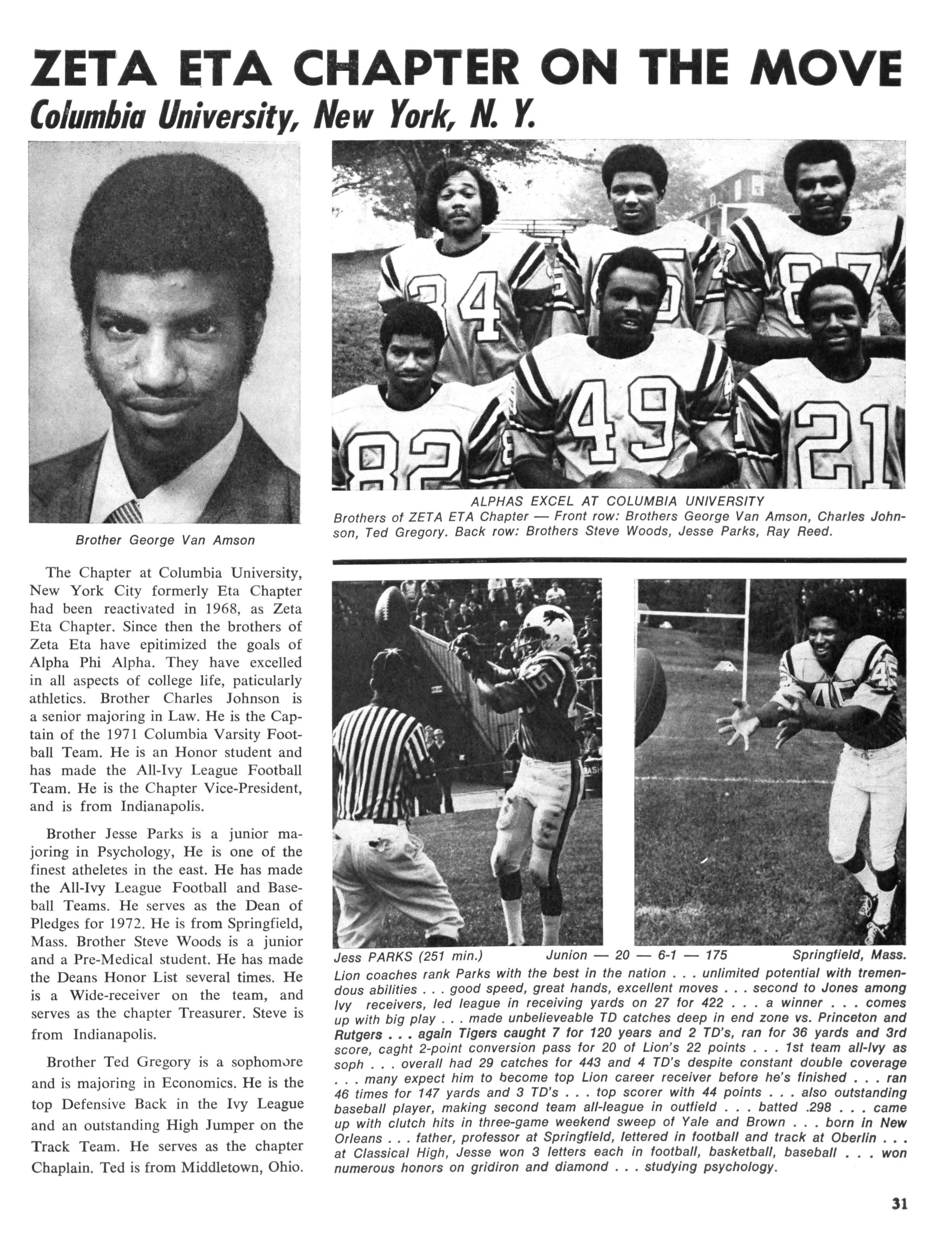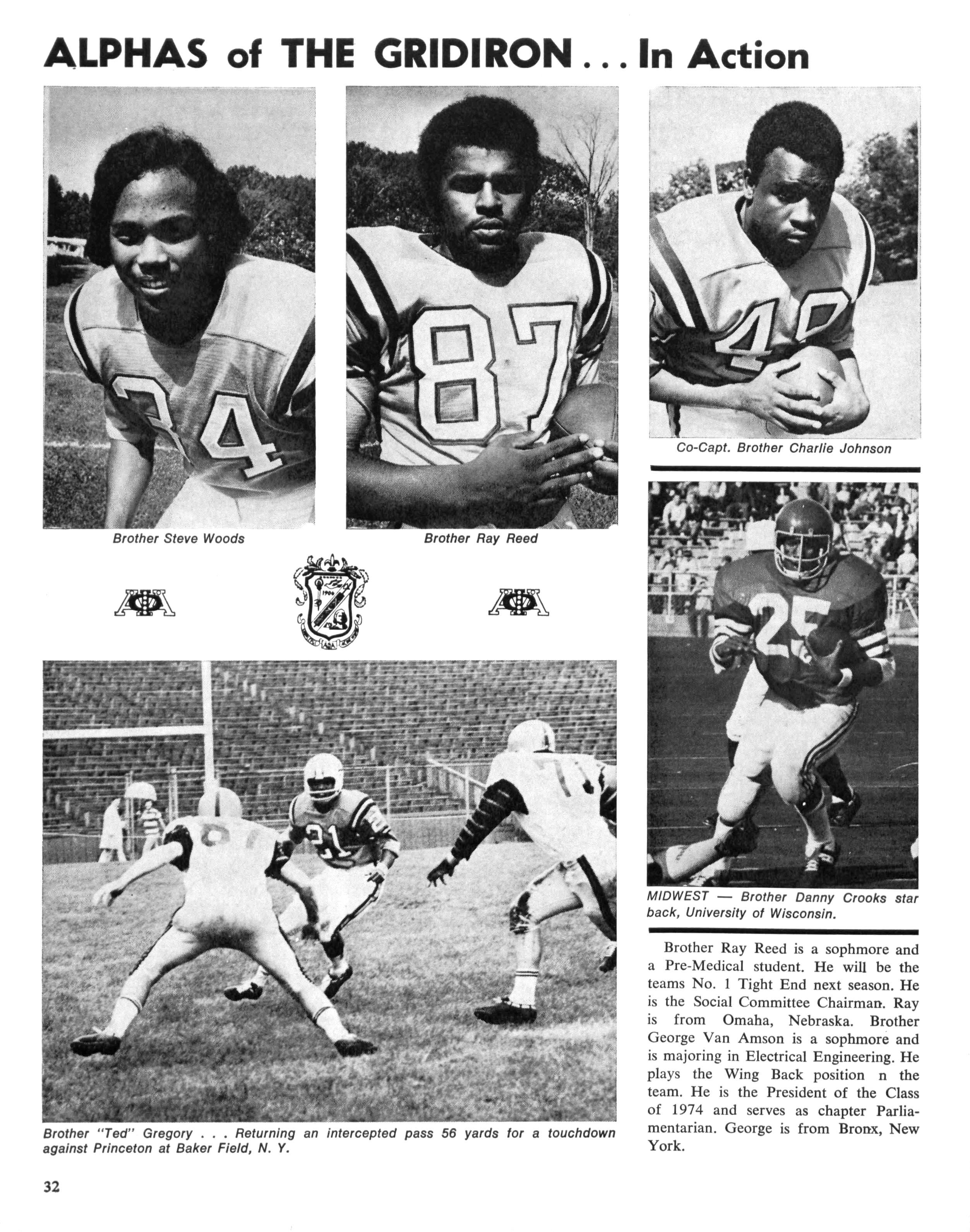 Co-captain is an outstanding defensive back plays safety very fast, savage tackier good reflexes first team all-Ivy last season a pro prospect punt return specialist led frosh team with three interceptions, including 14-yarder for score against Rutgers also plays rugby lettered in football and track at Arsenal Tech football MVP and captain of defense there all-city he and his wife Bonnie (the secretary to the football staff) have been married 2Vi years they have a daughter, Tracy a history major corporate lawyer
