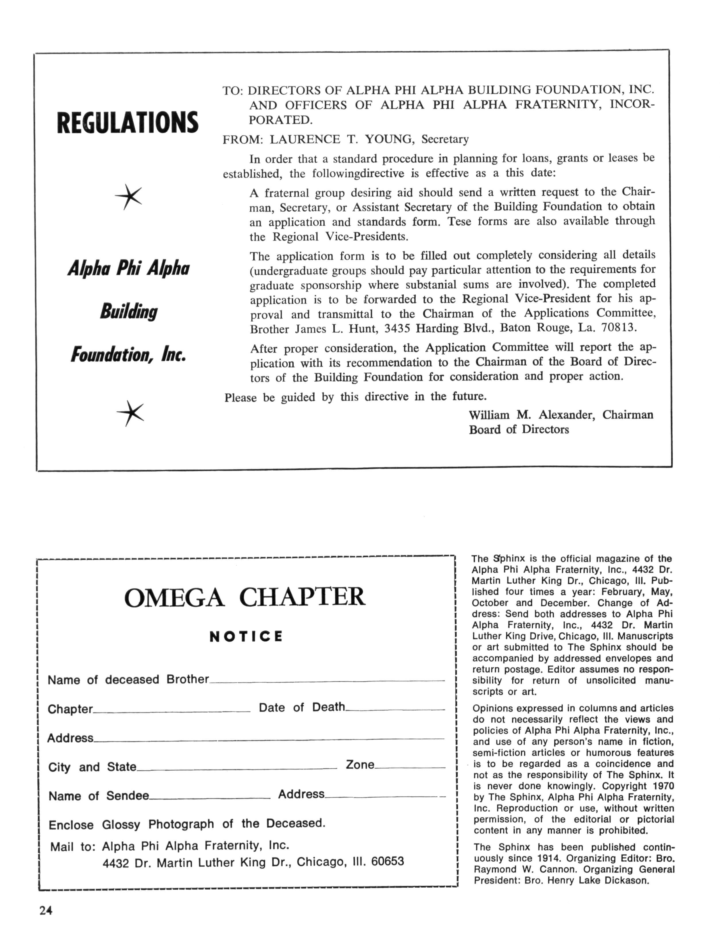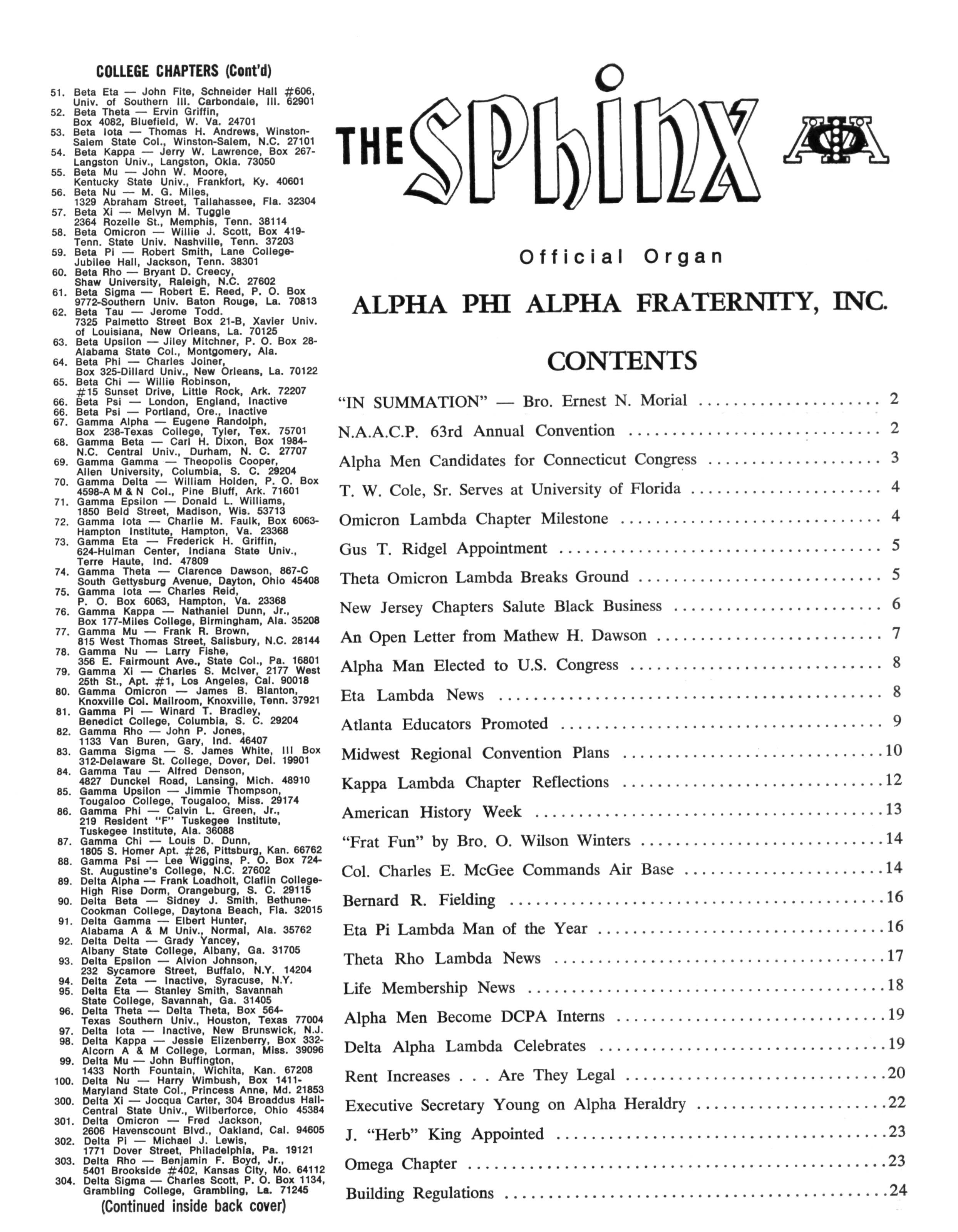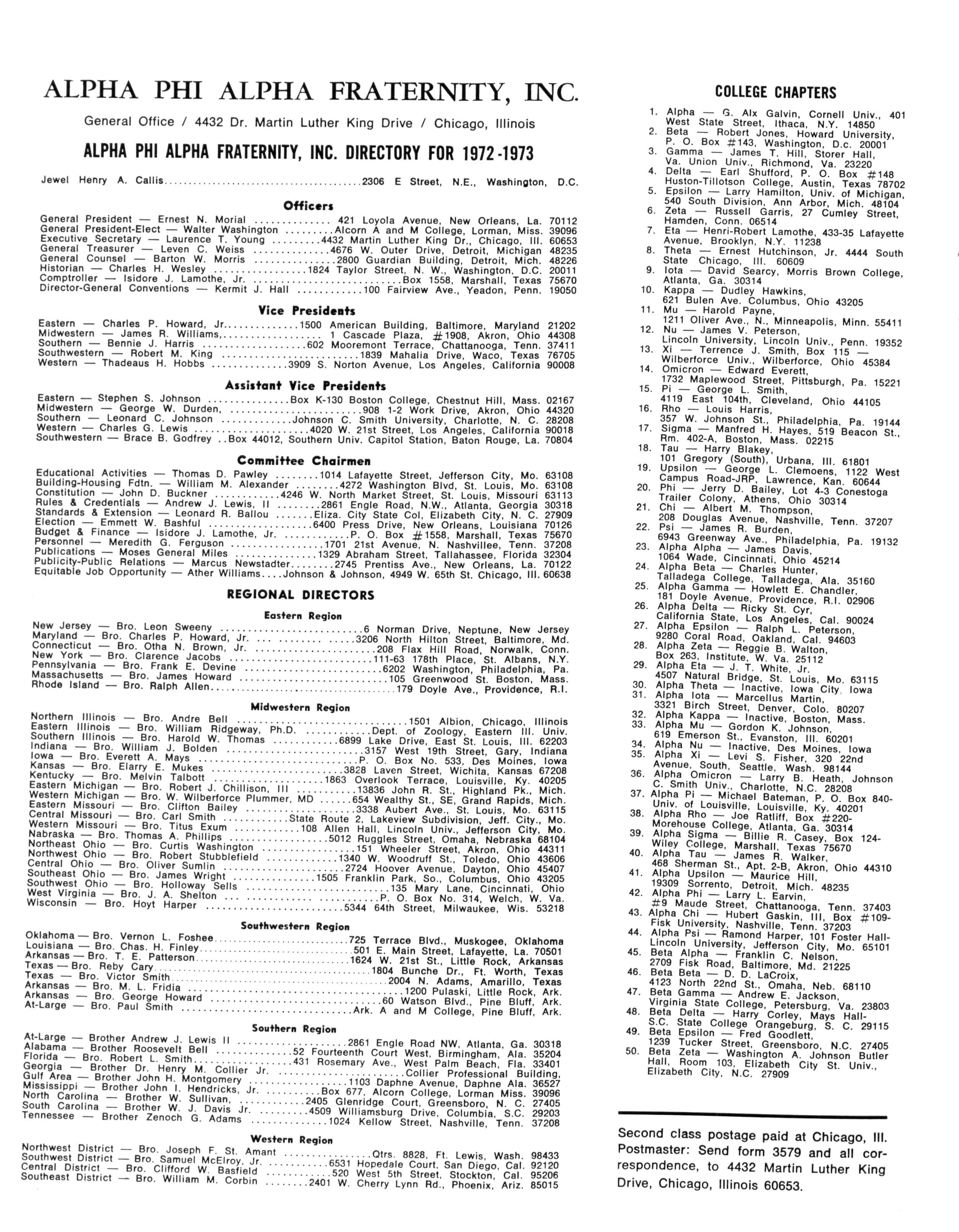 ALPHA PHI ALPHA FRATERNITY, INC. DIRECTORY FOR 1972-1973